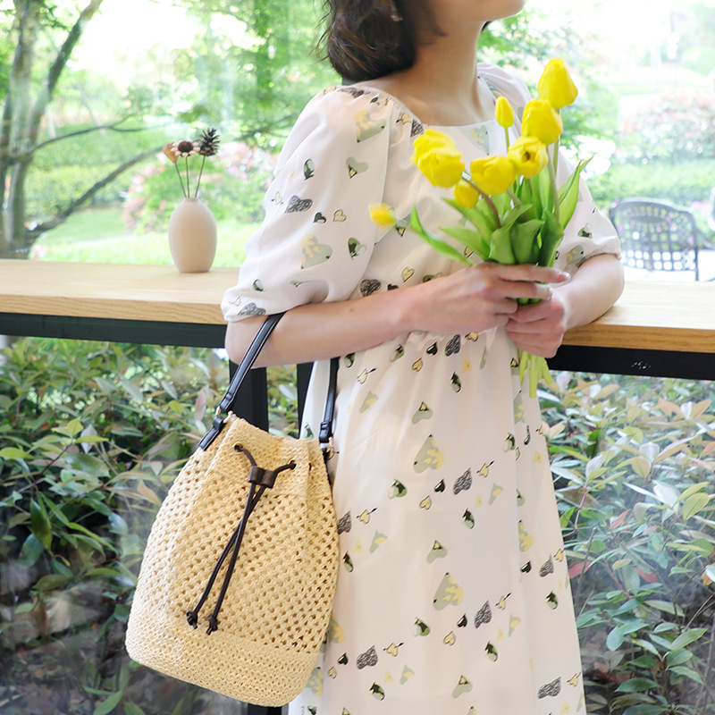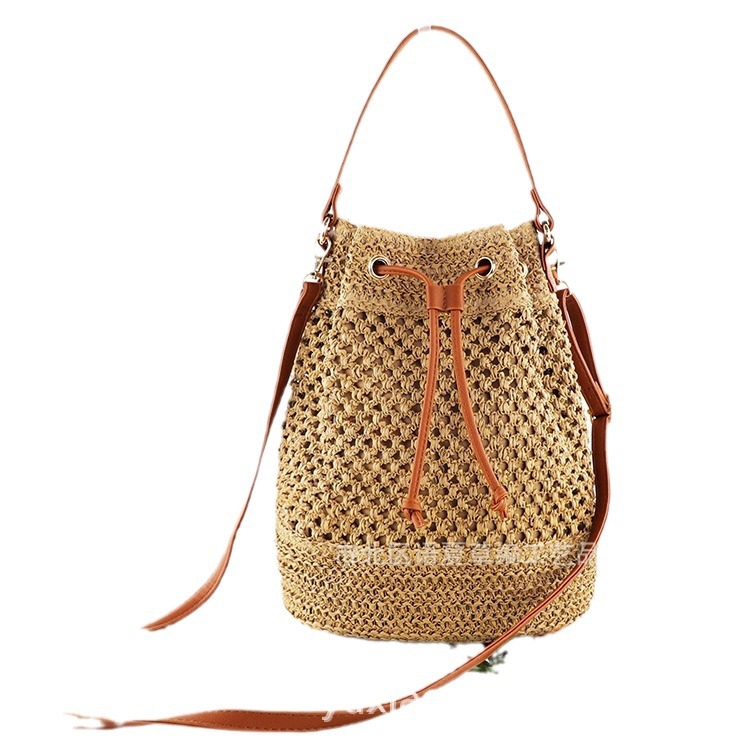 ins新款纸绳草编包大容量水桶包沙滩包单肩休闲时尚编织包女包