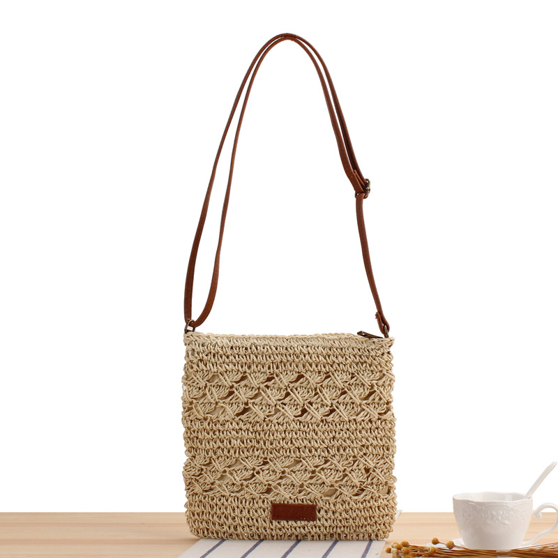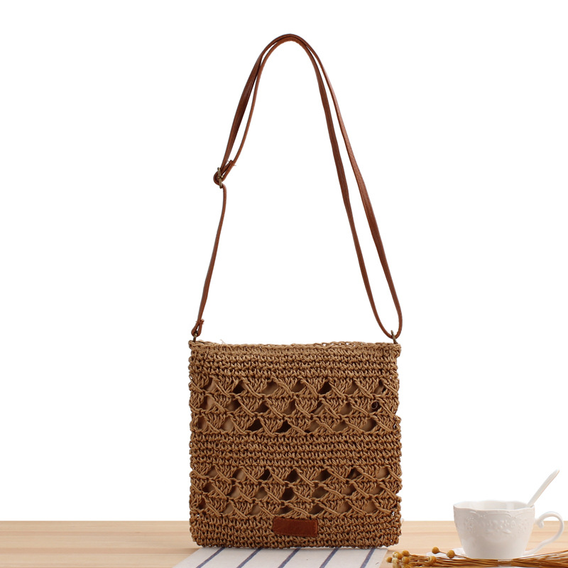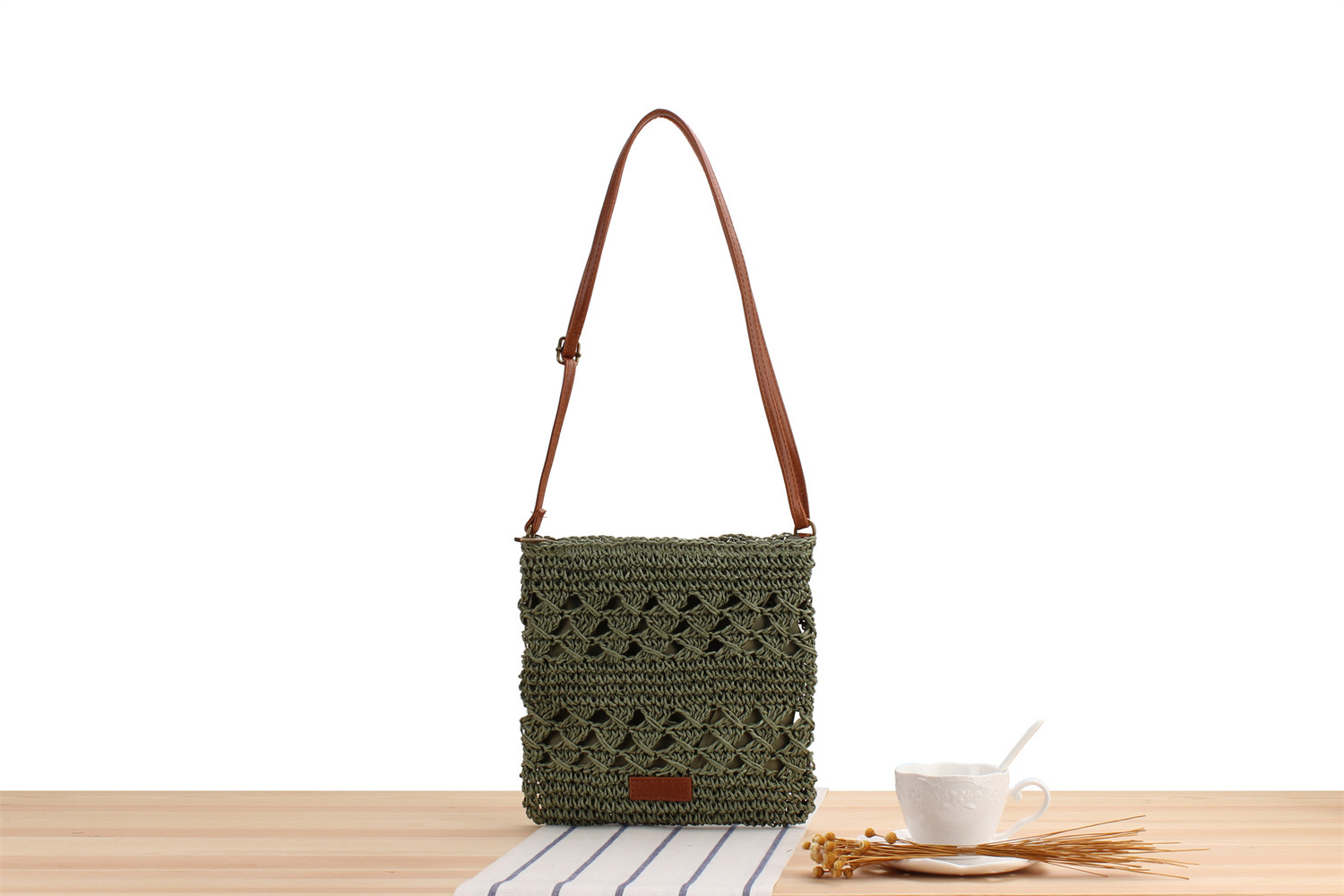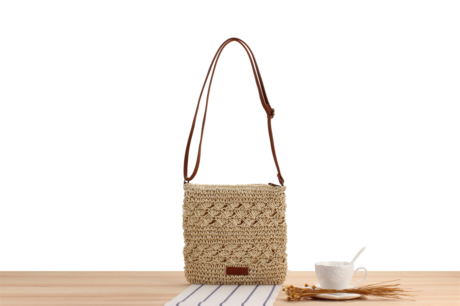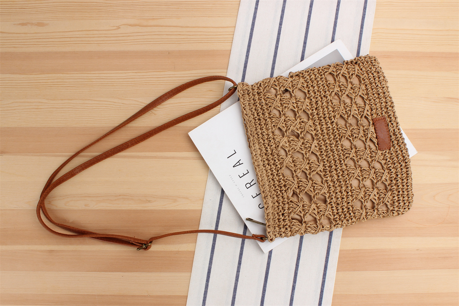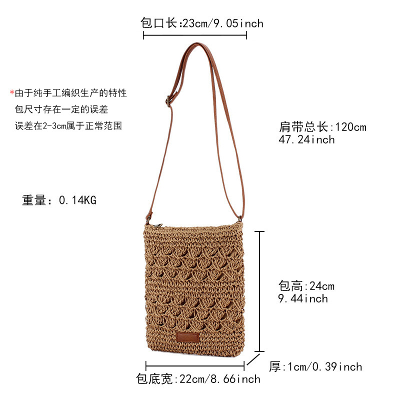一件代发新款镂空编织包单肩斜挎夏日度假沙滩包简约手工草编包