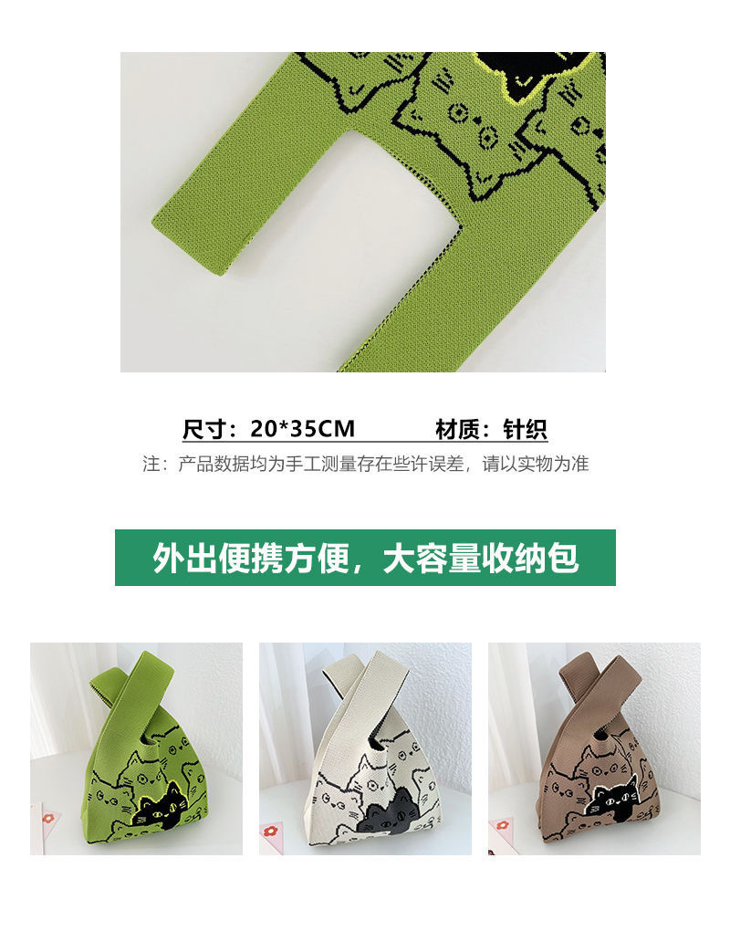 清新小众设计少女爱心拼色针织手提包女单肩编制新款外出小拎包
