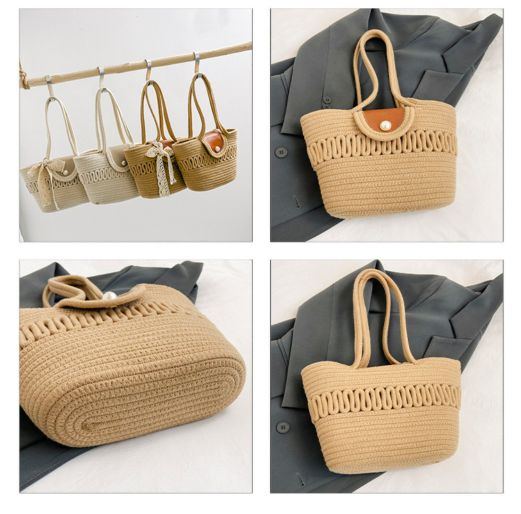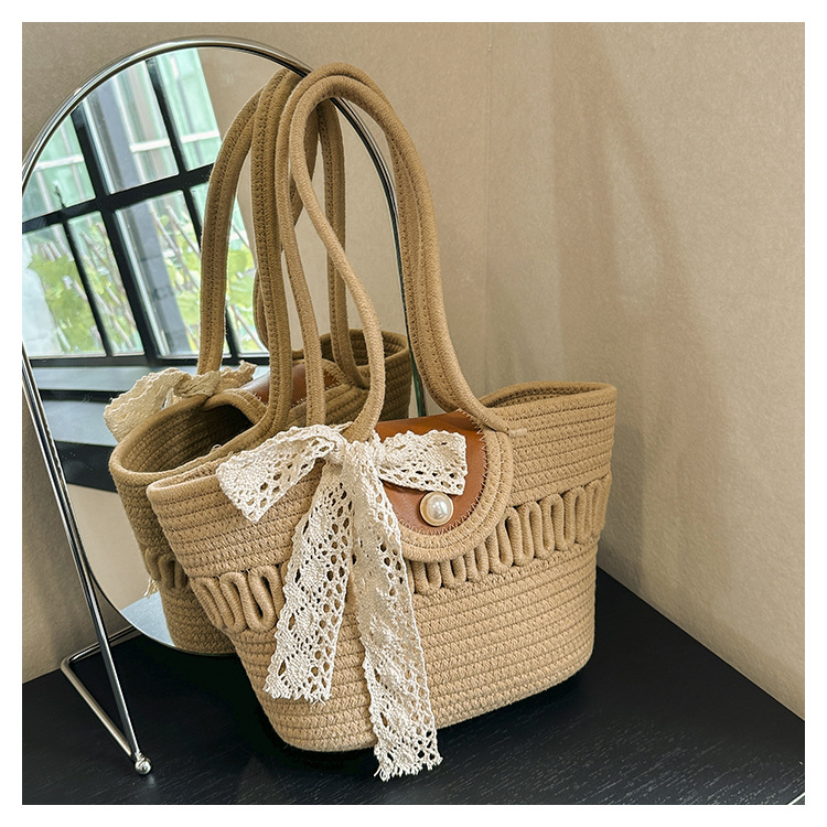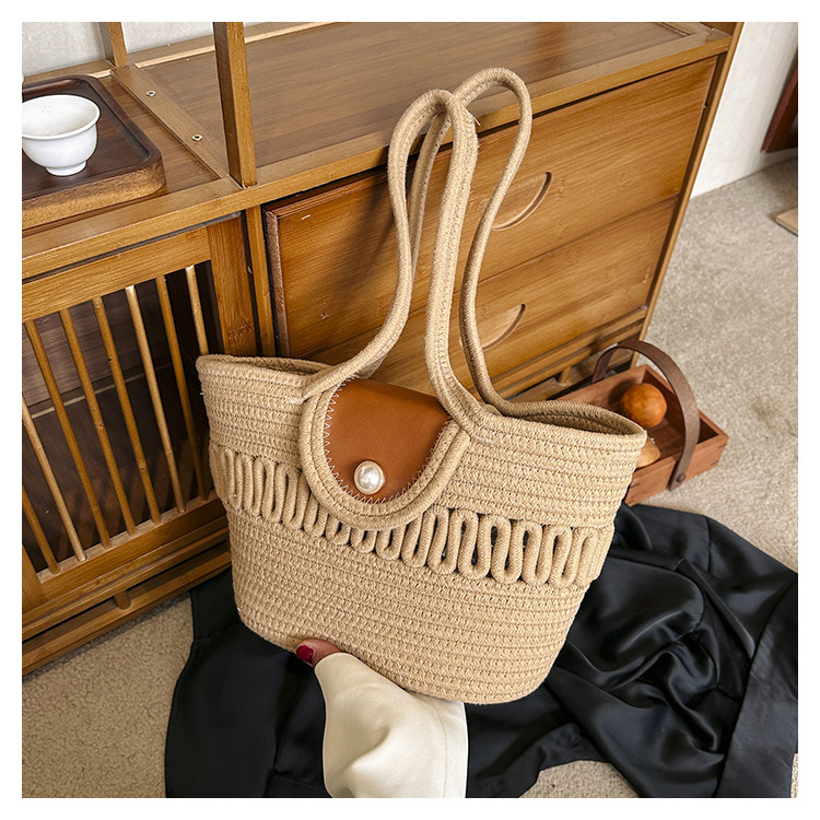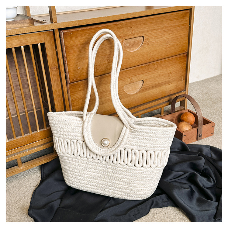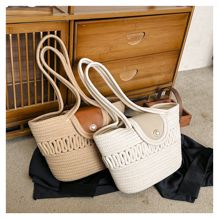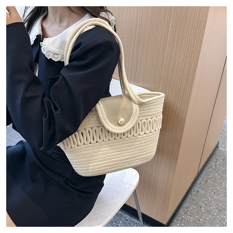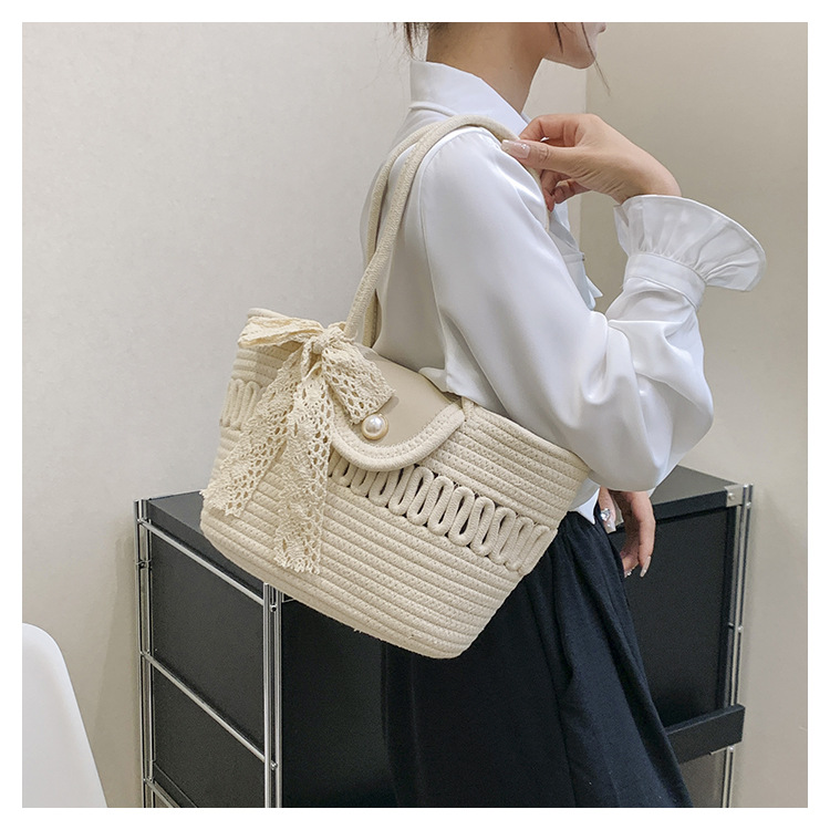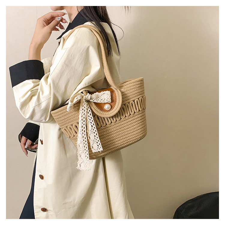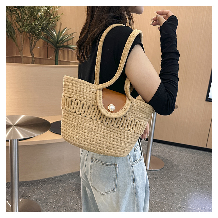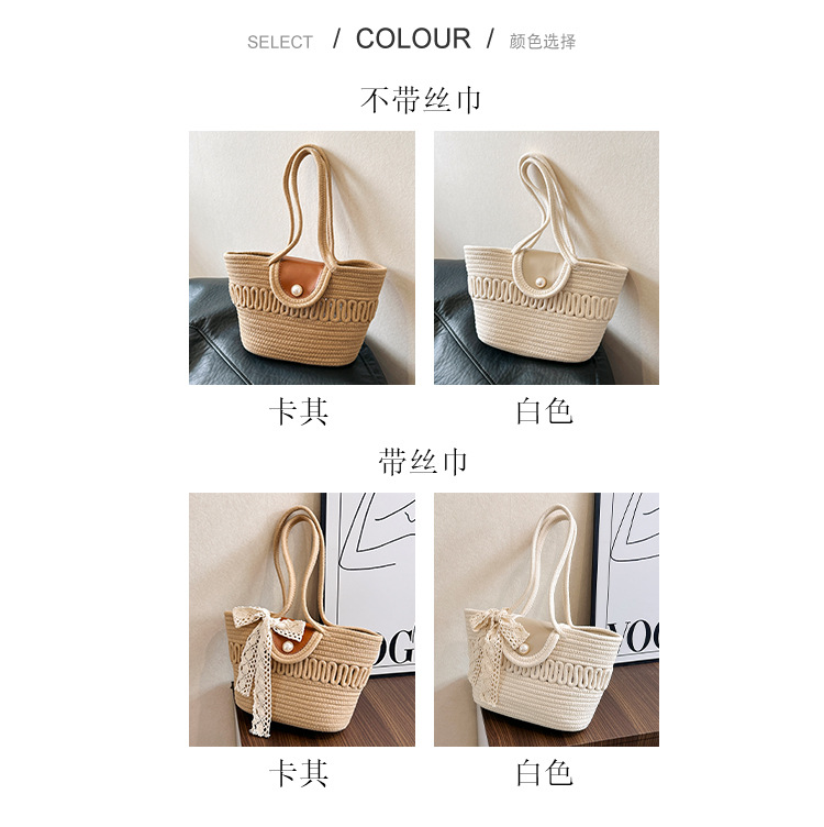 今年流行简约丝巾2024夏新款编织手拎菜篮子潮流手提单肩腋下女包