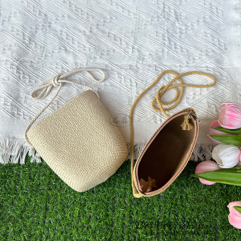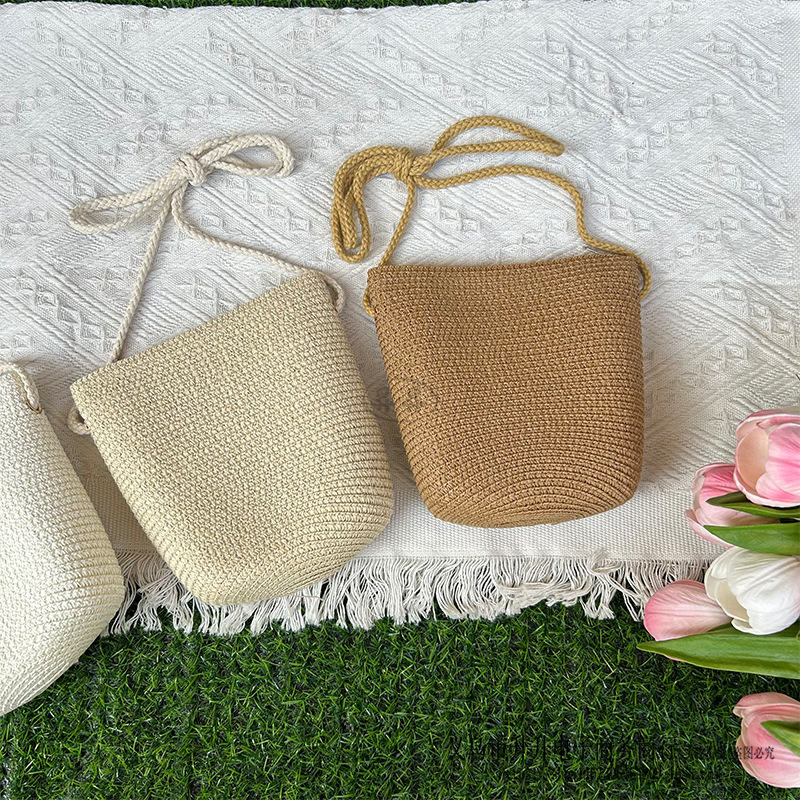 春夏新款光板成人包包潮单肩斜挎包手工DIY可爱编织零钱草编包