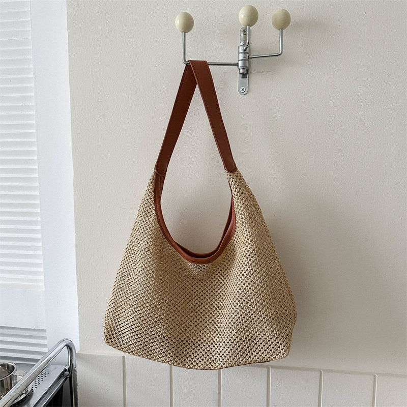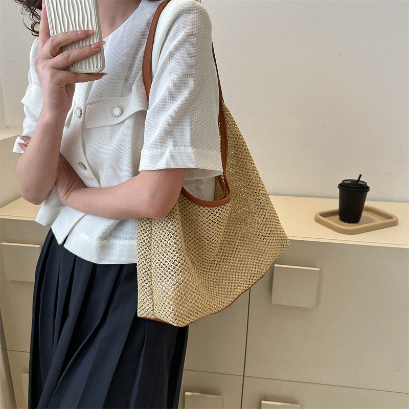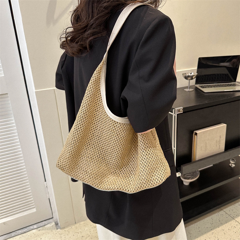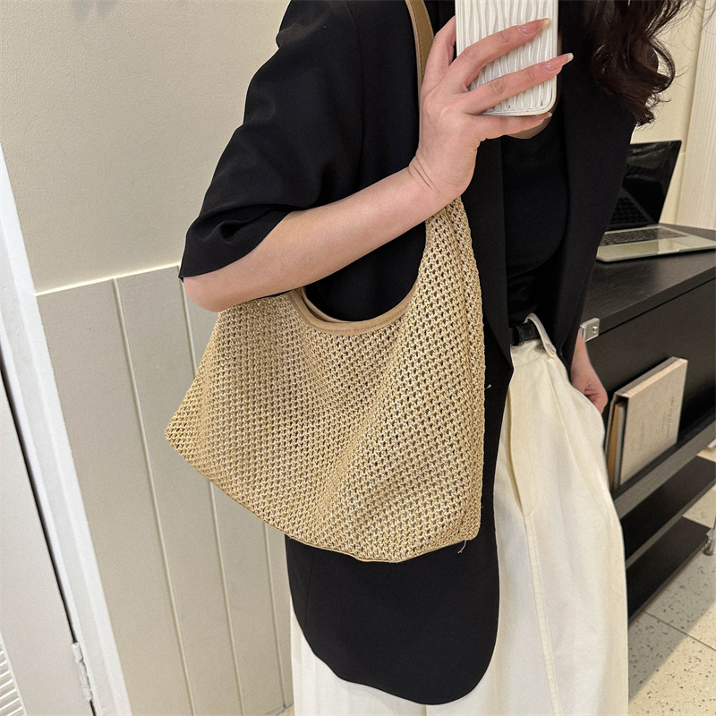 编织包包女春季2023新款潮时尚草编包休闲大容量单肩包小众腋下包
