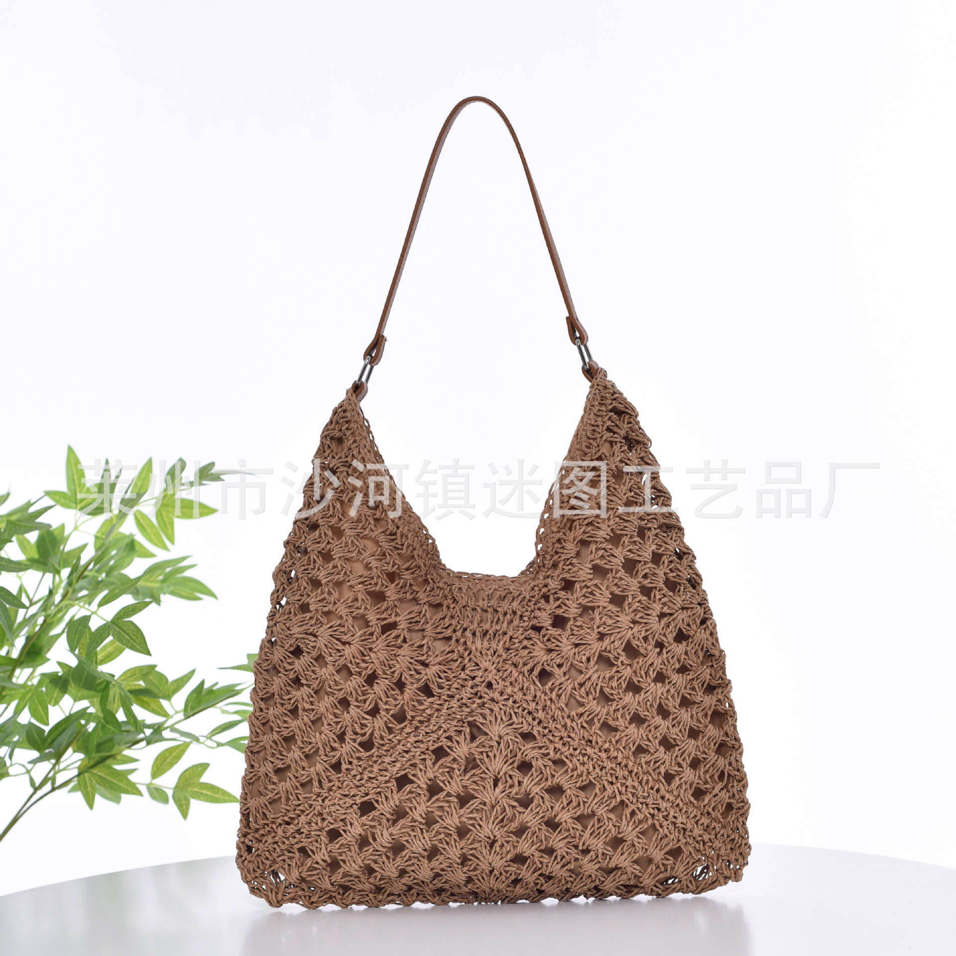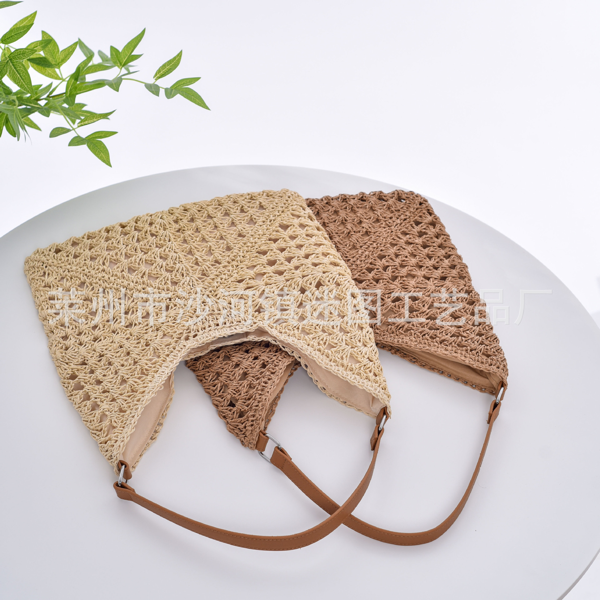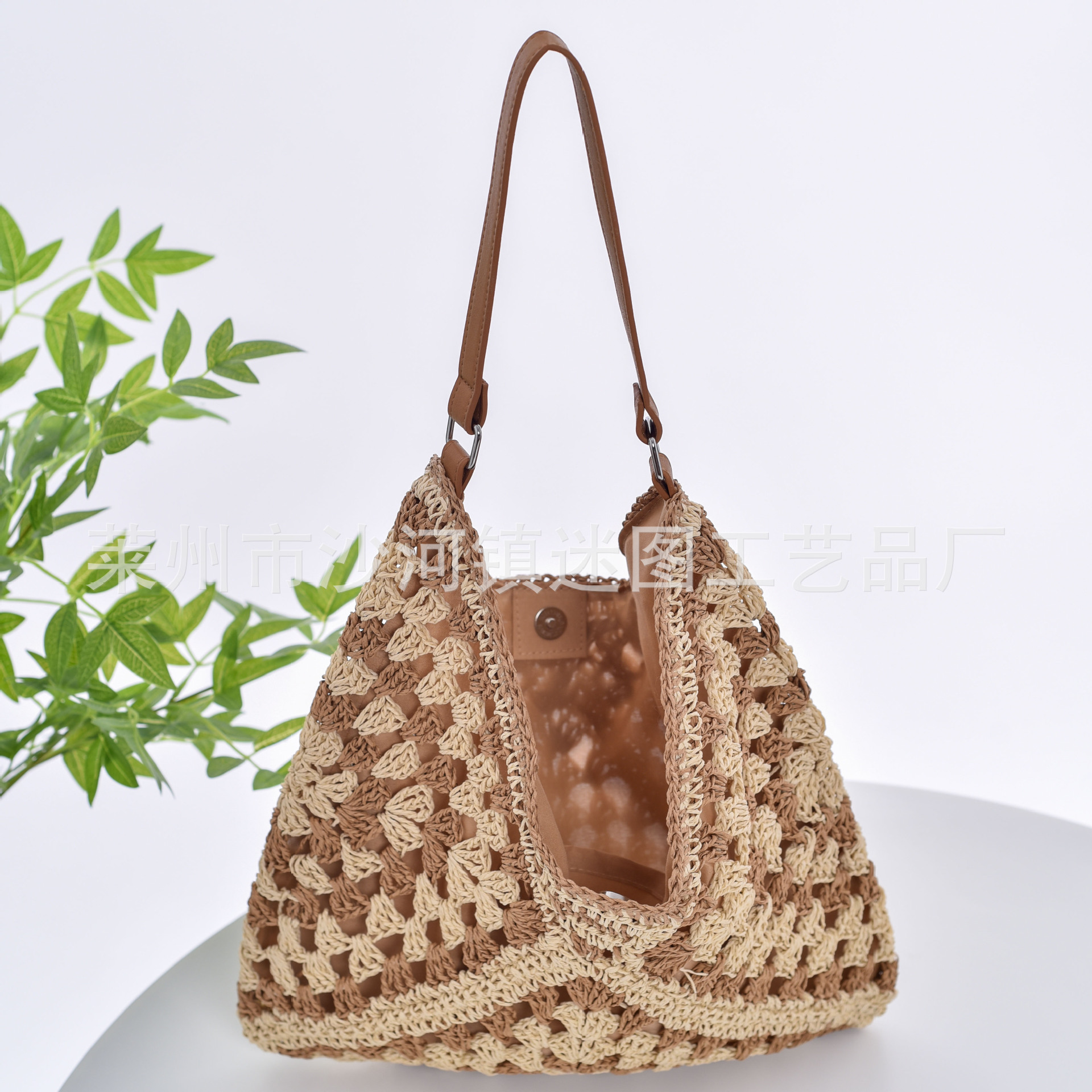 爆款手工草编镂空方花大三角撞色编织单肩包源头工厂现货批发