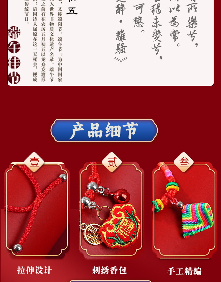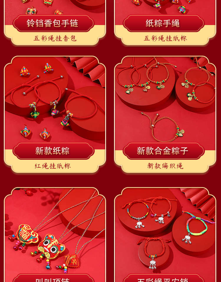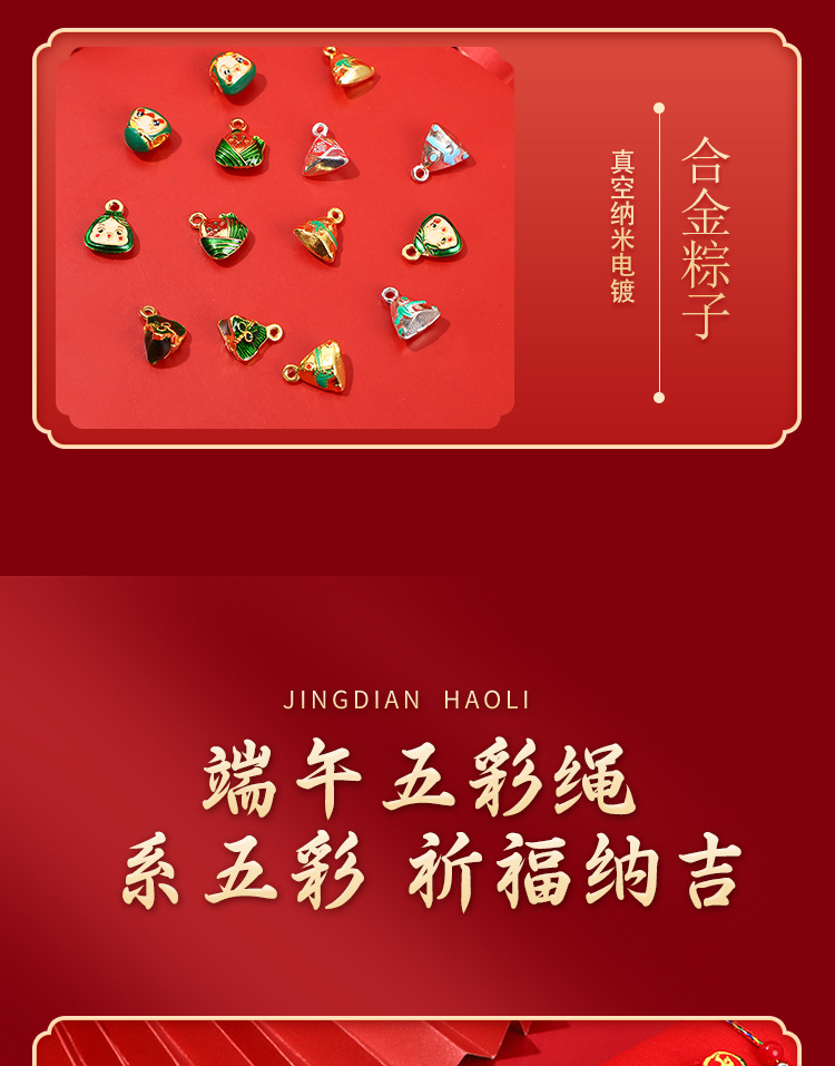端午节五彩绳儿童手工编织手绳五月节本命年红绳粽子项链手链批发