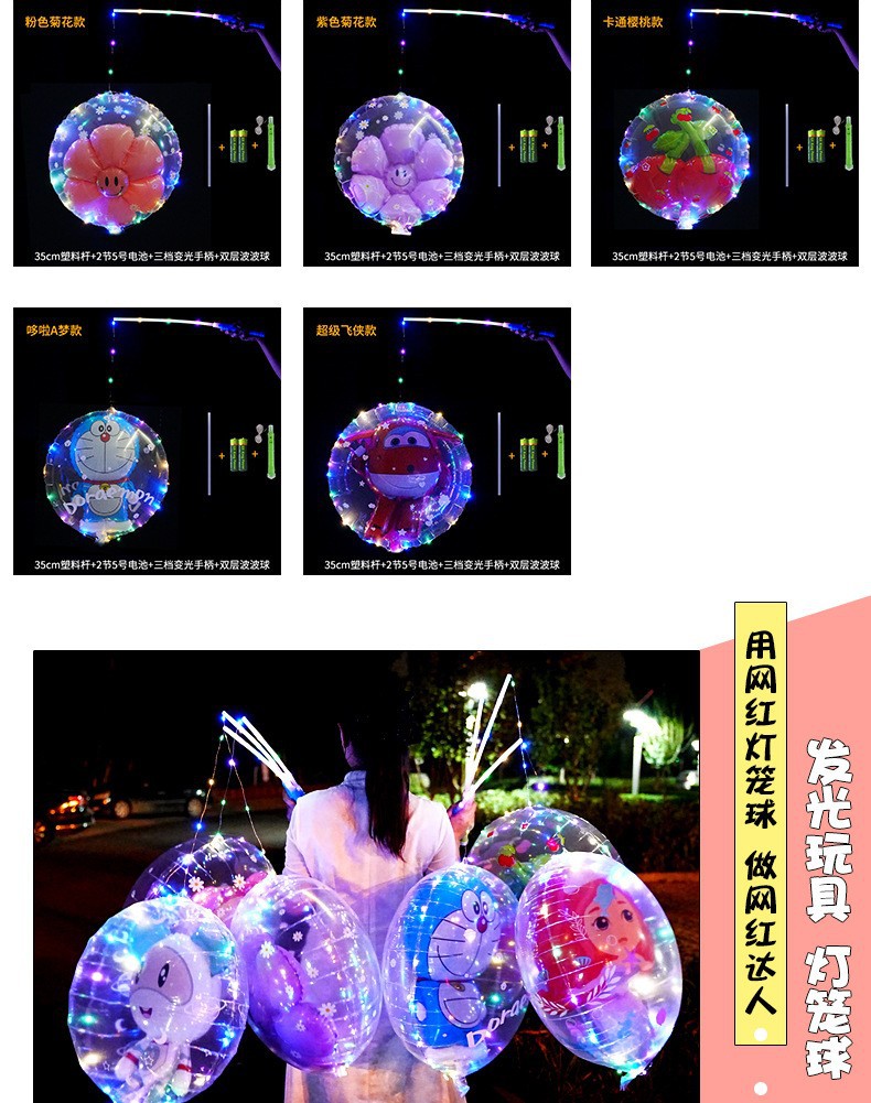 批发夜市热卖发光手提波波球新款节日摆摊装饰儿童卡通发光波波球