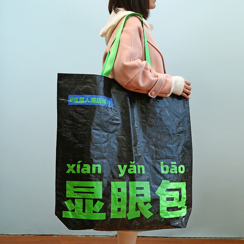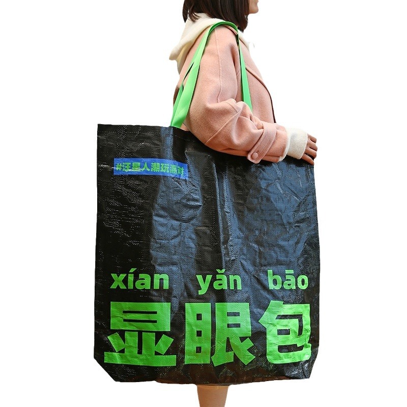 网红显眼包编织袋定 制pp覆膜手提袋街拍显眼包手提编制袋加印LOG