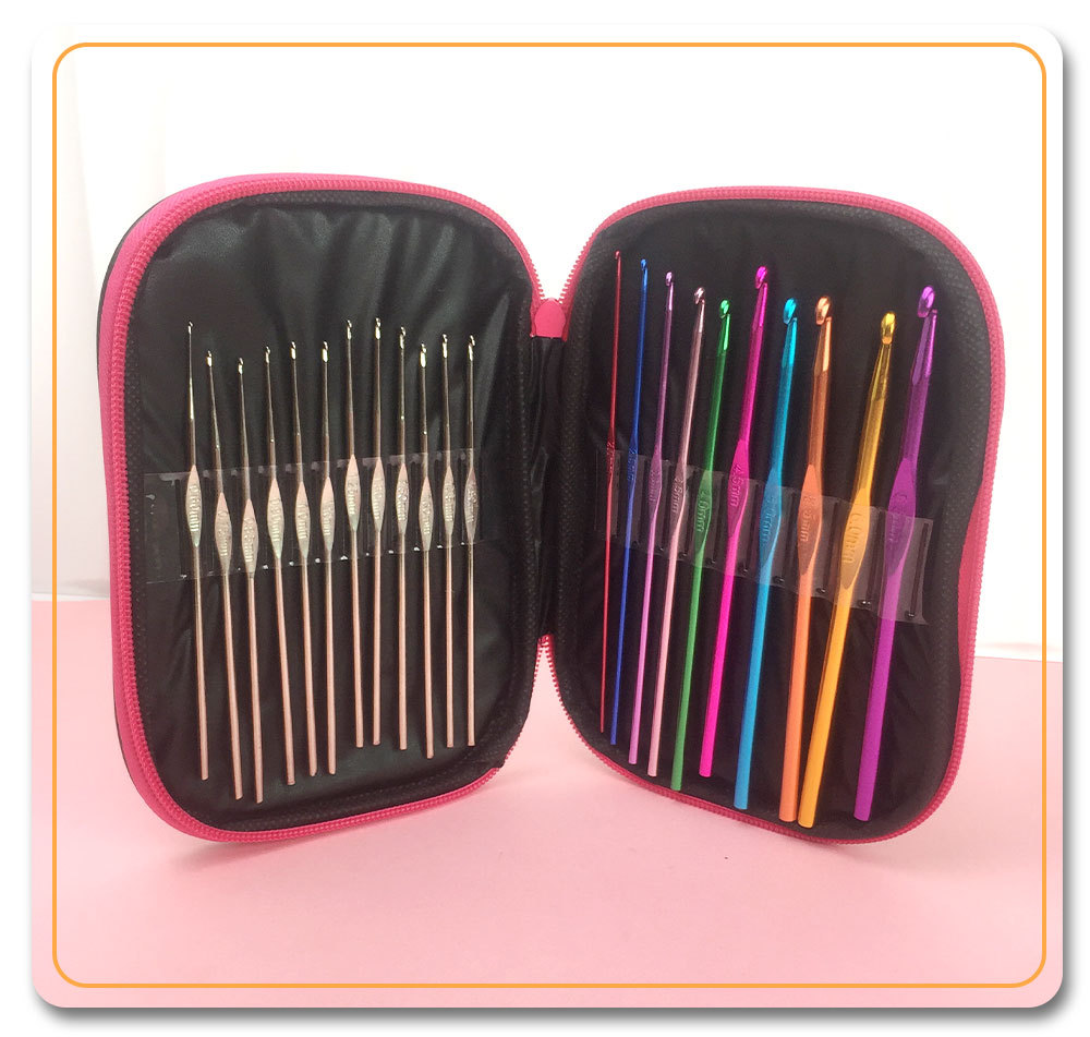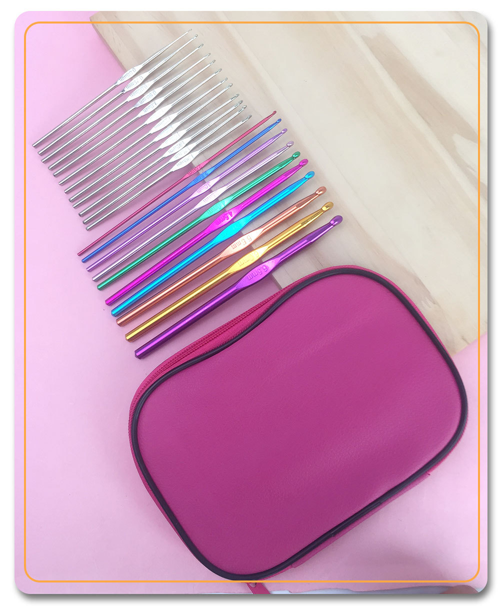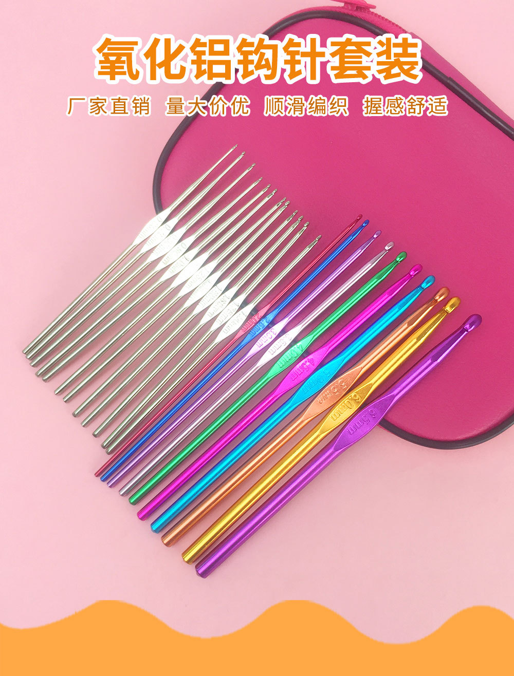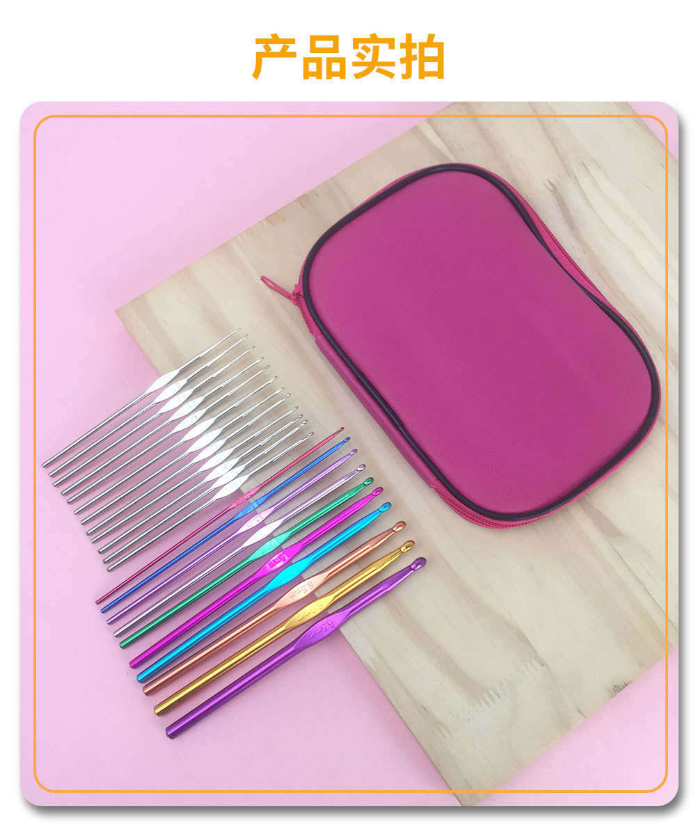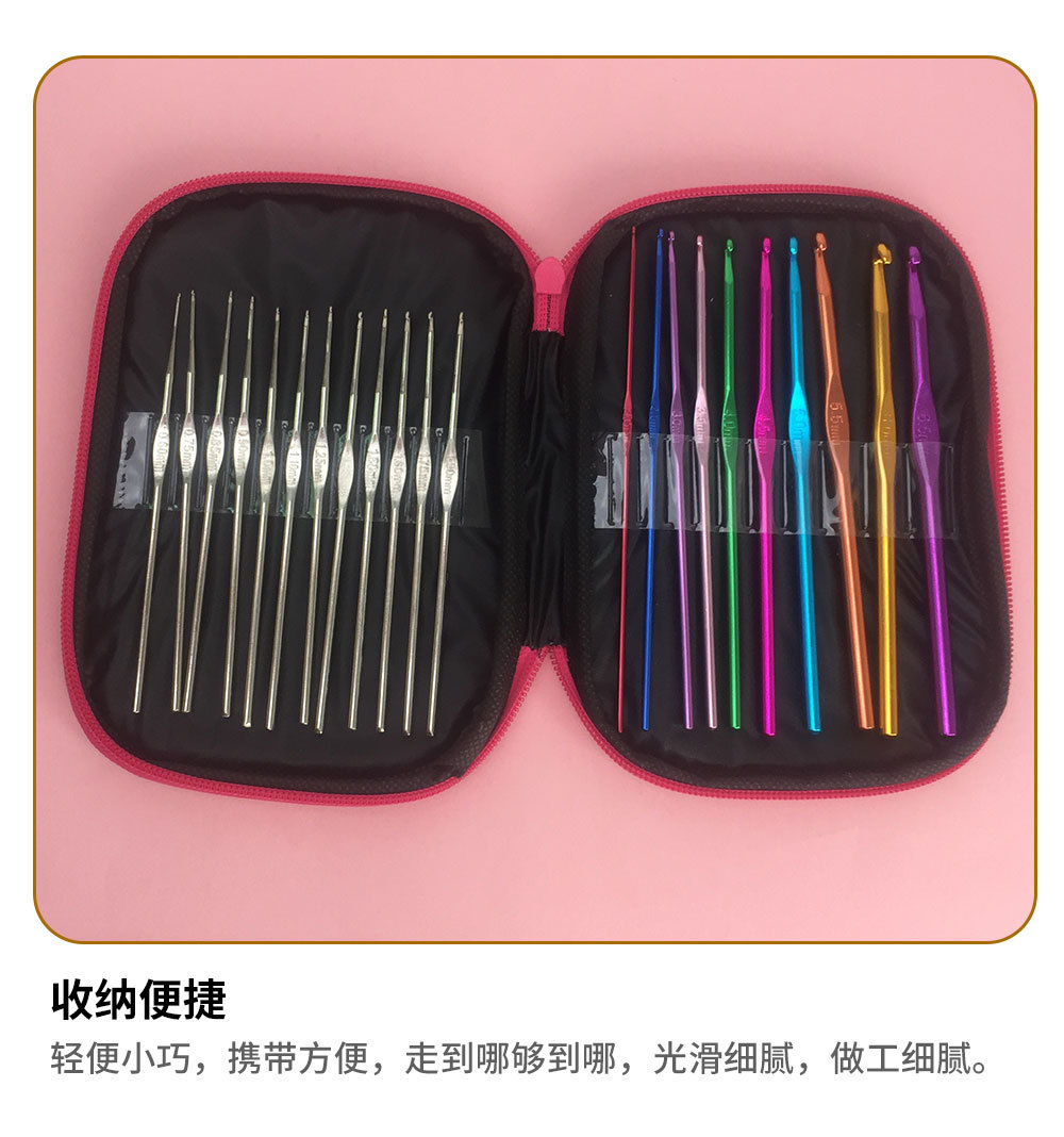 彩色金属铁钩针22根不锈钢铝合金属勾针包套装铝钩针编织工具套装