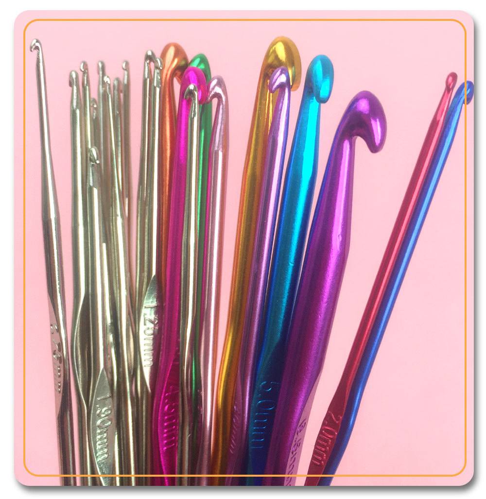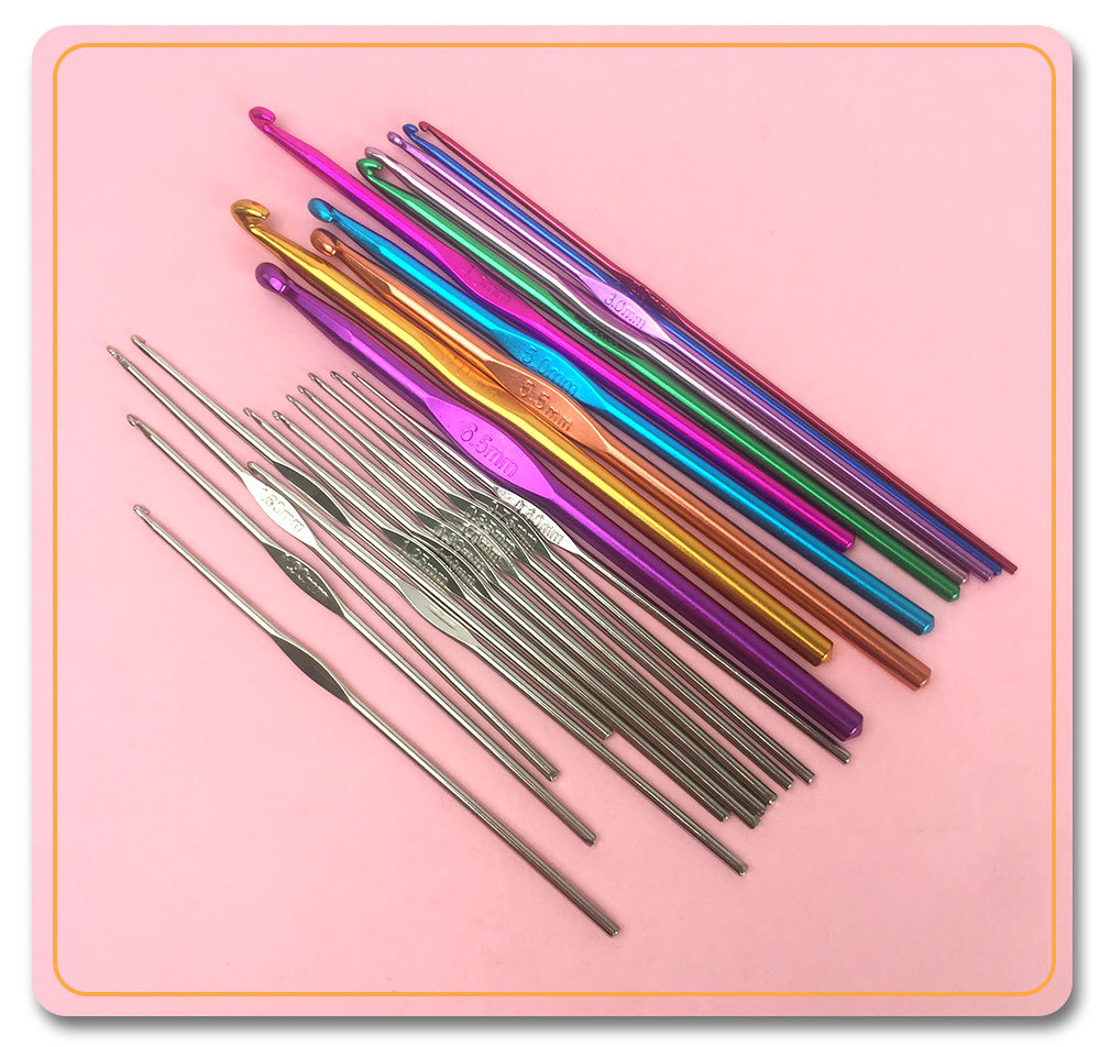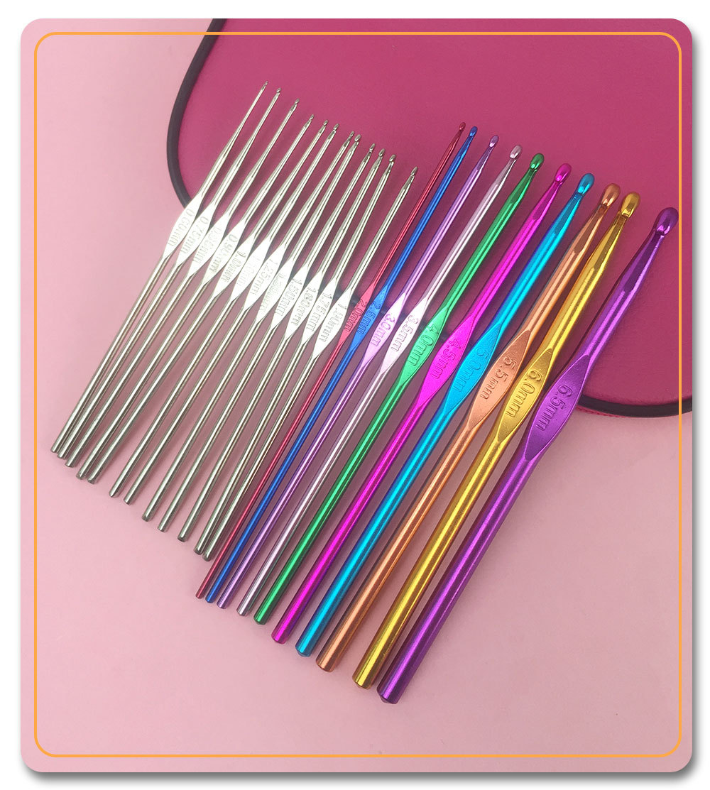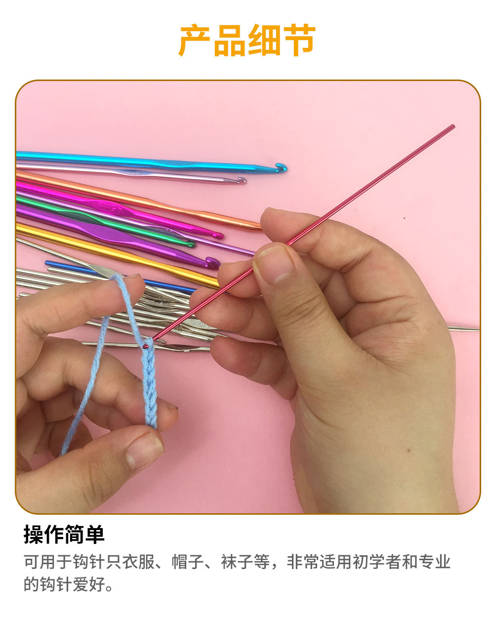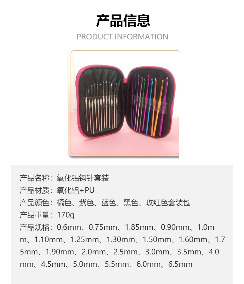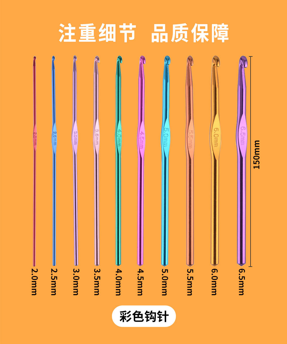 彩色金属铁钩针22根不锈钢铝合金属勾针包套装铝钩针编织工具套装