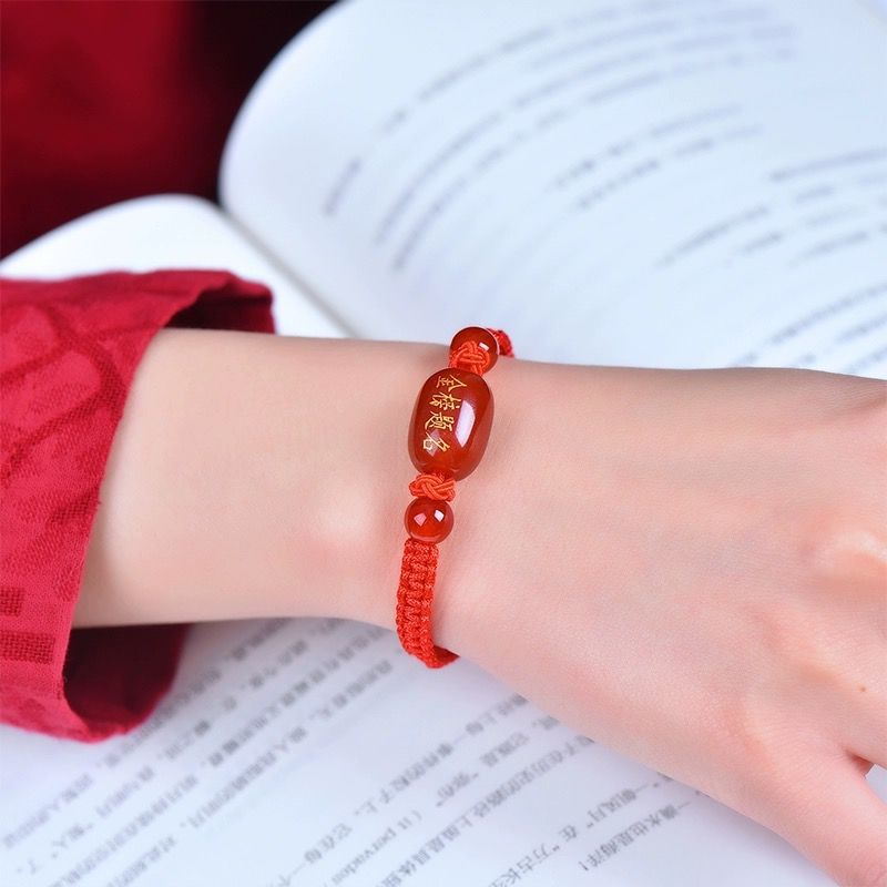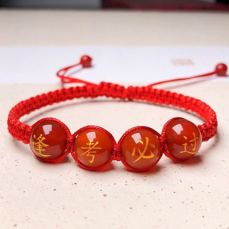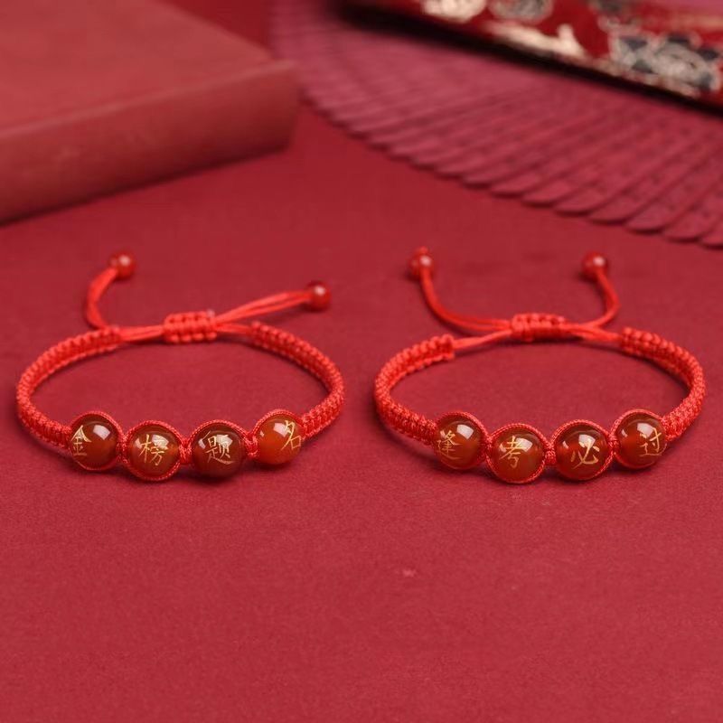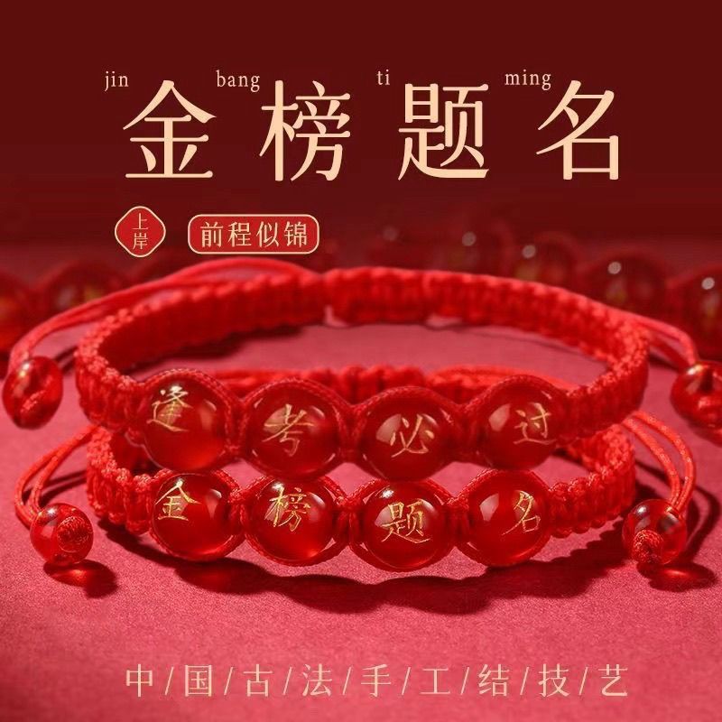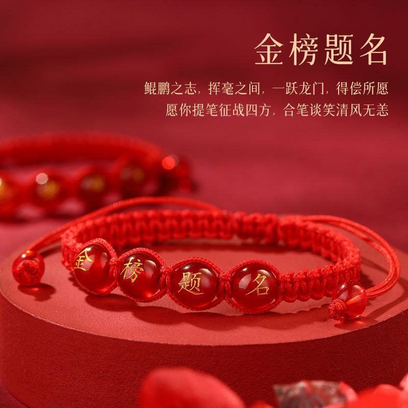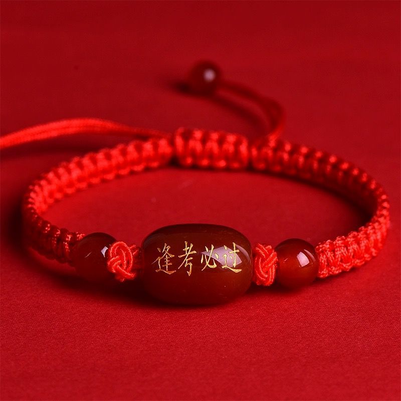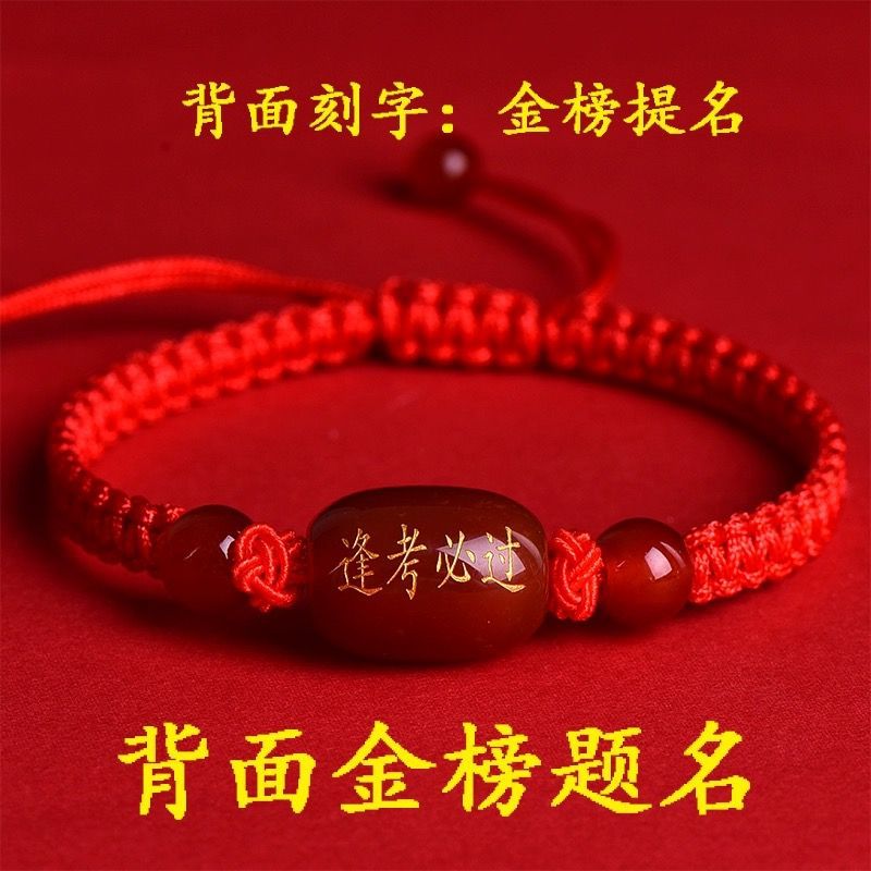 逢考必过金榜题名红玛瑙手链中考高考红绳考生手工编织必过手绳