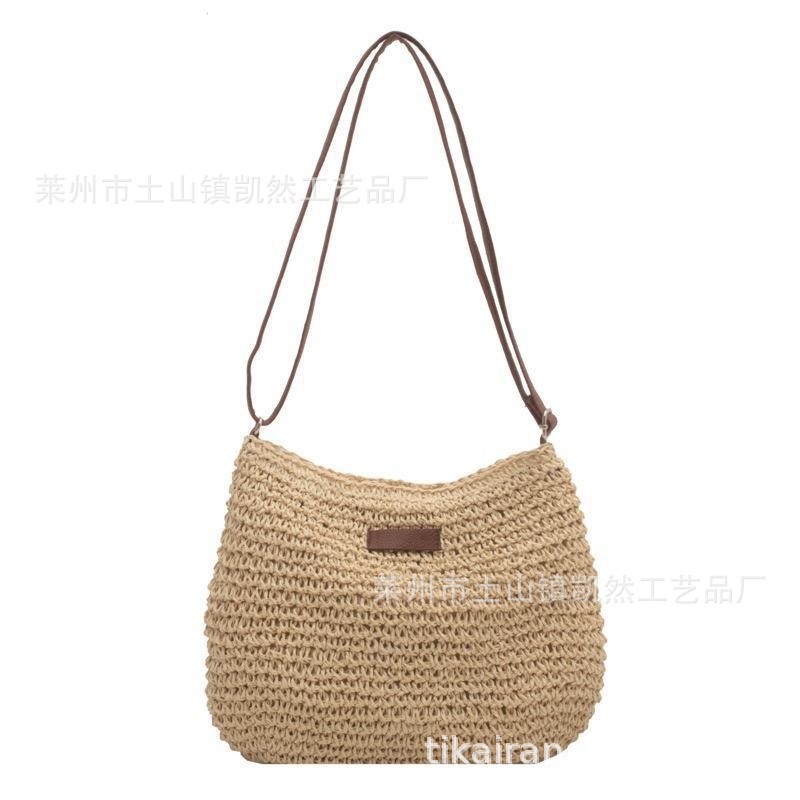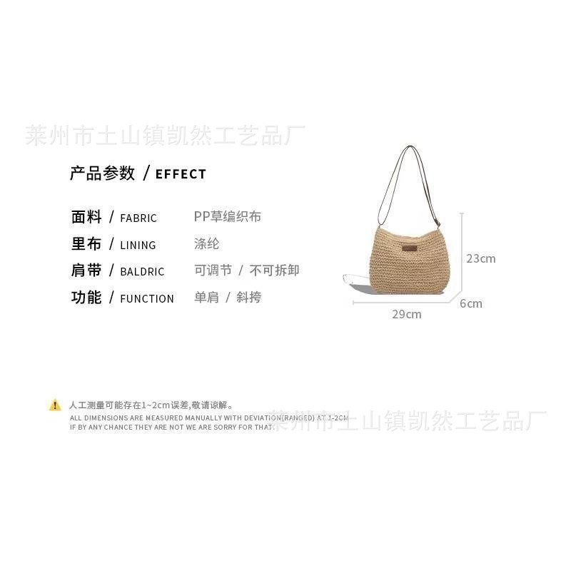 ins日常斜挎草编包 简约工作搭配腋下包牛皮纸草编织包女士包包