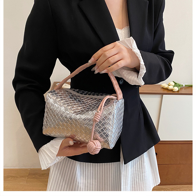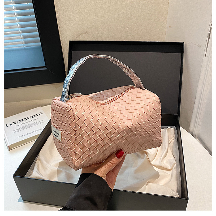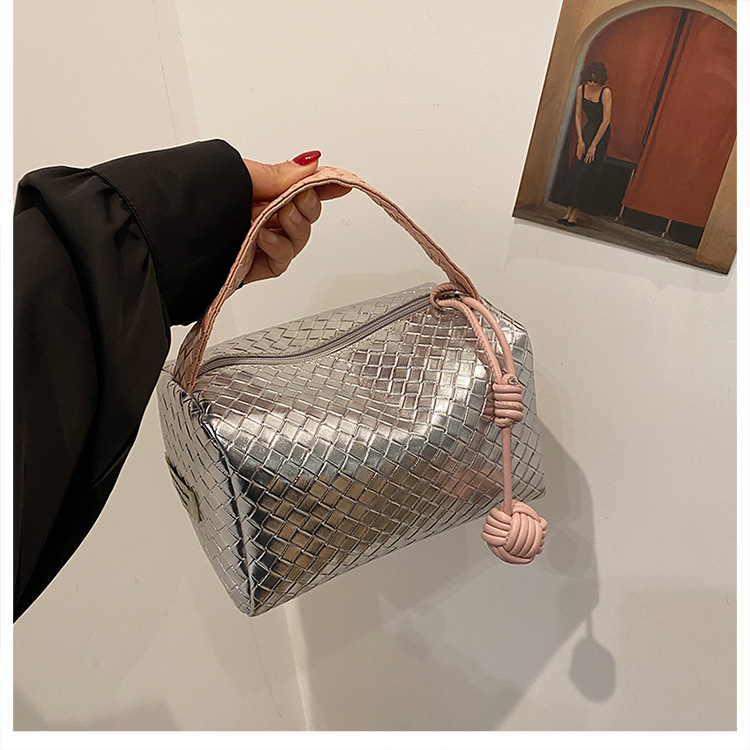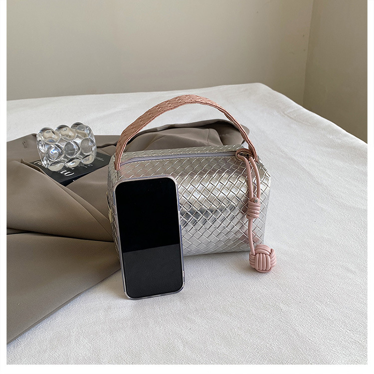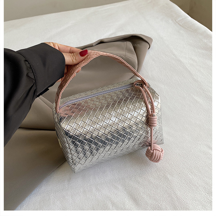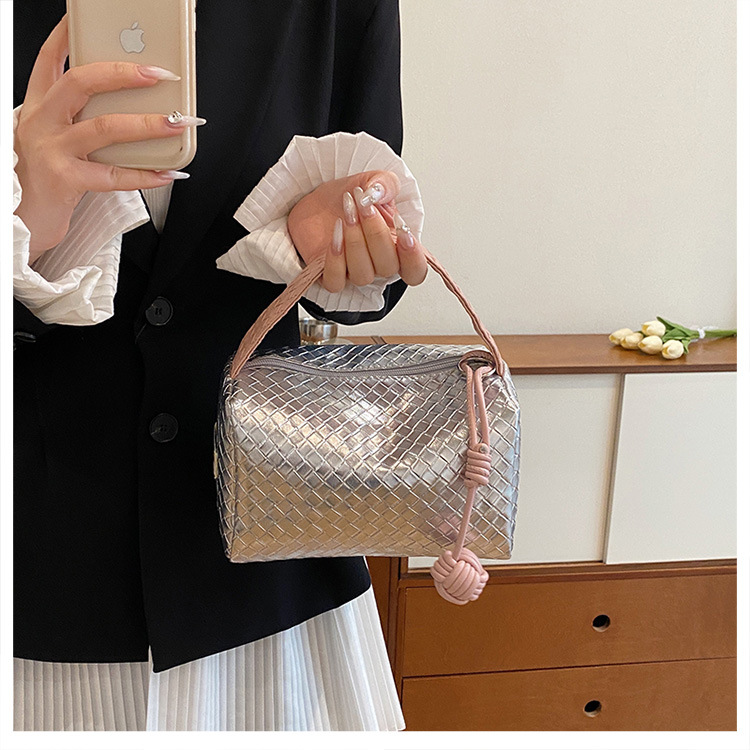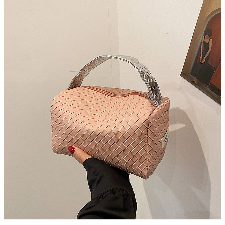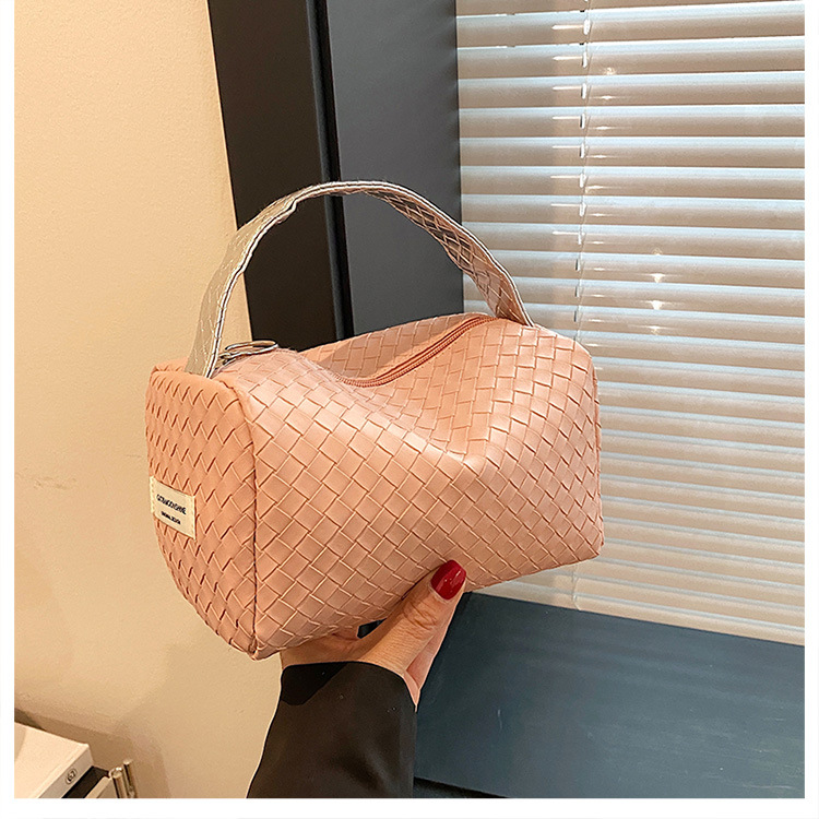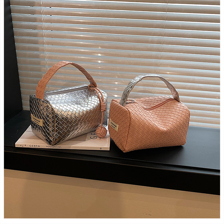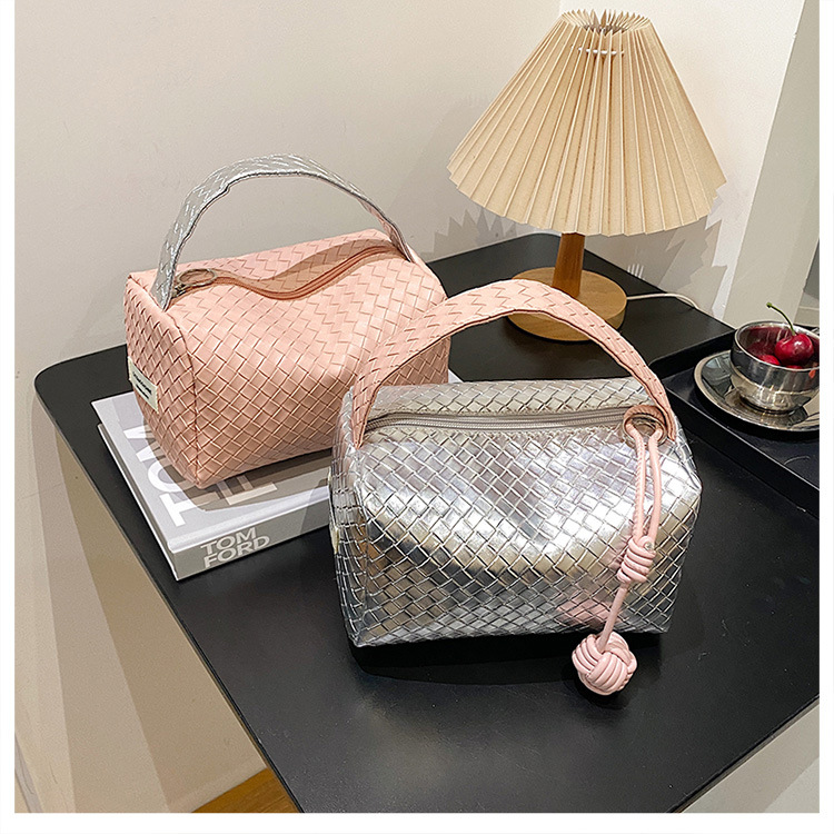 2024新款编织包包女银粉拼接洗漱化妆包质感百搭小众设计手提包