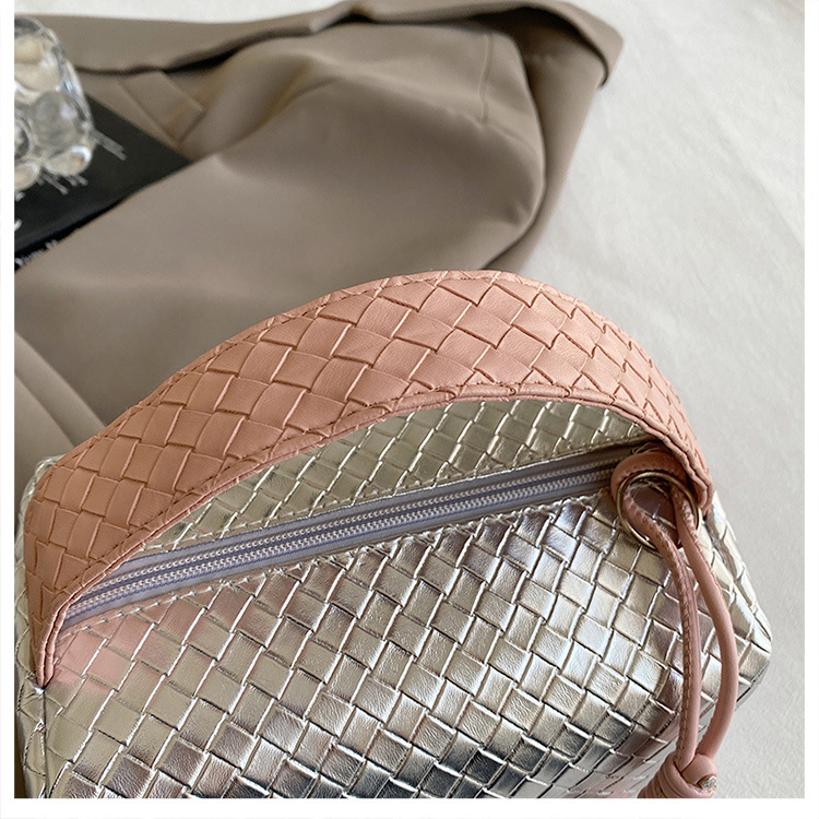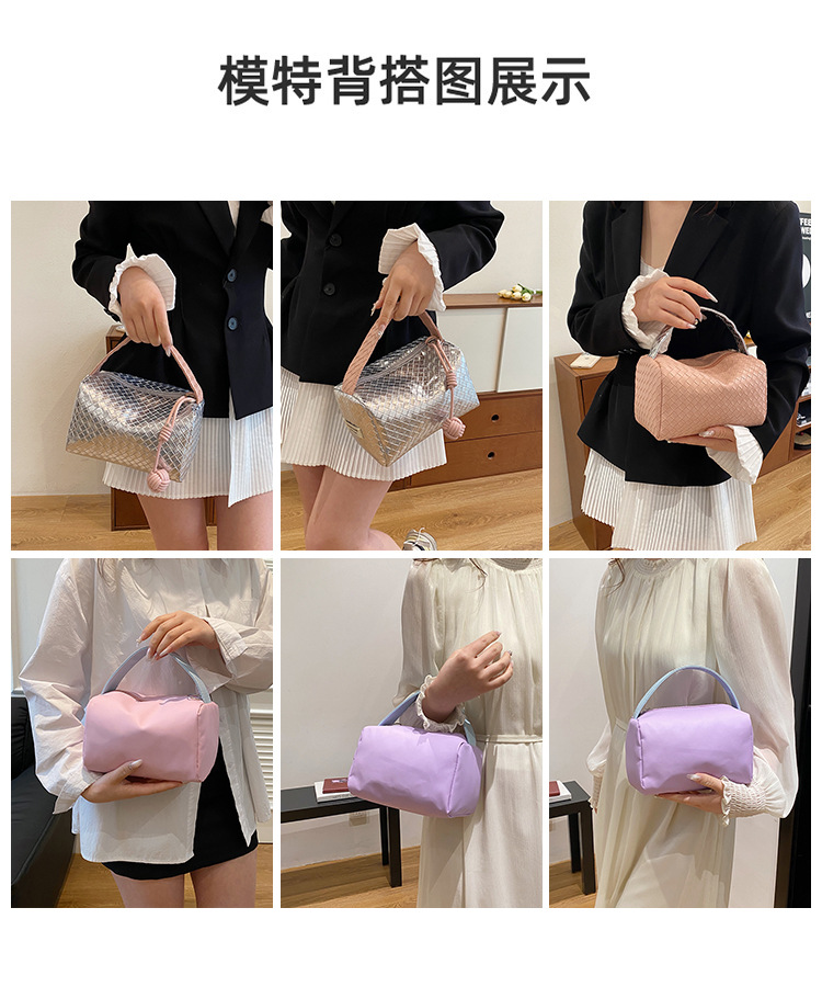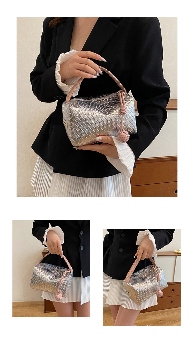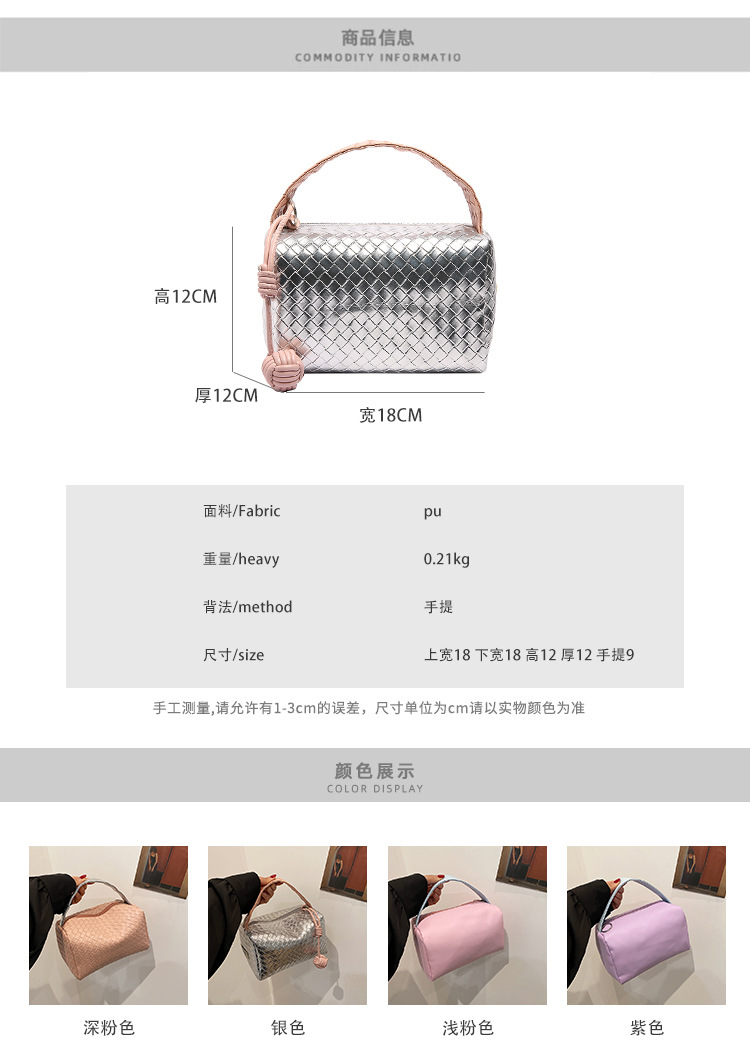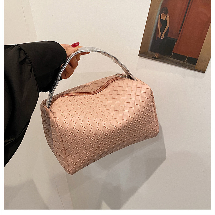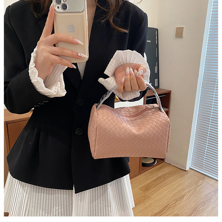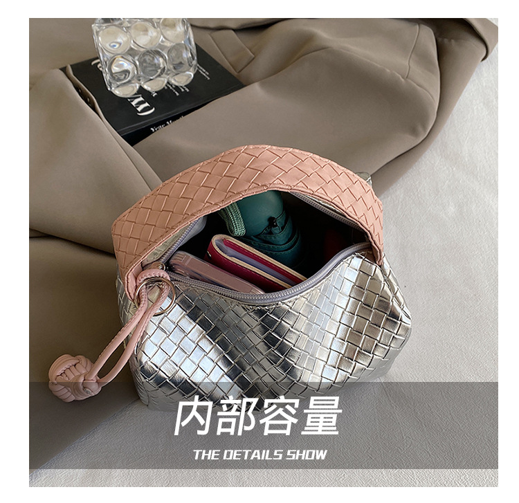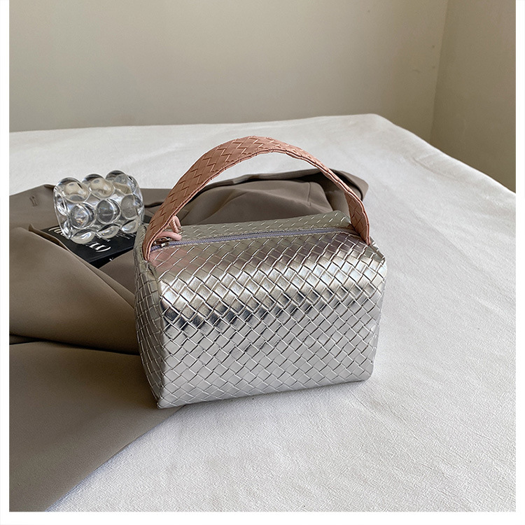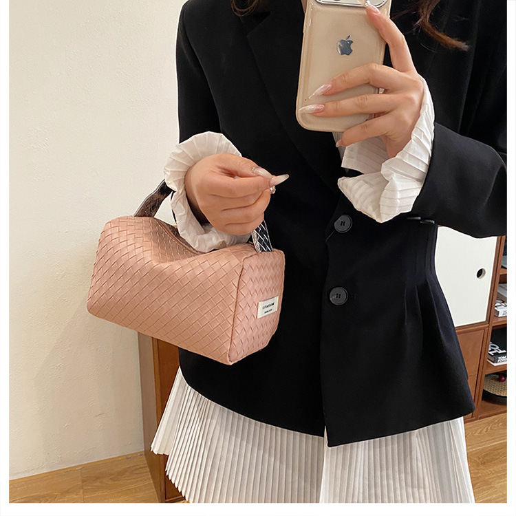 2024新款编织包包女银粉拼接洗漱化妆包质感百搭小众设计手提包