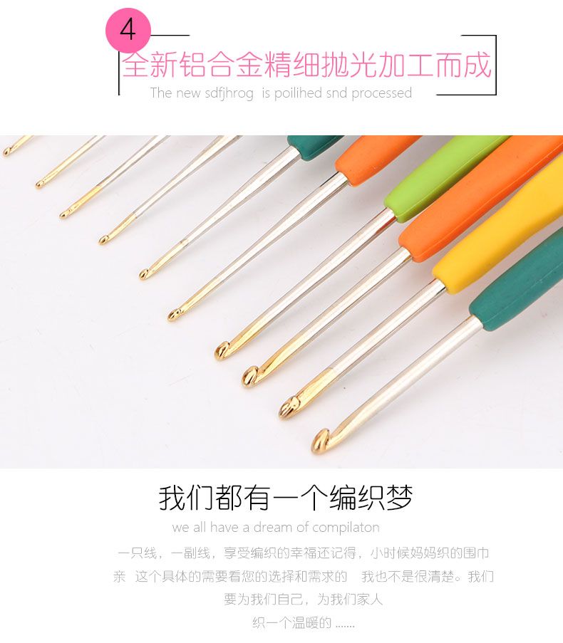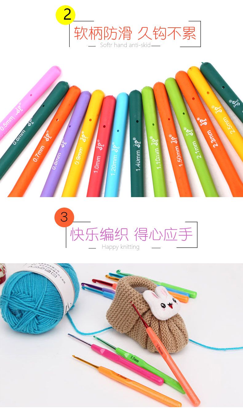 多规格硅胶软柄金头细钩针彩色手工diy编织工具手编玩偶毛衣钩针