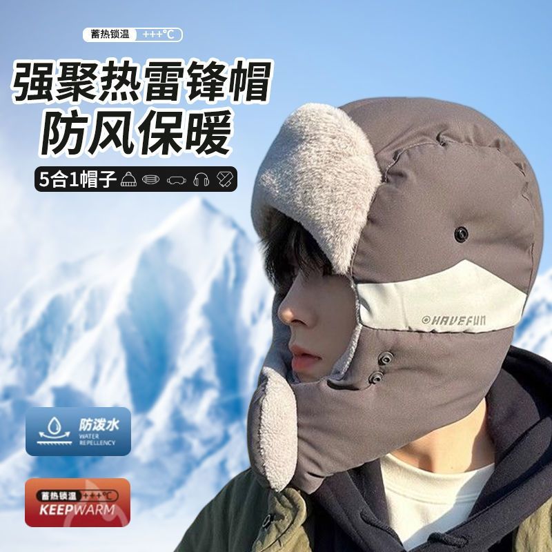 【情侣款】雷锋帽子男滑雪冬户外护耳厚棉帽加厚保暖防寒骑车加绒