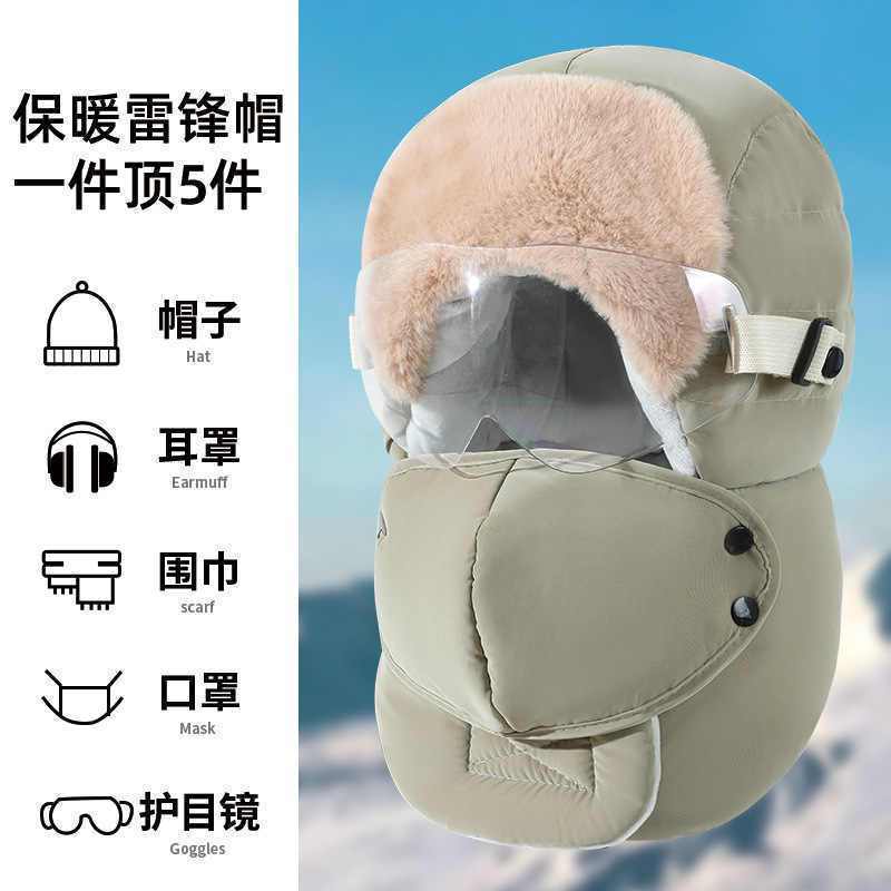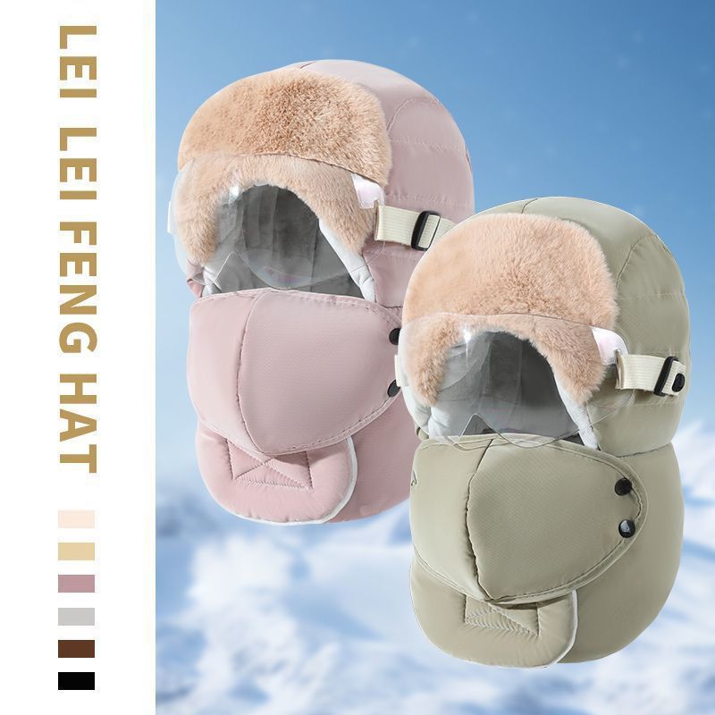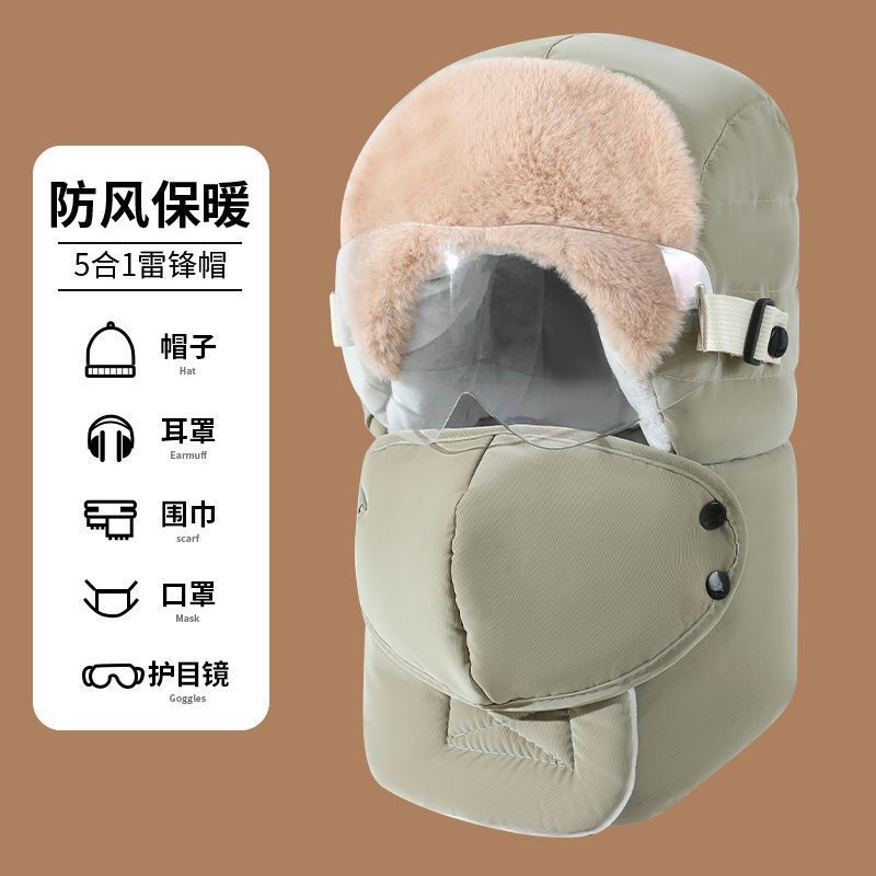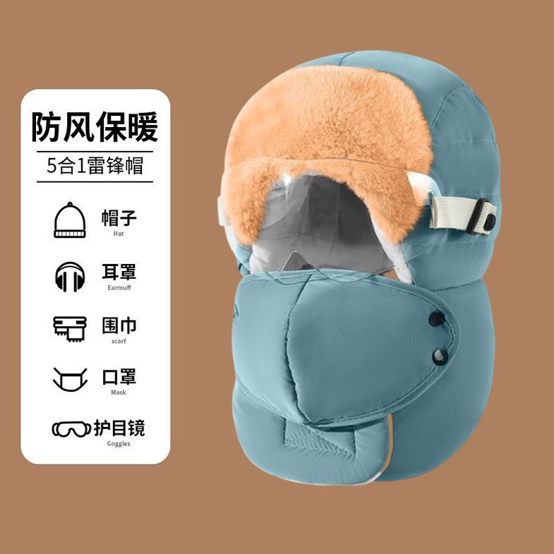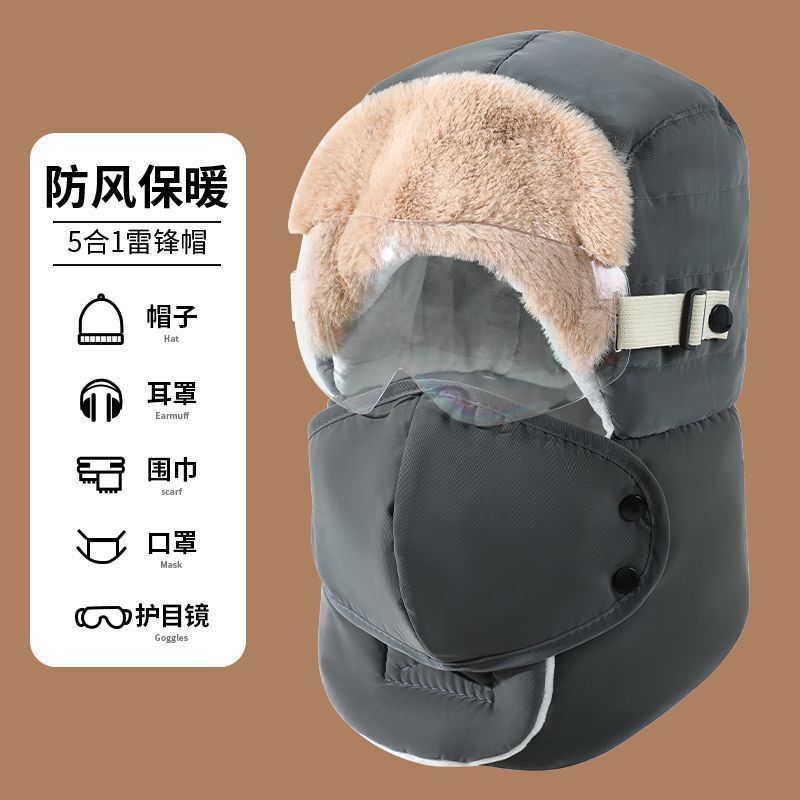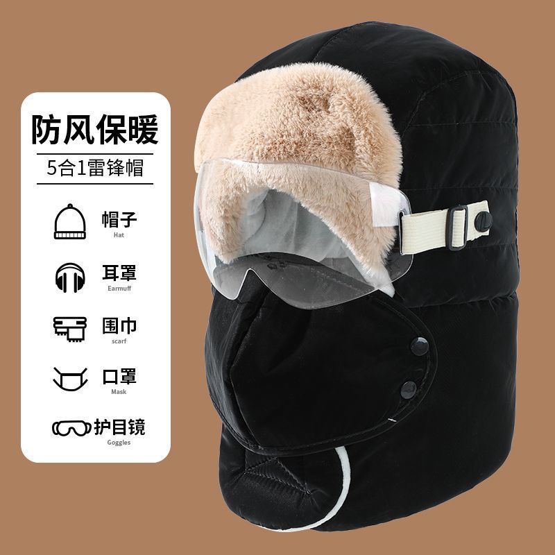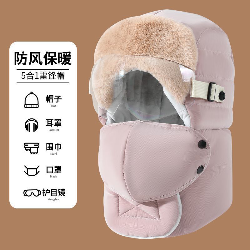 雷锋帽男女冬季加绒加厚保暖东北帽户外骑行电动摩托车护耳防风帽