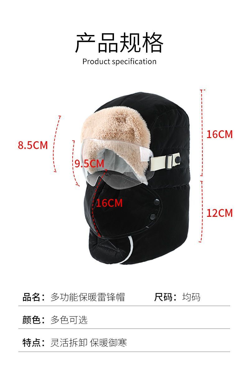 | the hat is also lined with velvet [without lenses] rain and snow proof/anti-haze(帽里也加绒【不含镜片】防雨雪/防雾霾) | USD $5.33 | 99999 piece available |