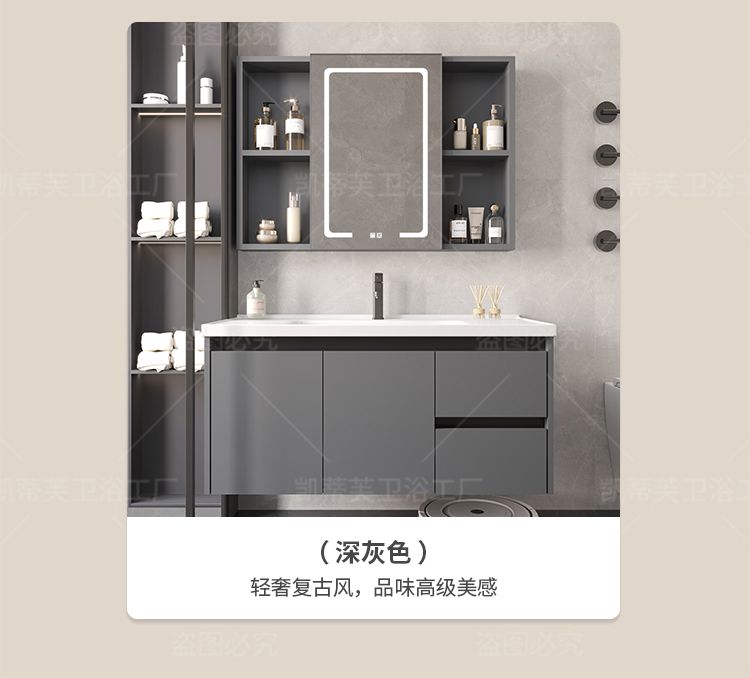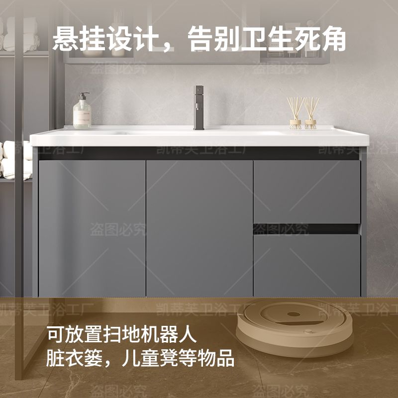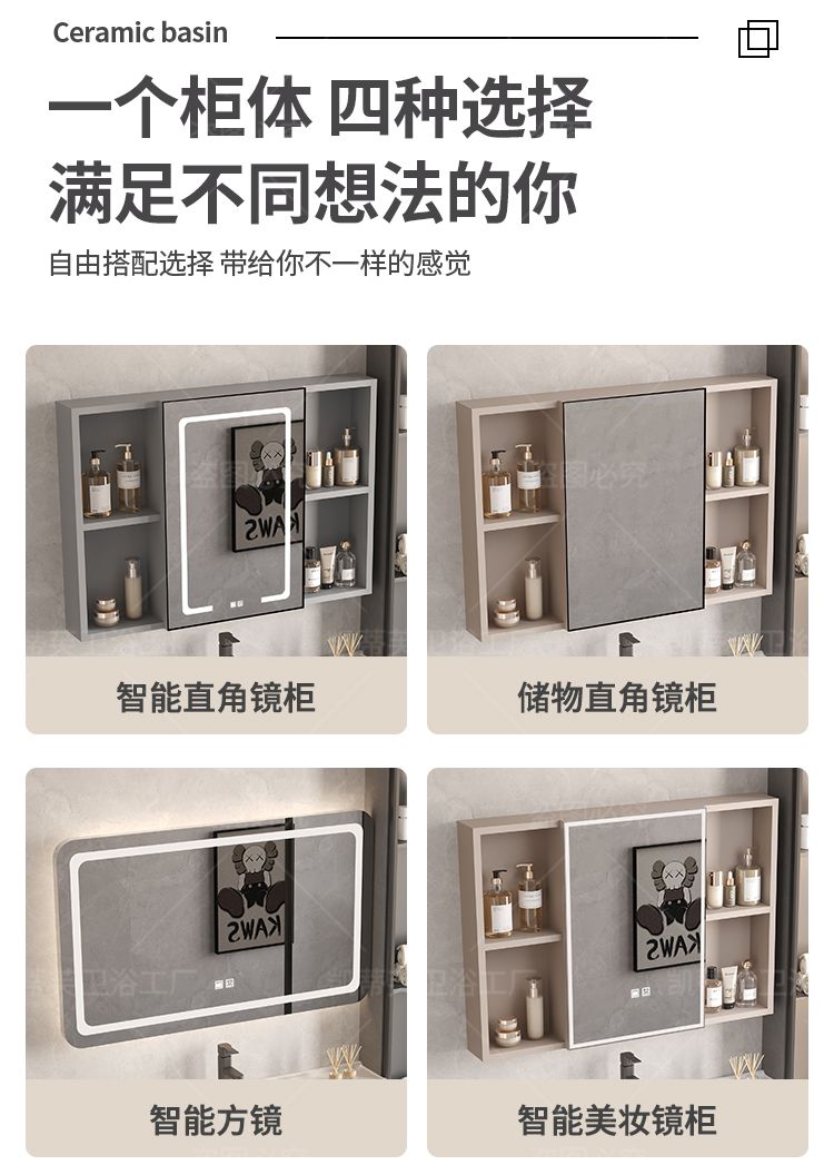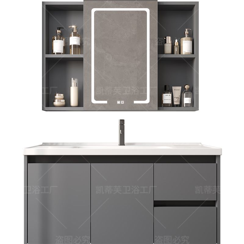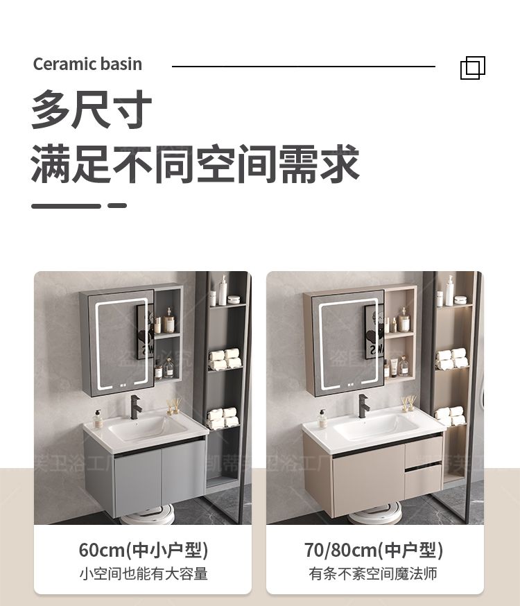 加厚智能太空铝浴室柜洗脸一体陶瓷盆卫生间套装组合镜柜+包安装