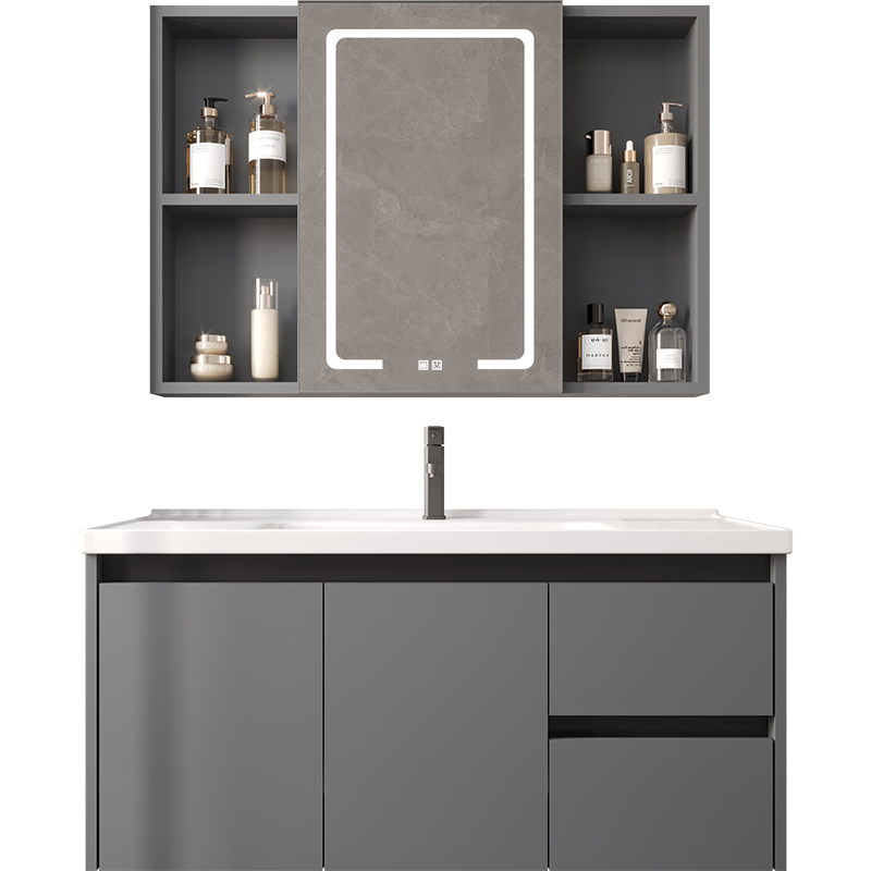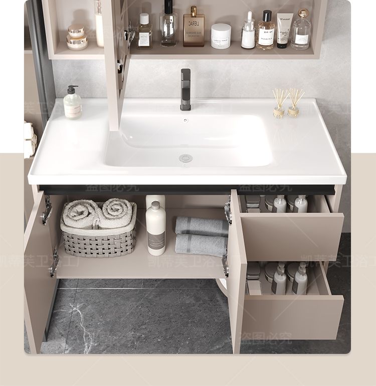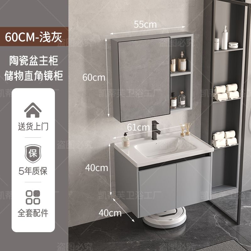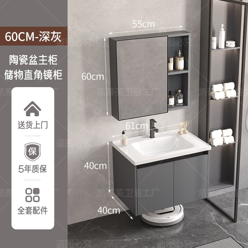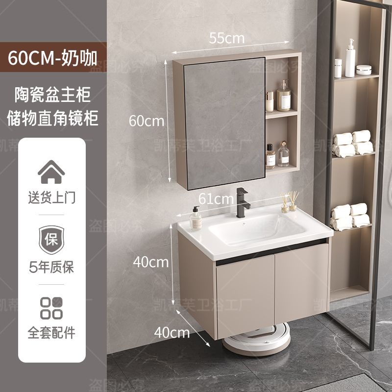 加厚智能太空铝浴室柜洗脸一体陶瓷盆卫生间套装组合镜柜+包安装