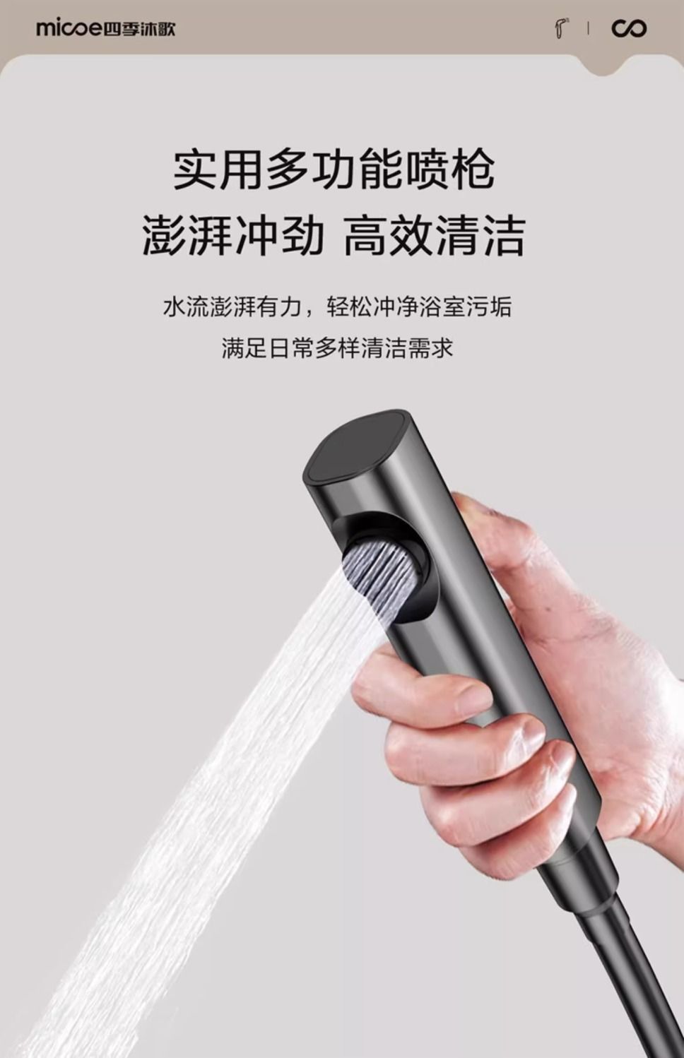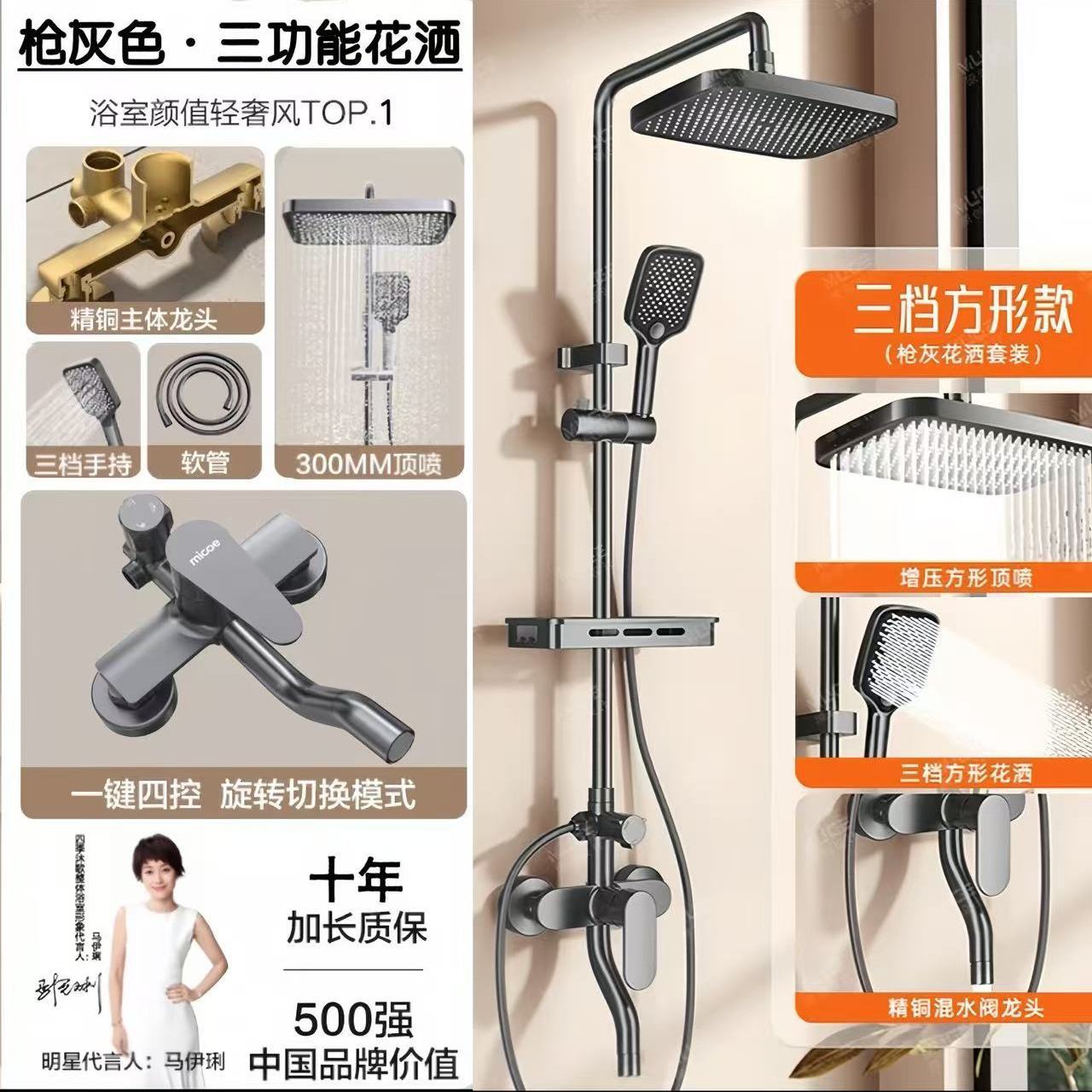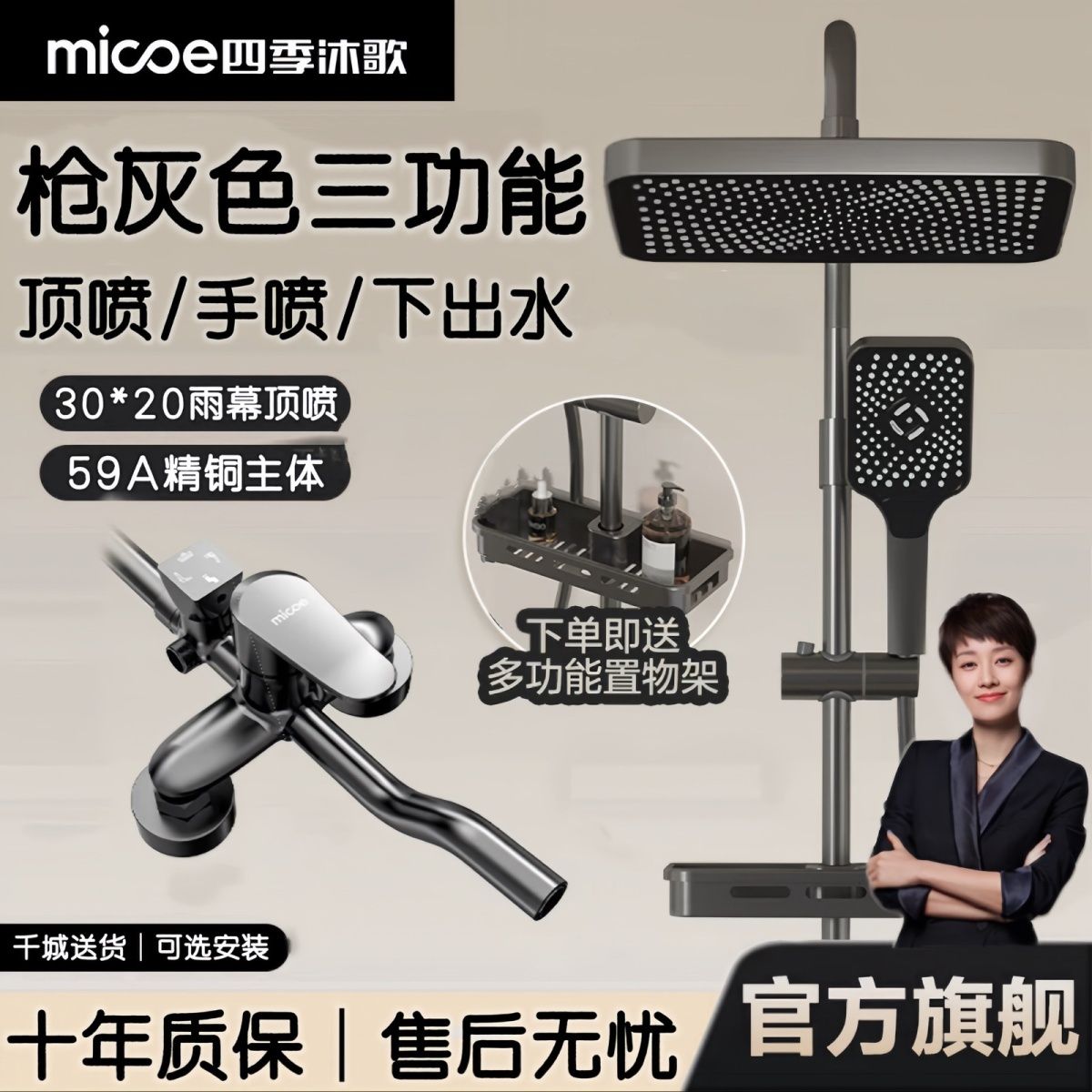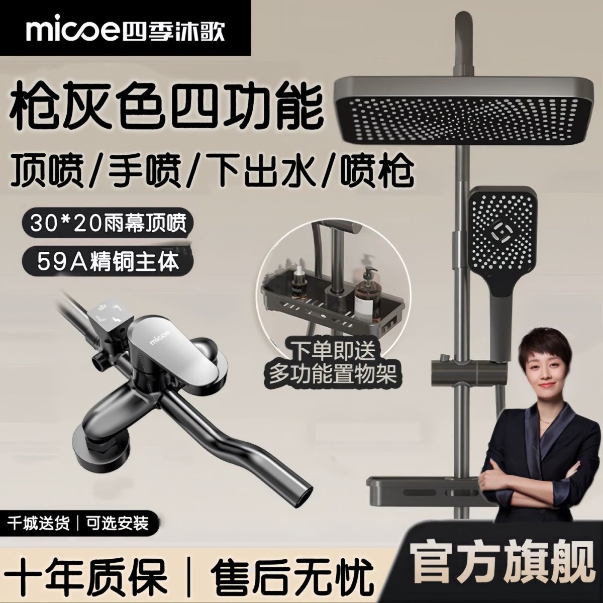 四季沐歌枪灰色淋浴花洒套装家用卫生间浴室沐浴增压淋雨喷头全铜