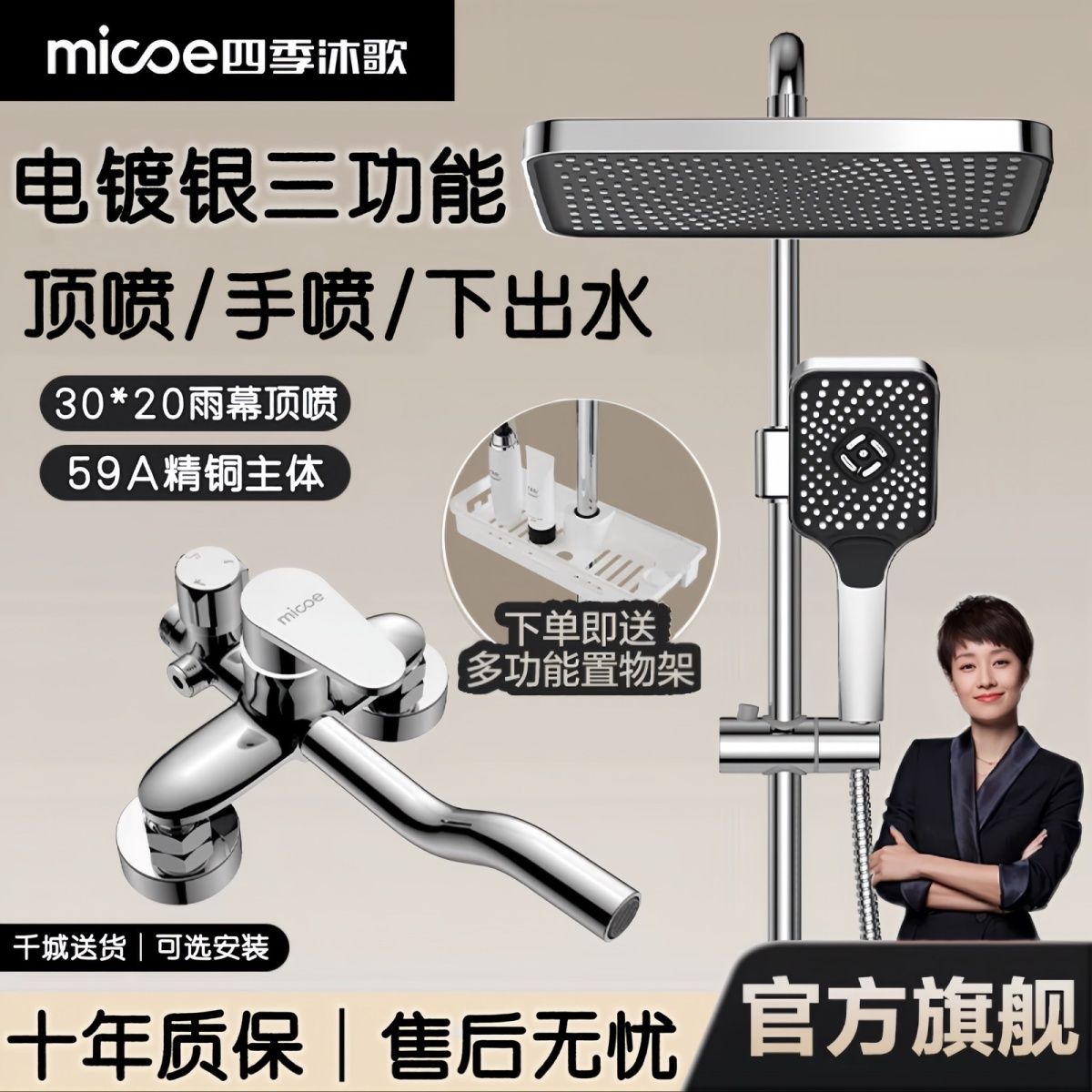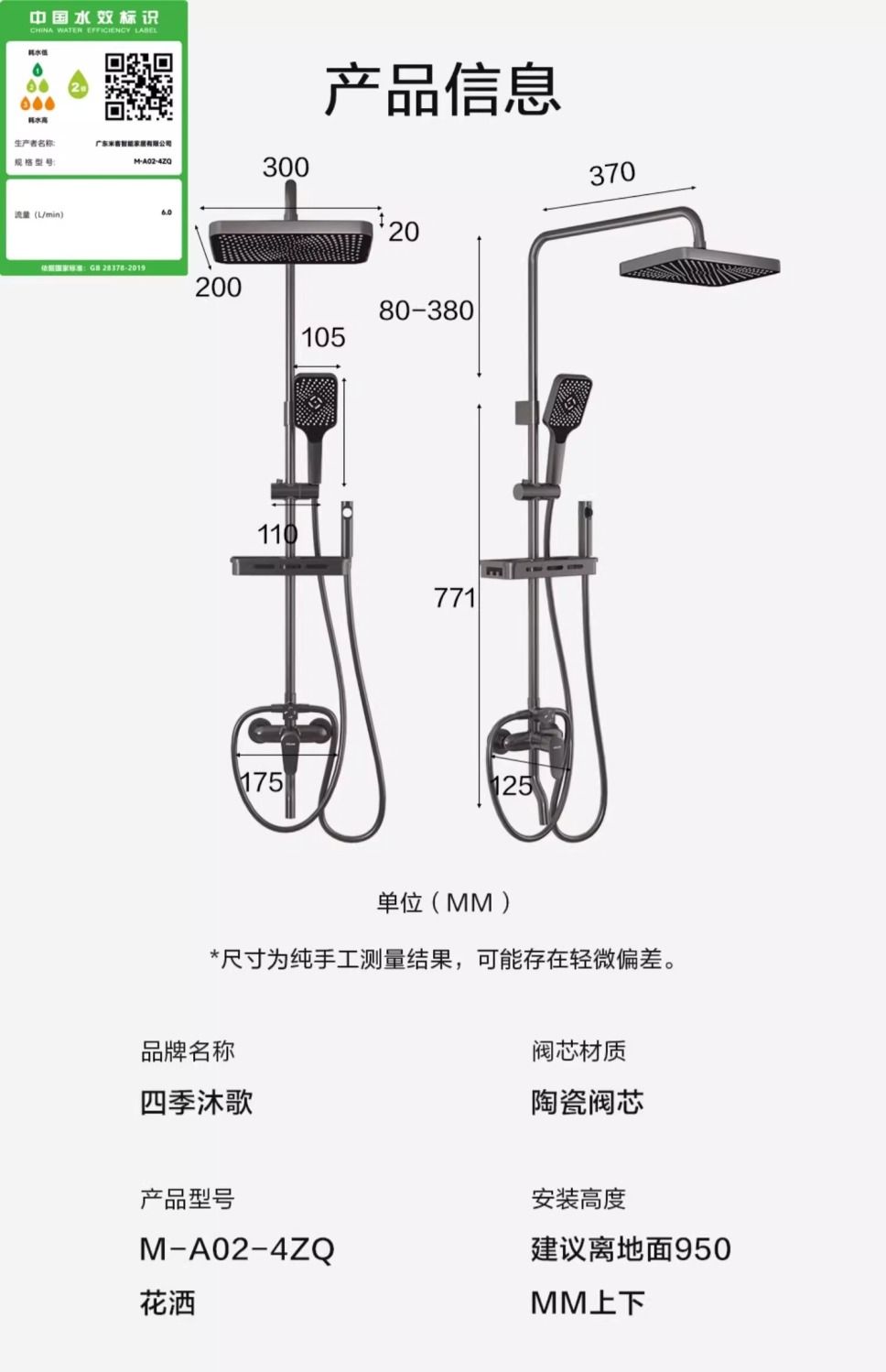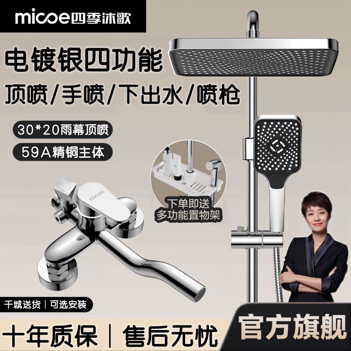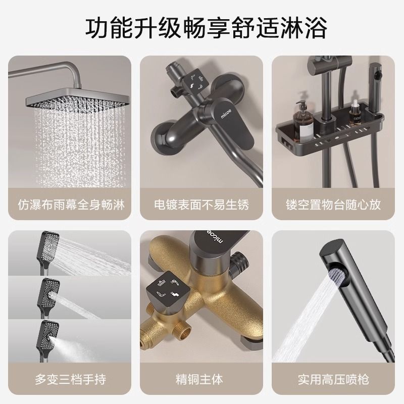 四季沐歌枪灰色淋浴花洒套装家用卫生间浴室沐浴增压淋雨喷头全铜