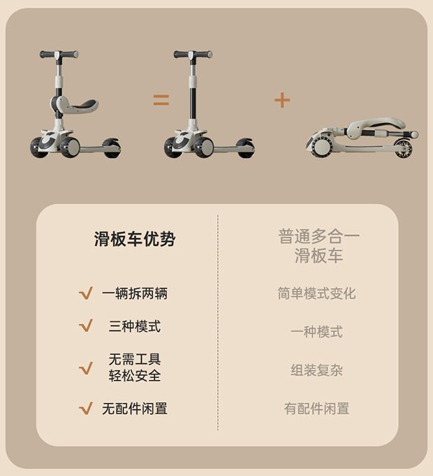 儿童滑板车1一3-6一12岁男女童小孩宝宝溜溜滑滑车可坐推骑三合一