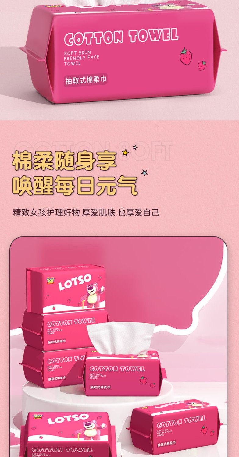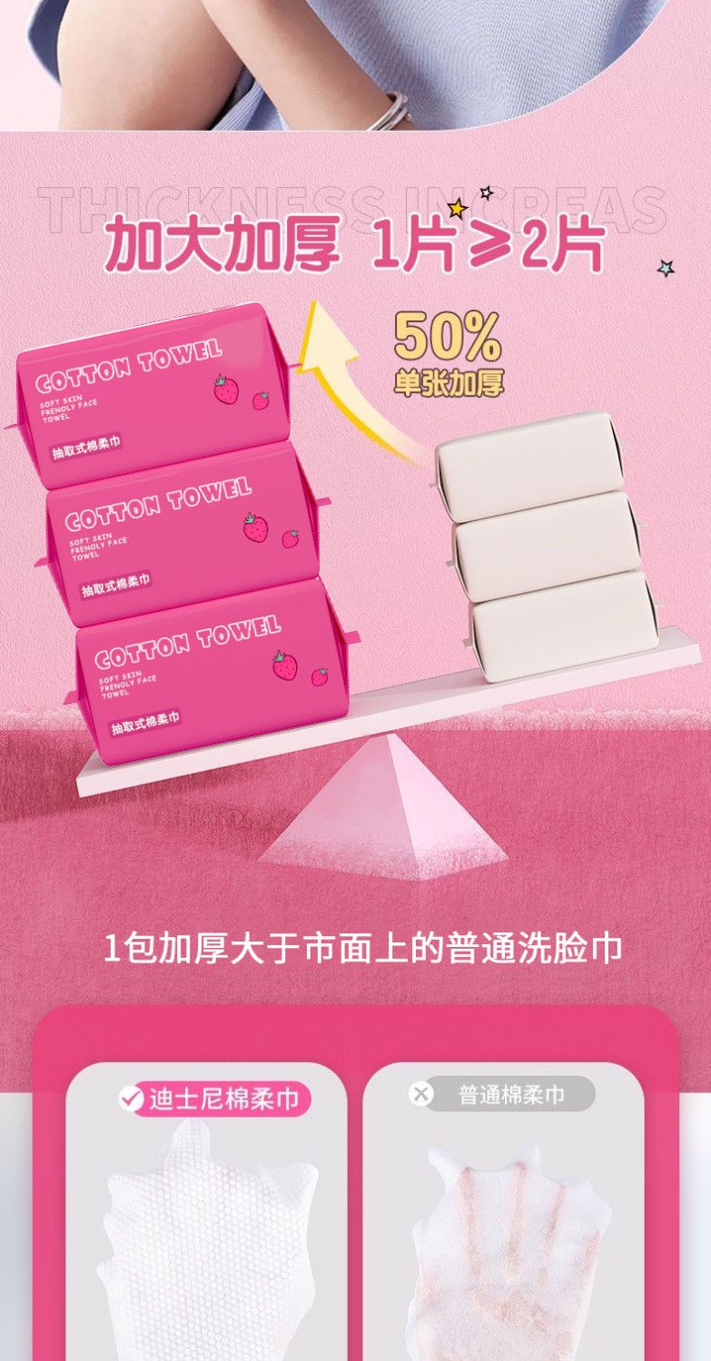 迪士尼洗脸巾一次性洗面巾纯棉超厚加大抽纸取式婴儿棉柔巾草莓熊