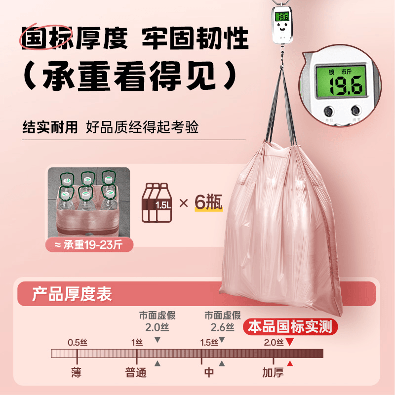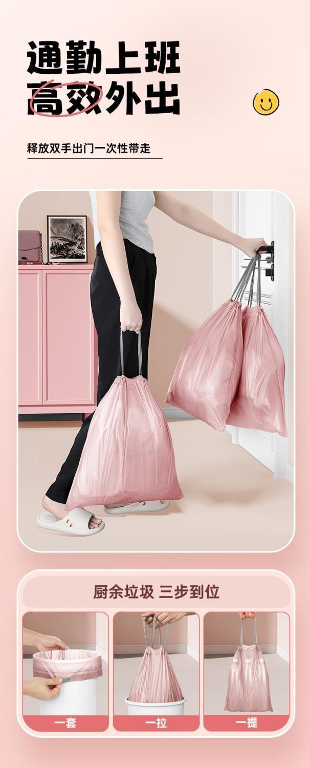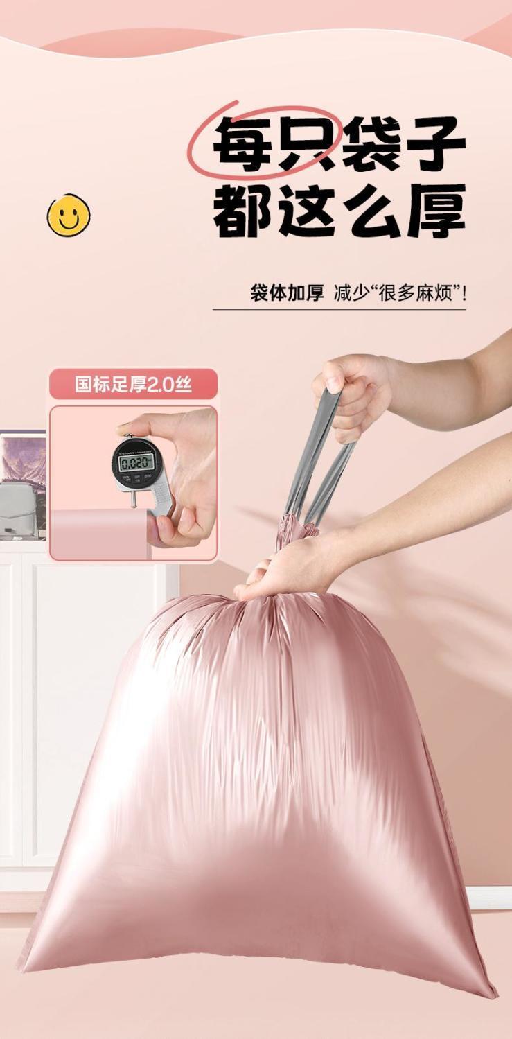 【热销百万】冰莓粉抽绳式家用加厚手提厨房卧室自动收口办公室