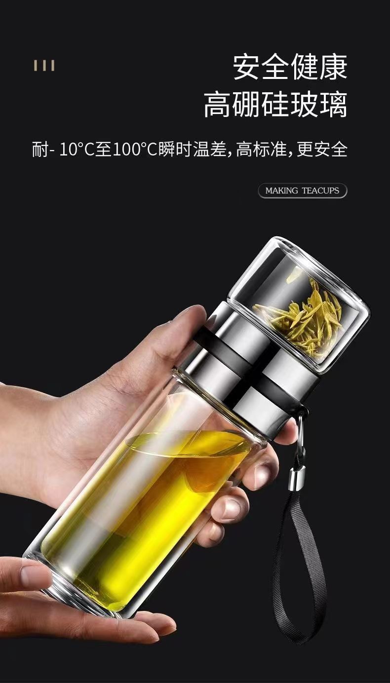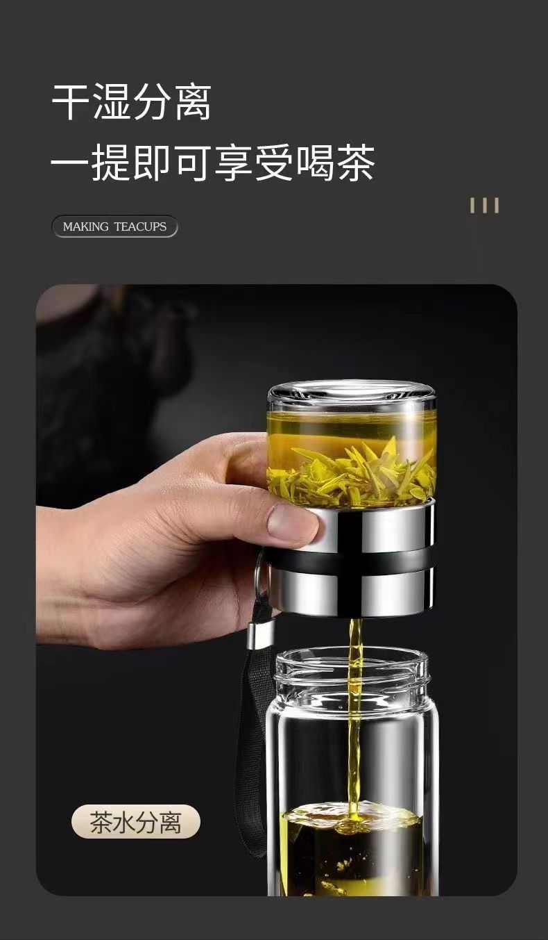 【抢杀妙】双层茶水分离杯玻璃杯子泡茶水杯便携水杯茶杯高颜值
