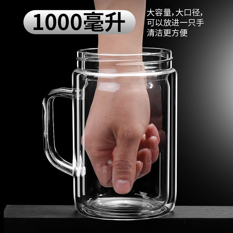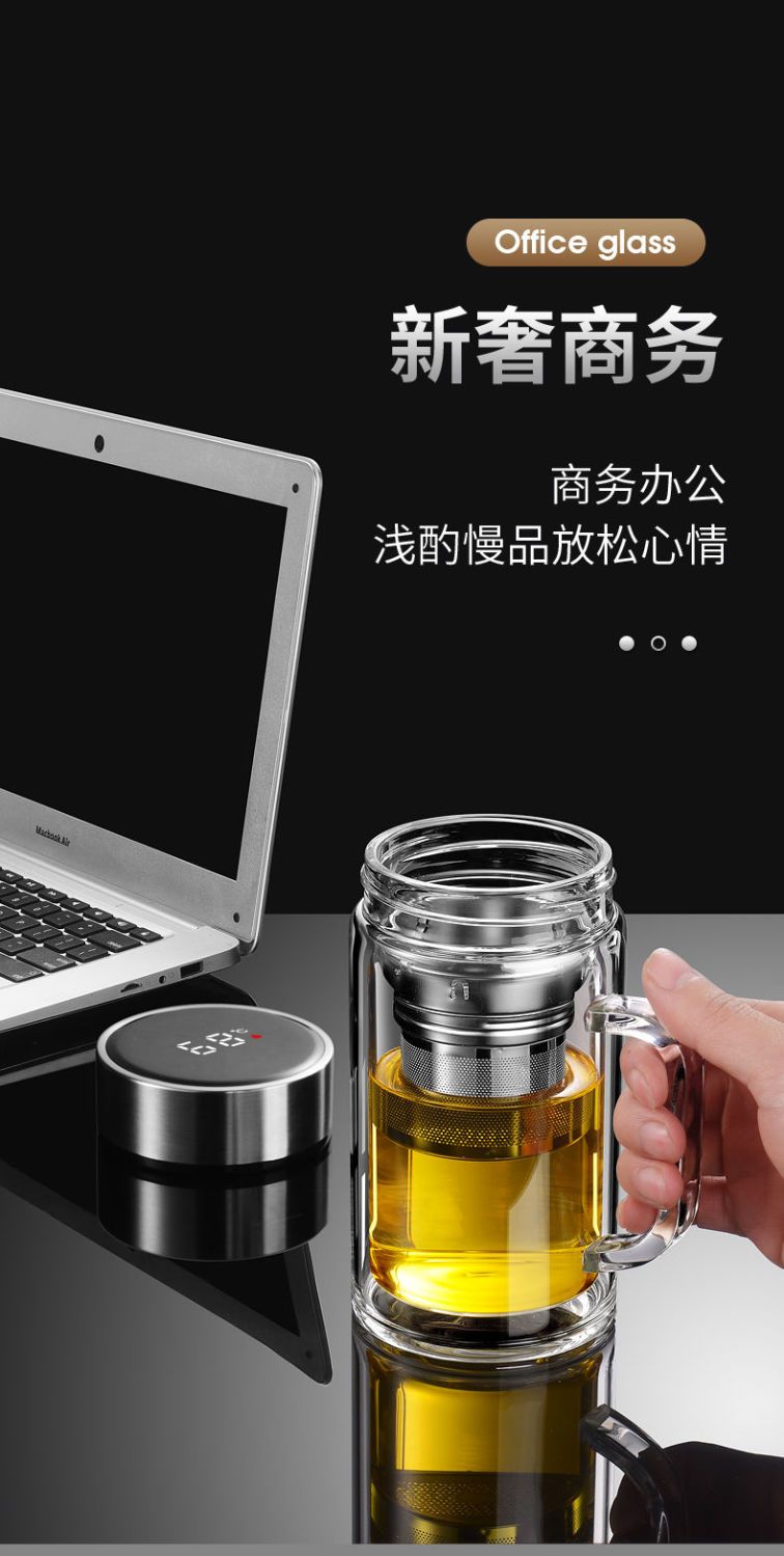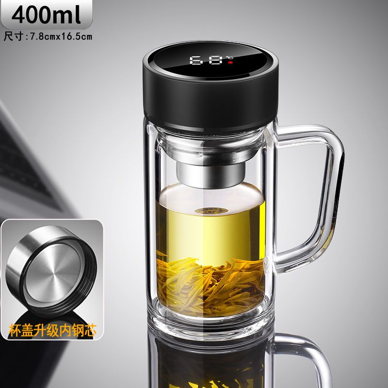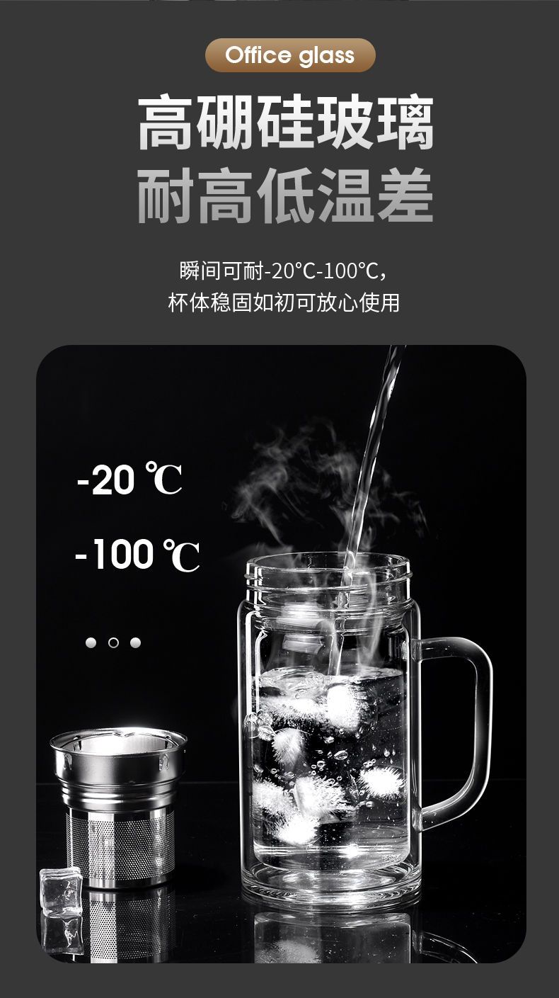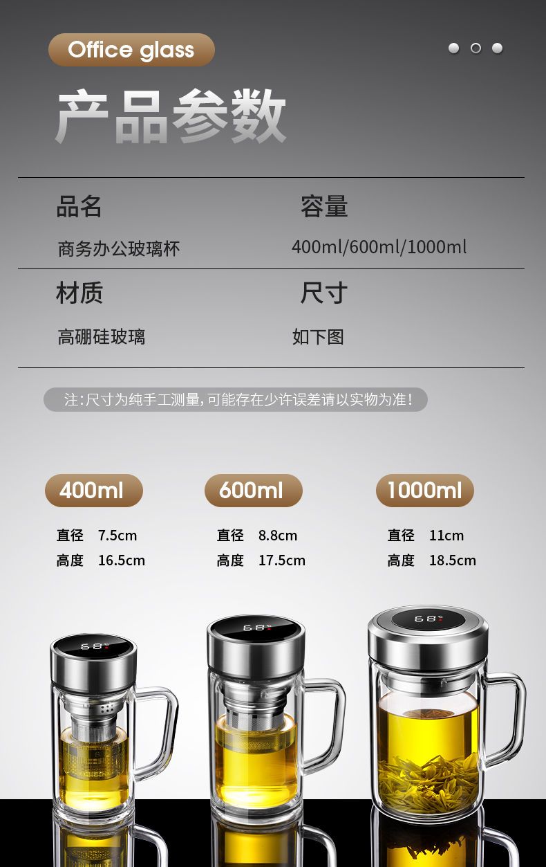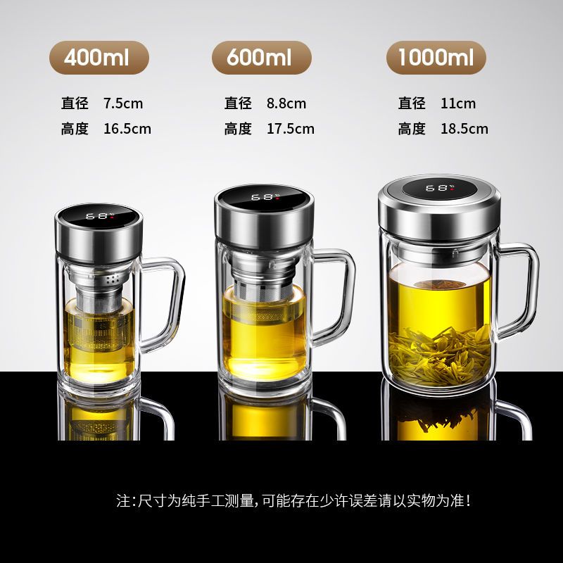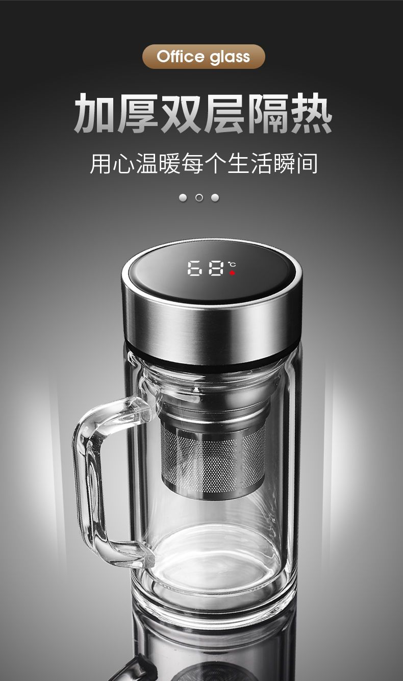 加厚双层玻璃杯防爆耐高温玻璃茶杯男女士大容量家用喝水杯子显温