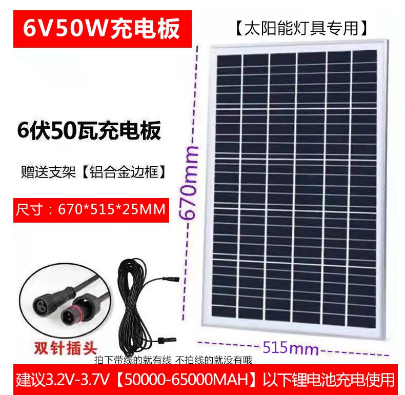 全新多晶6V光伏太阳能板大功率50W太阳光充电板太阳能灯配件单卖