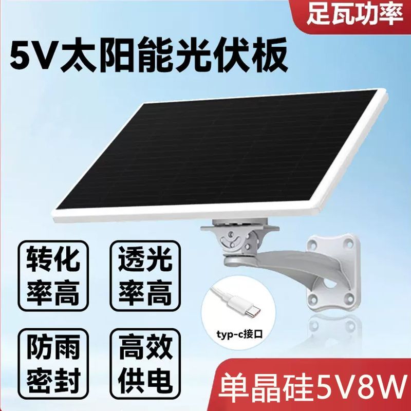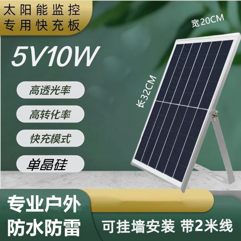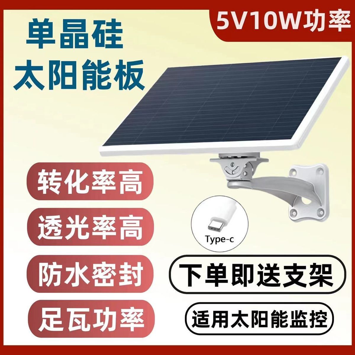 太阳能安防监控供电5v10W单晶硅充电板户外摄像头专用防水发电板