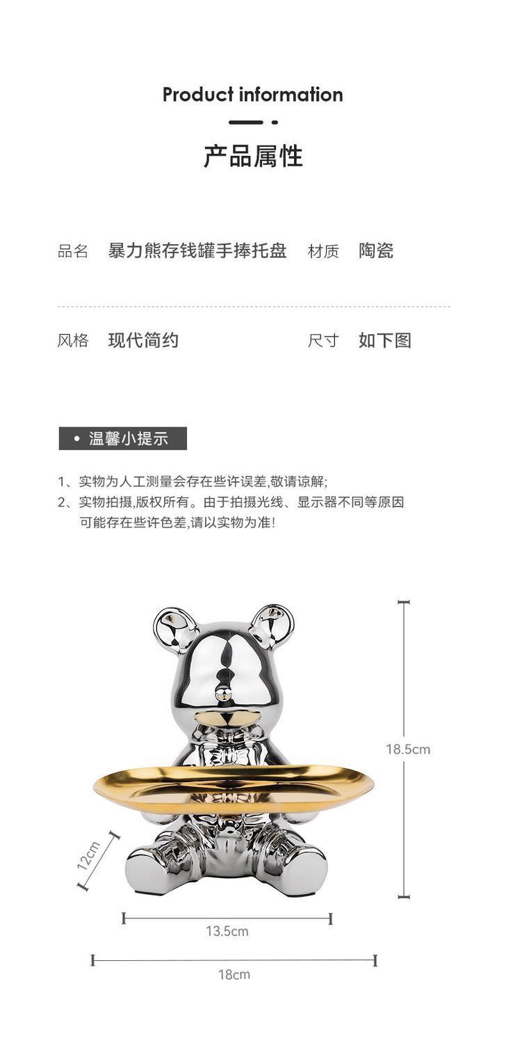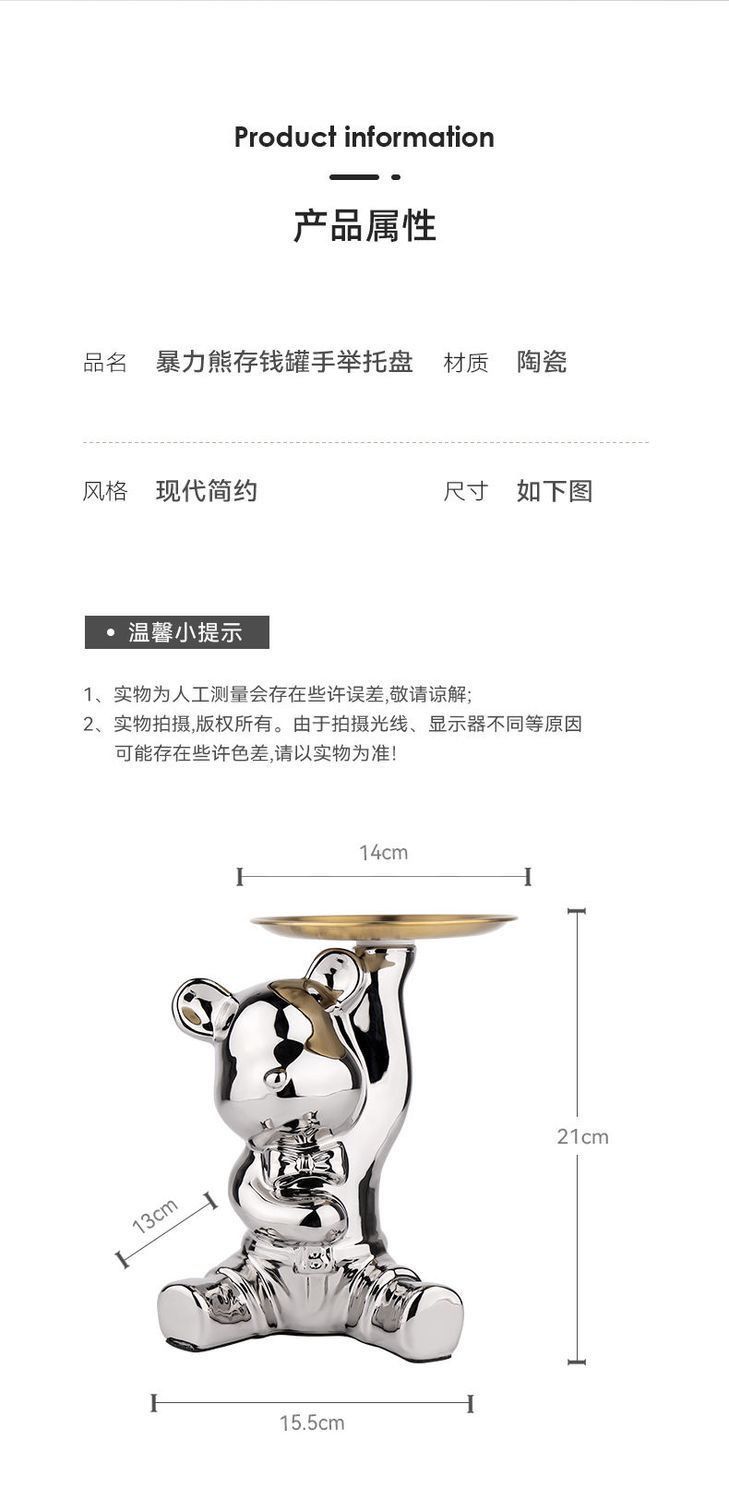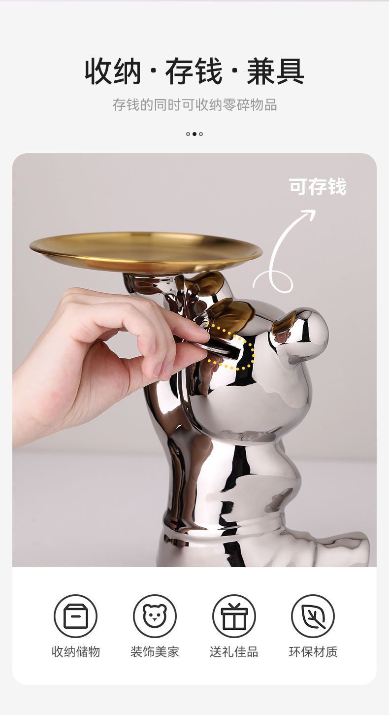 暴力熊收纳摆件入户玄关钥匙置物架客厅高档陶瓷存钱罐家居摆件