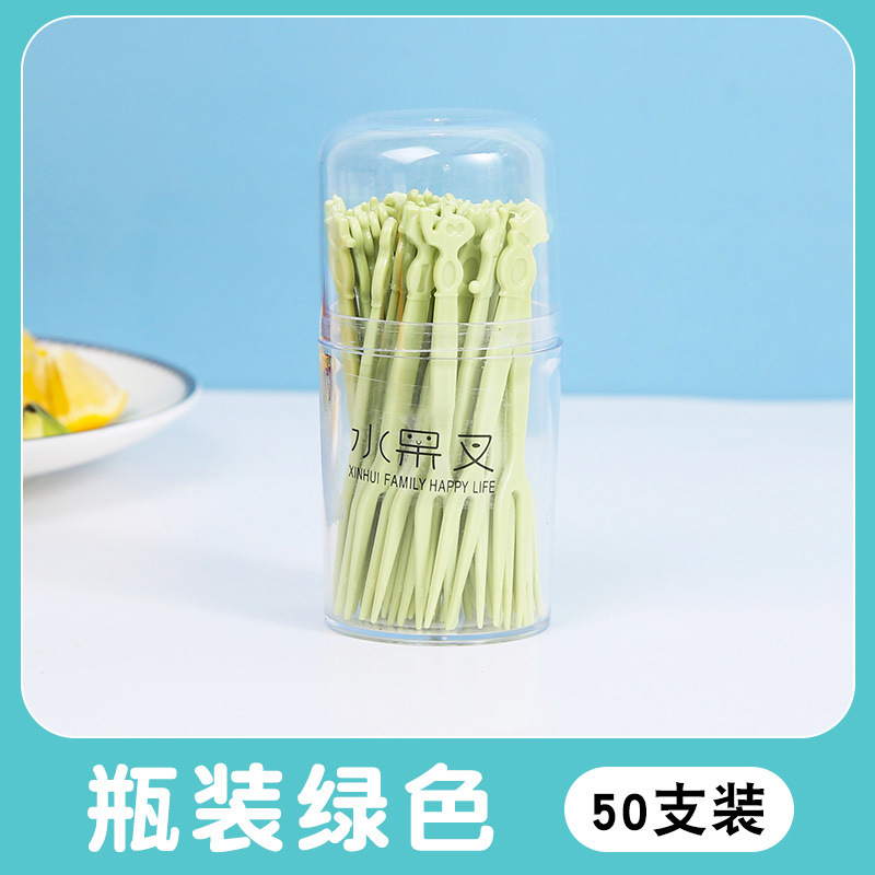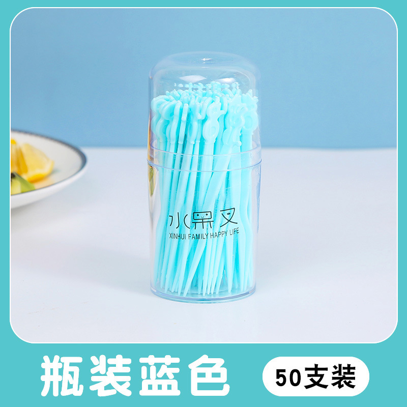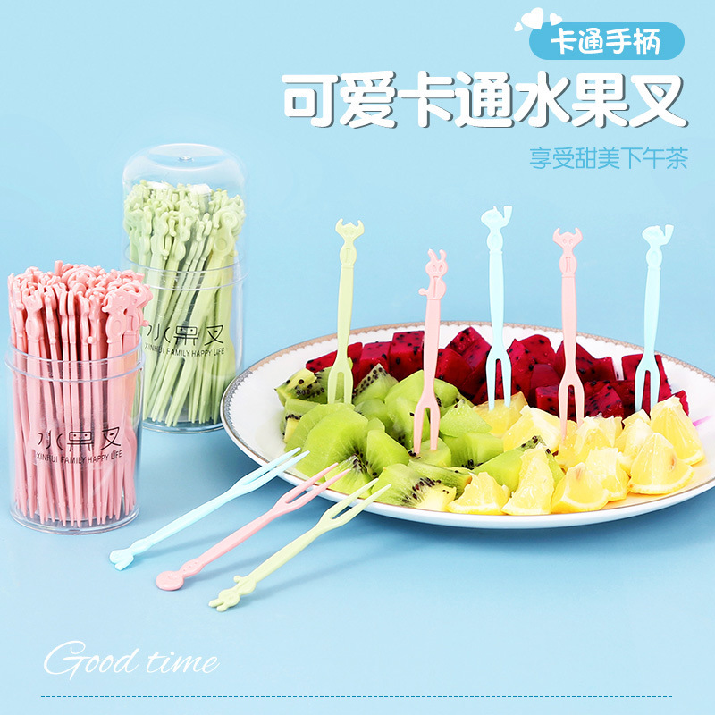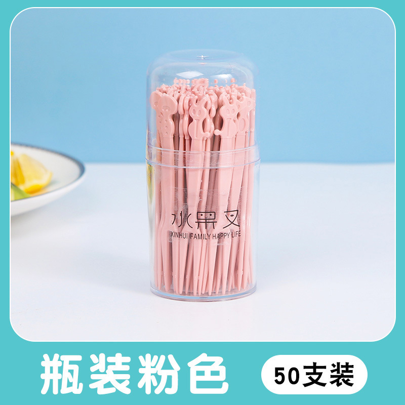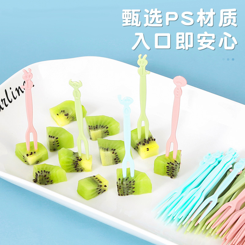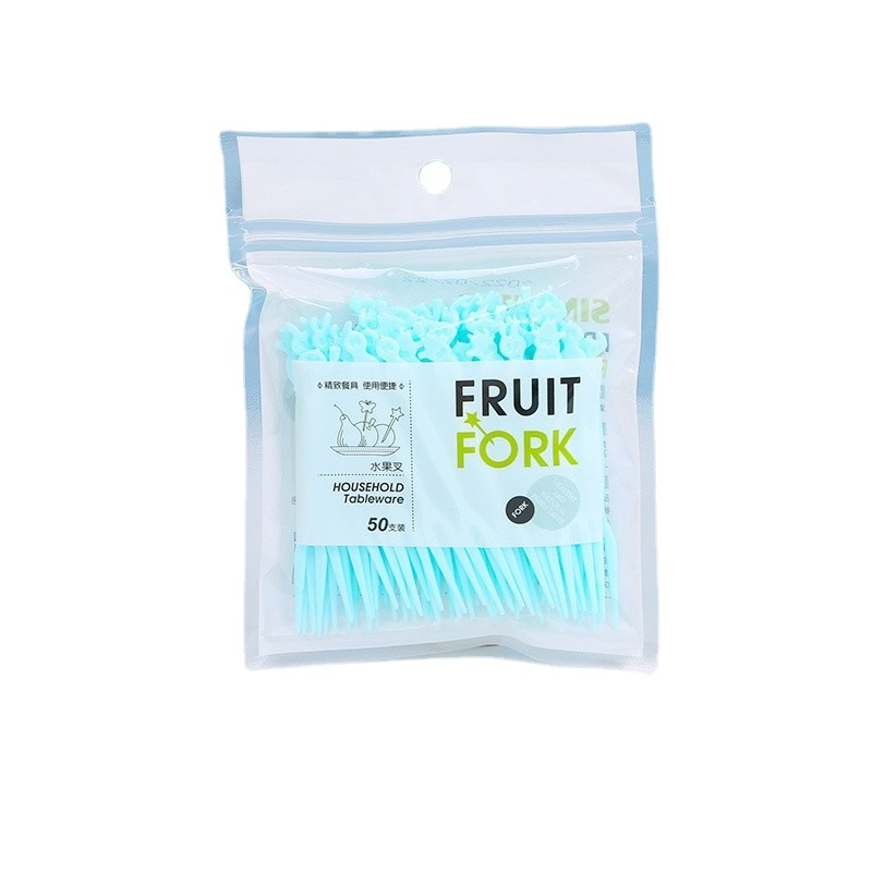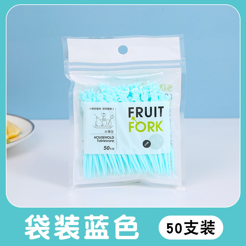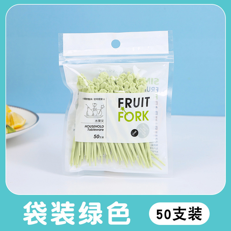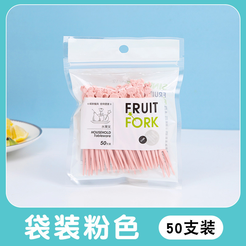【塑料水果叉50支装】二齿叉子蛋糕月饼刀叉子家用水果签厂家批发