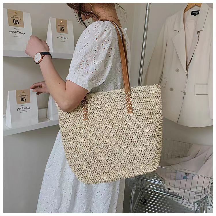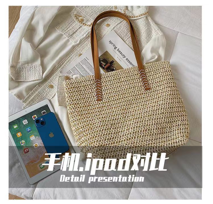 草编包度假风夏天编织包包女大容量女学生单肩手提休闲法式托特包