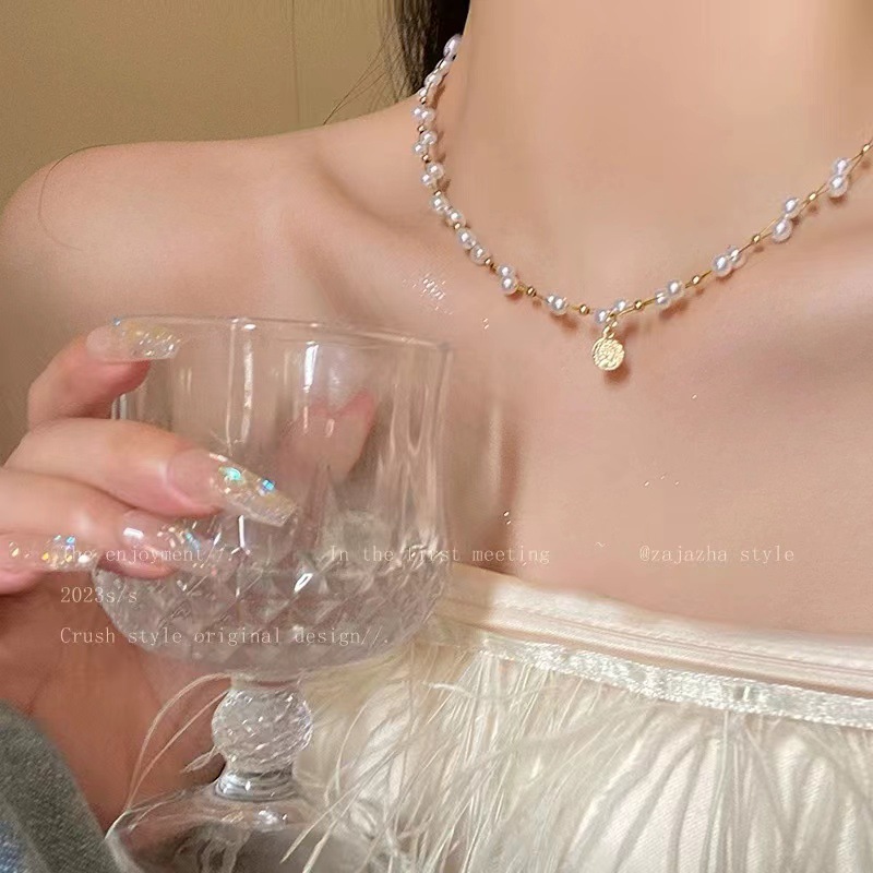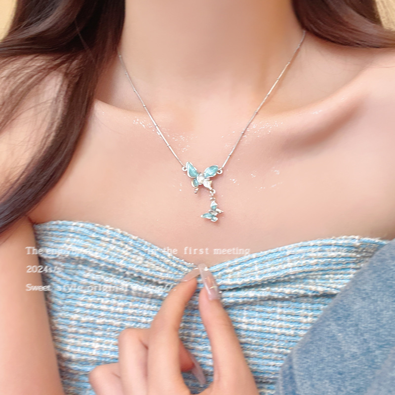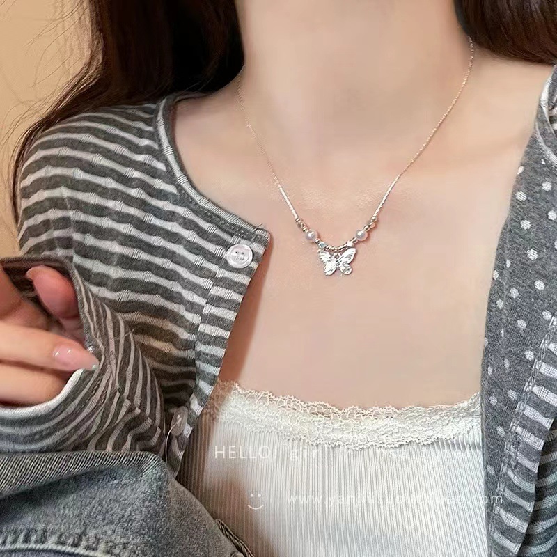 韩国新款ins风珍珠项链女百搭高级感颈链轻奢小众蝴蝶锁骨链批发