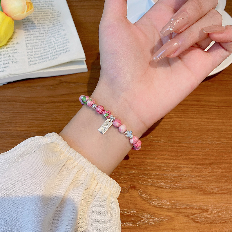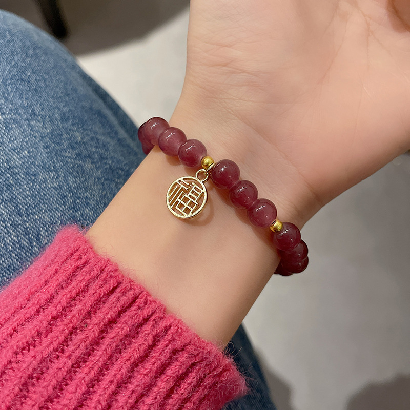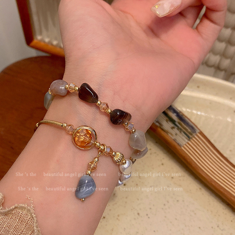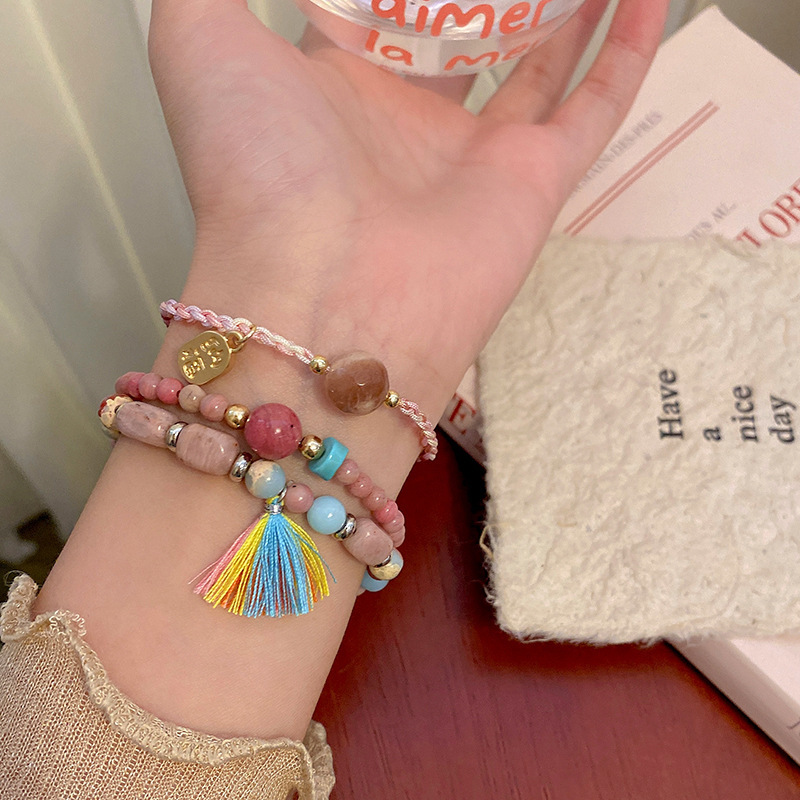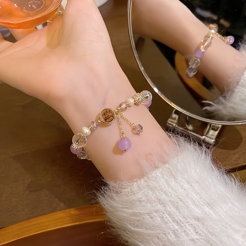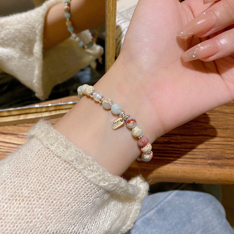 新中式爆款彩色水晶串珠手链女ins风高级感复古珍珠手串手饰批发