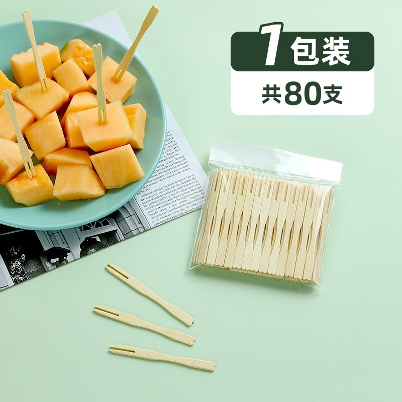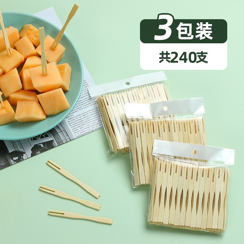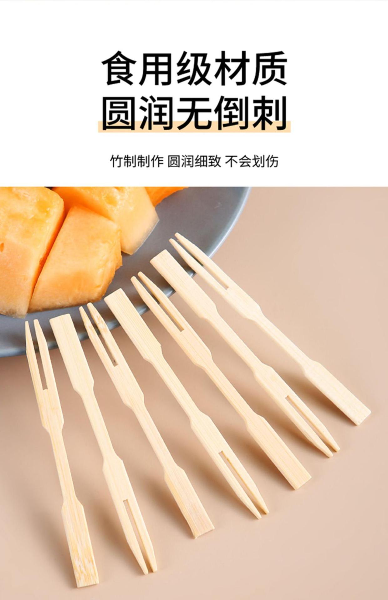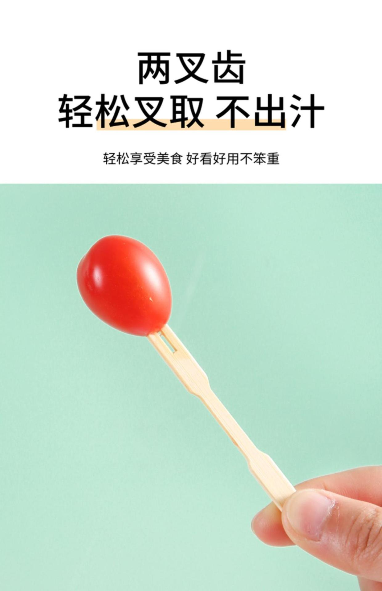 批发一次性水果叉子蛋糕甜品塑料透明独立小叉竹签商用家用签果插