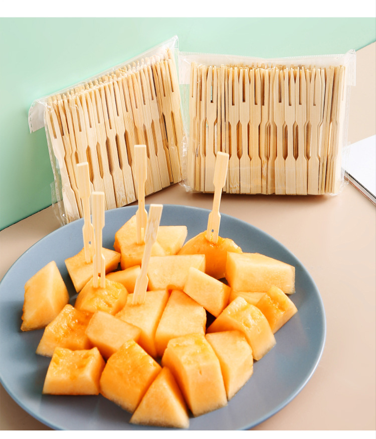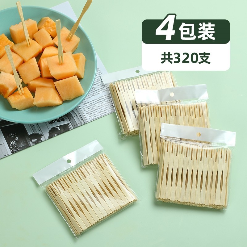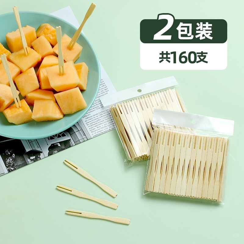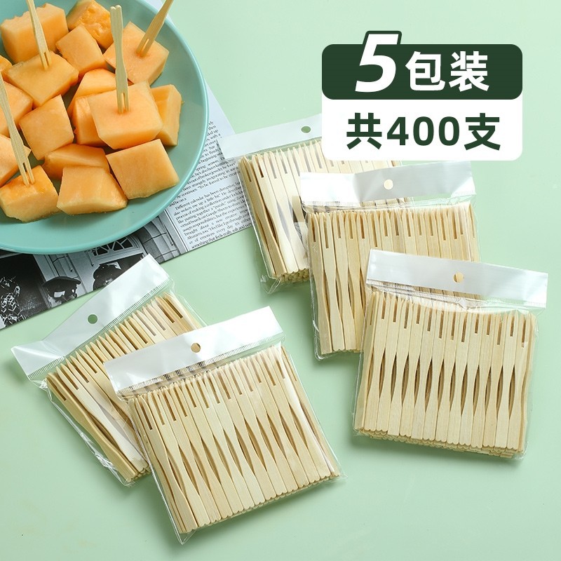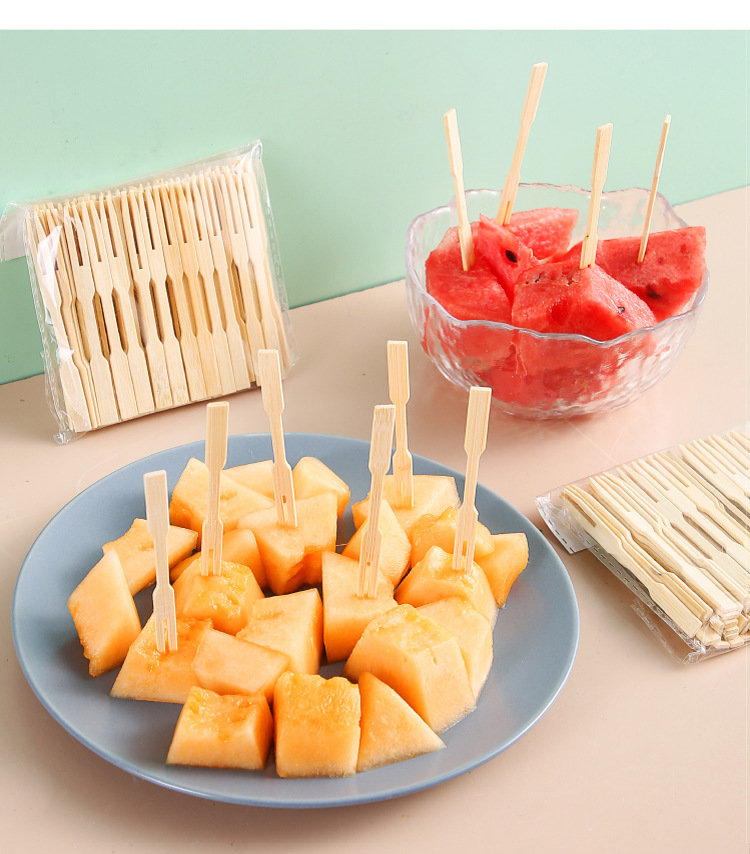 批发一次性水果叉子蛋糕甜品塑料透明独立小叉竹签商用家用签果插