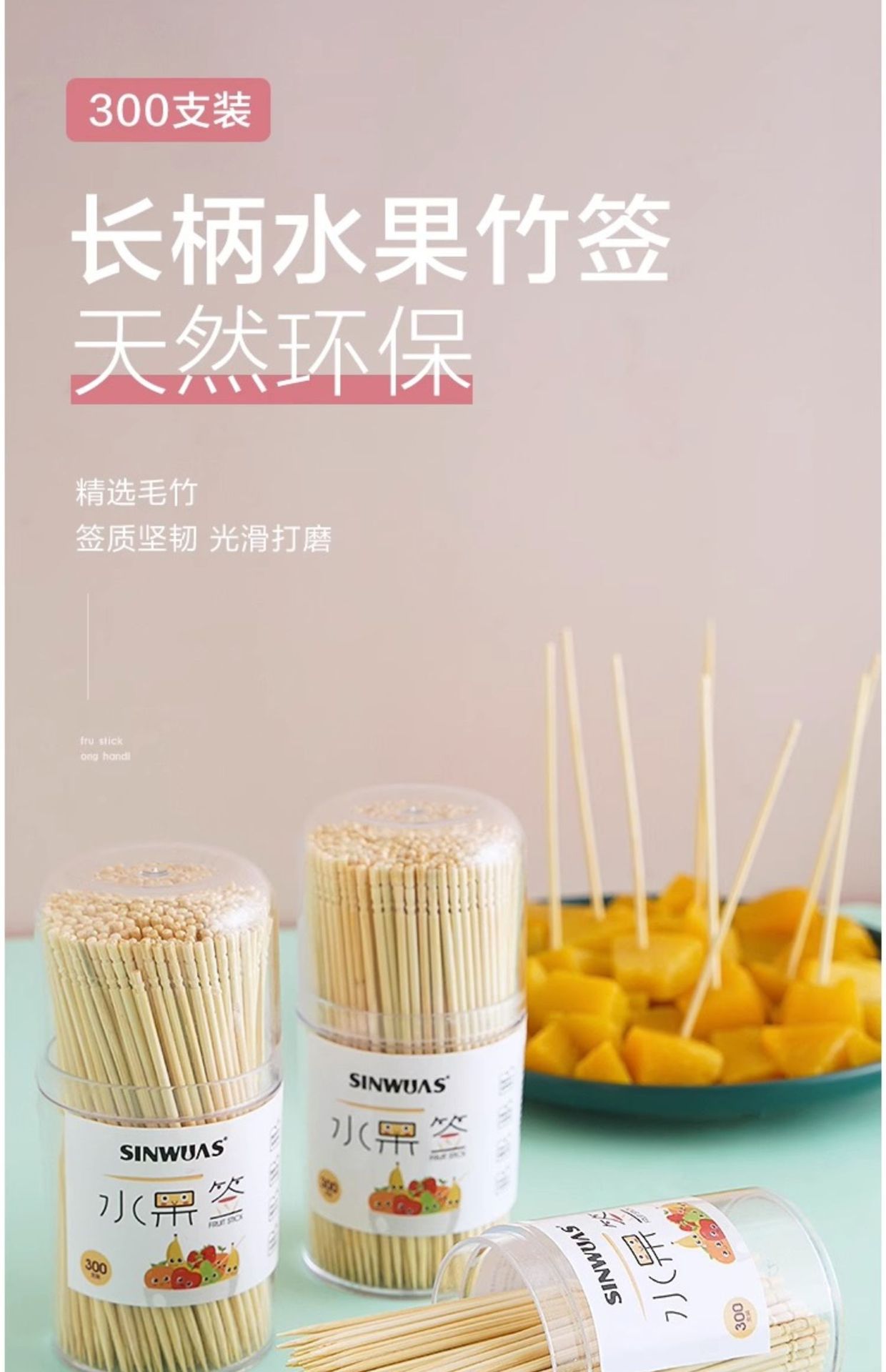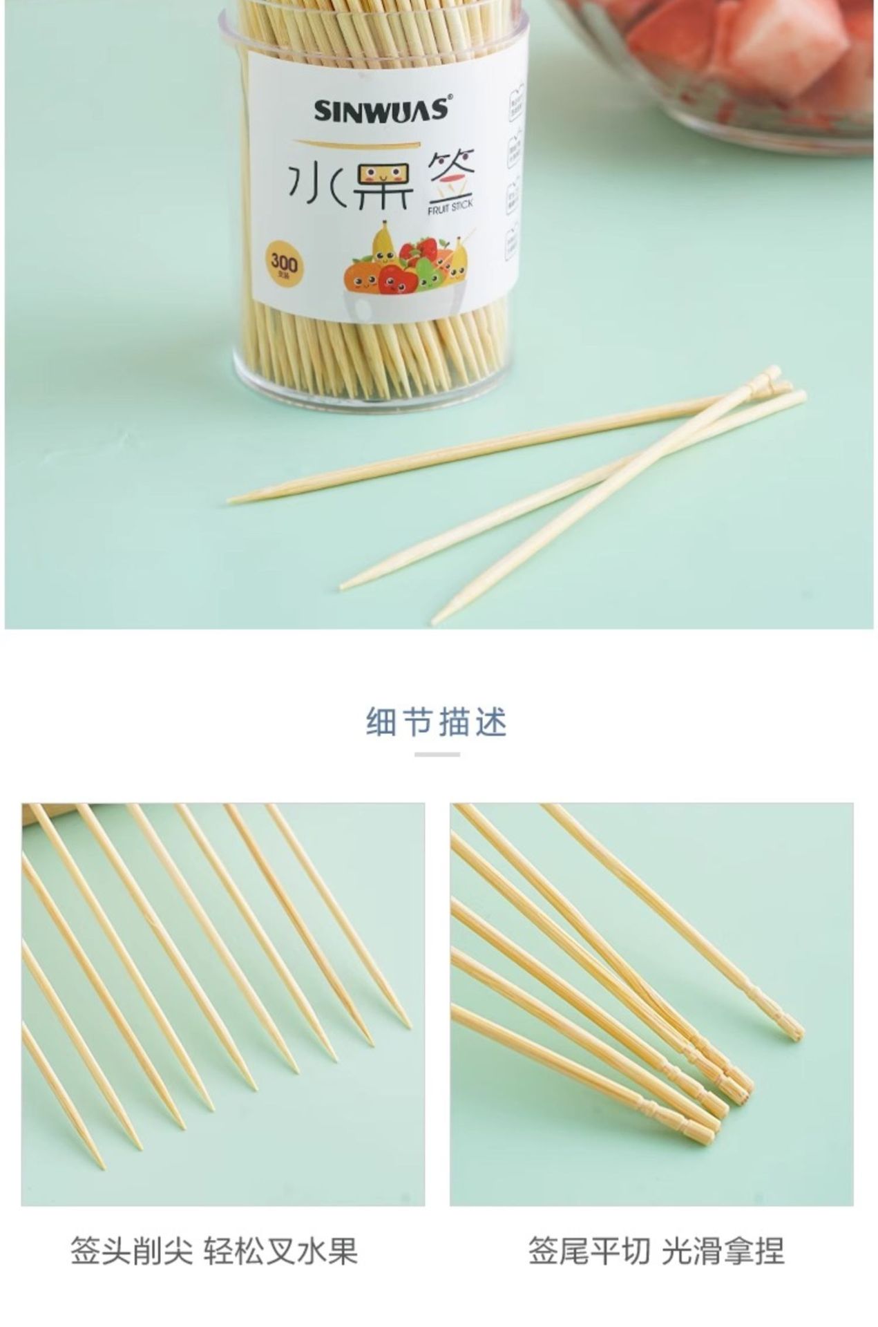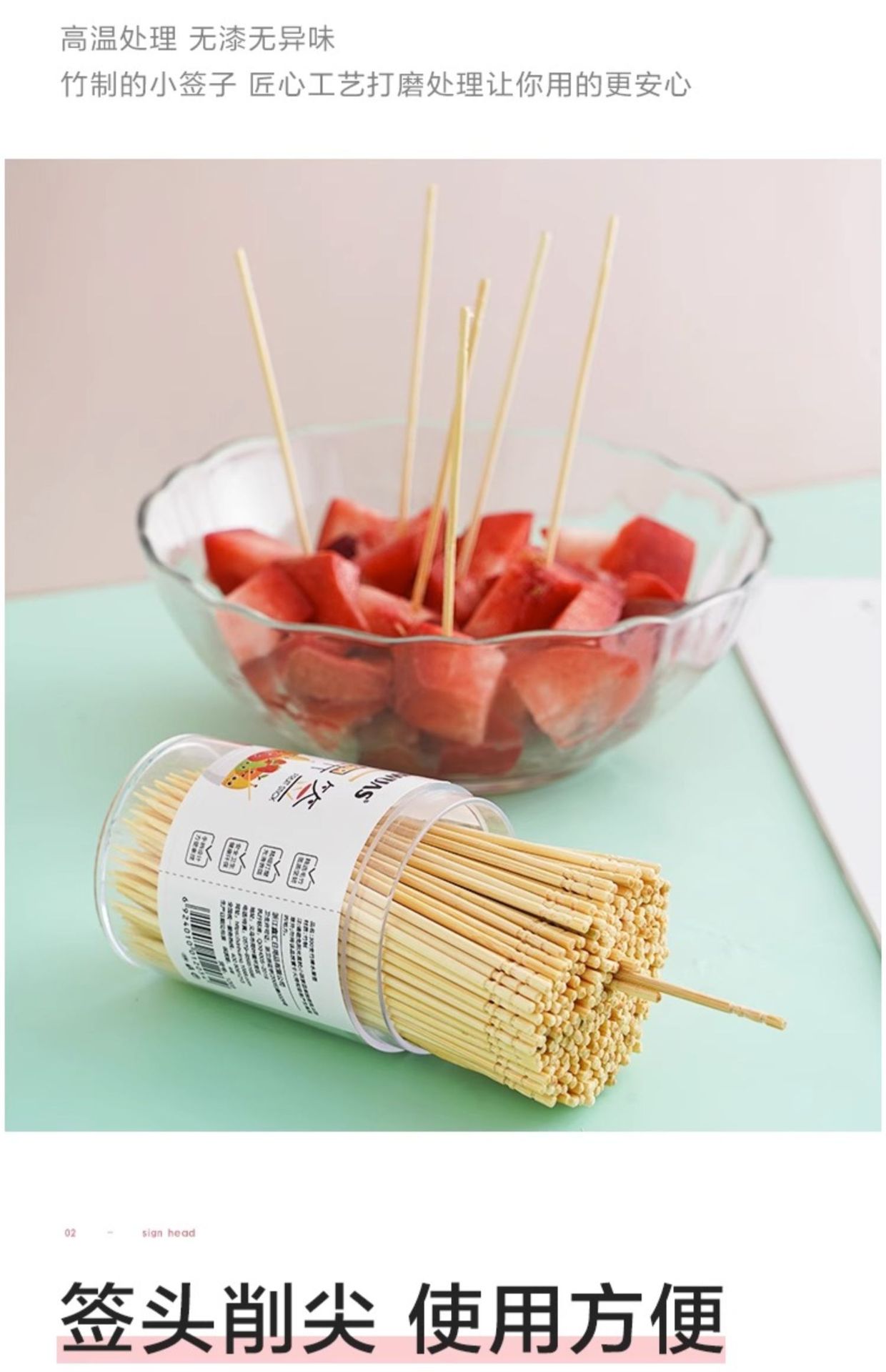 一次性水果签竹签家用竹制水果叉创意细牙签三明治签果插剔牙神器