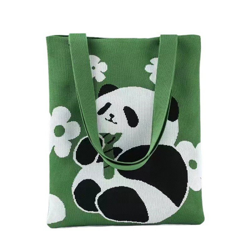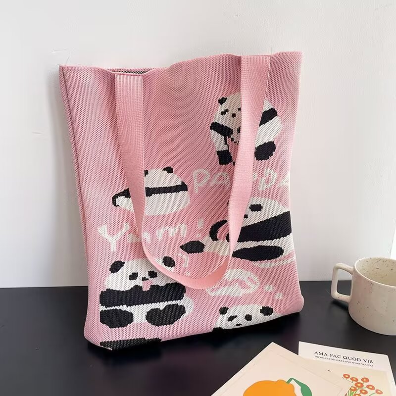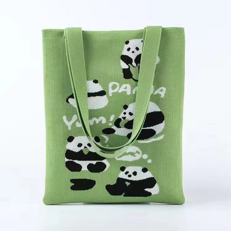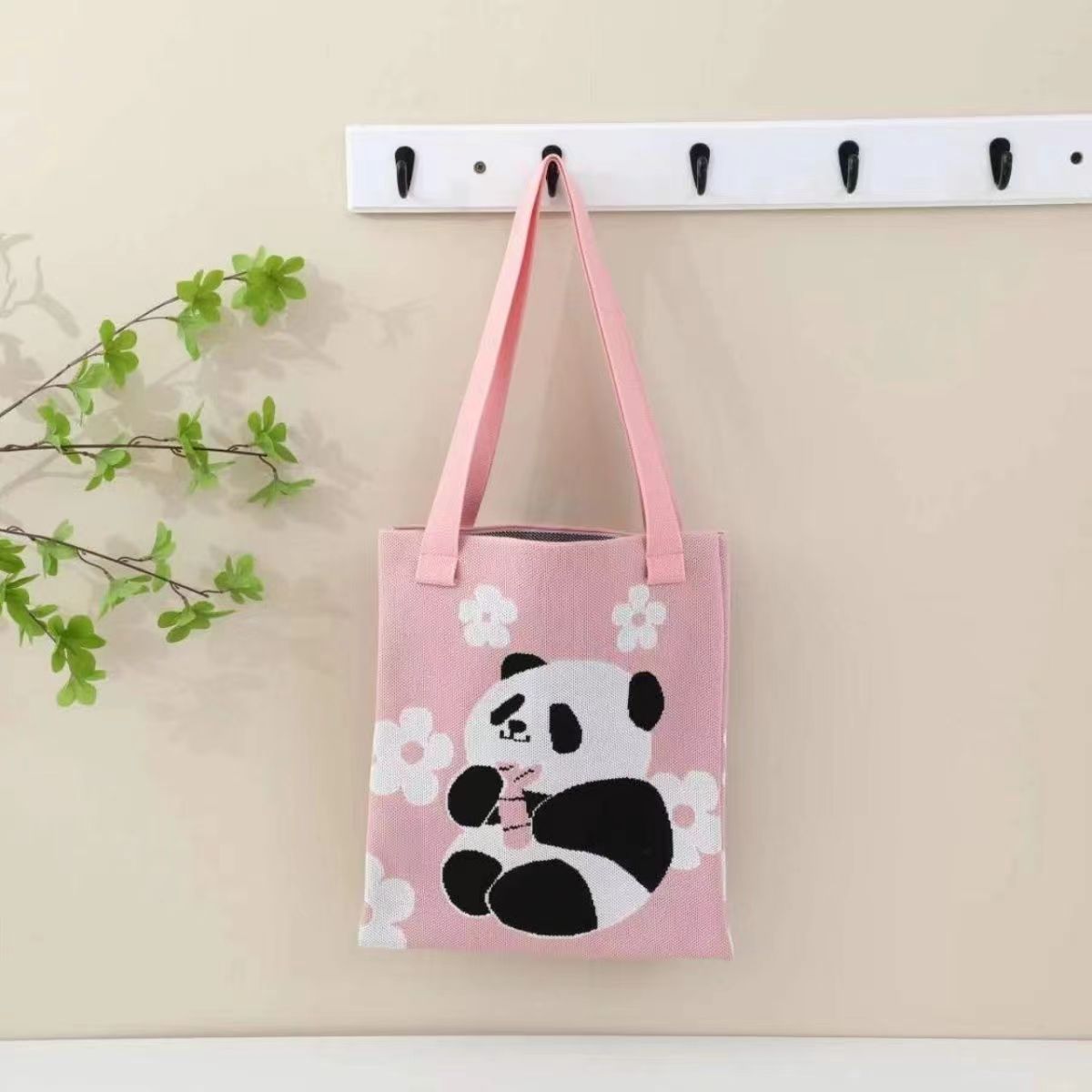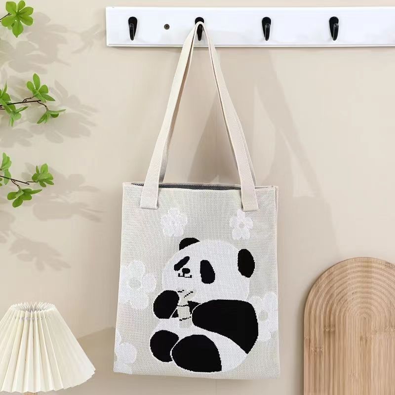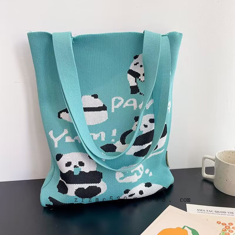 可爱熊猫大容量针织单肩包女韩版百搭时尚通勤购物学生托特包女包