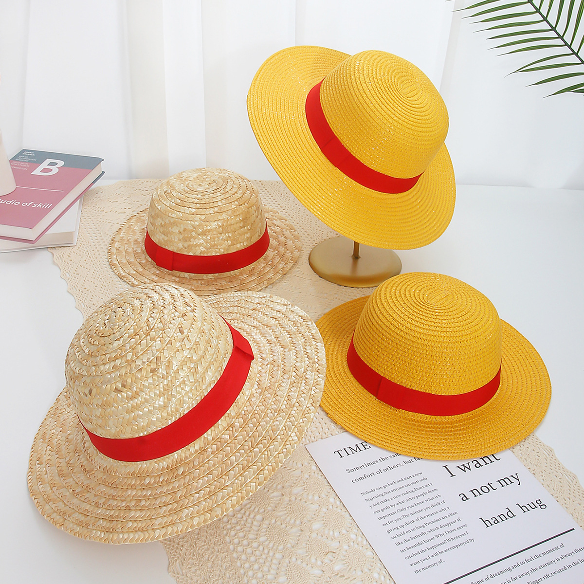 海贼王路飞同款草帽跨境大头遮阳帽男女防晒帽子女COSPALY演出帽