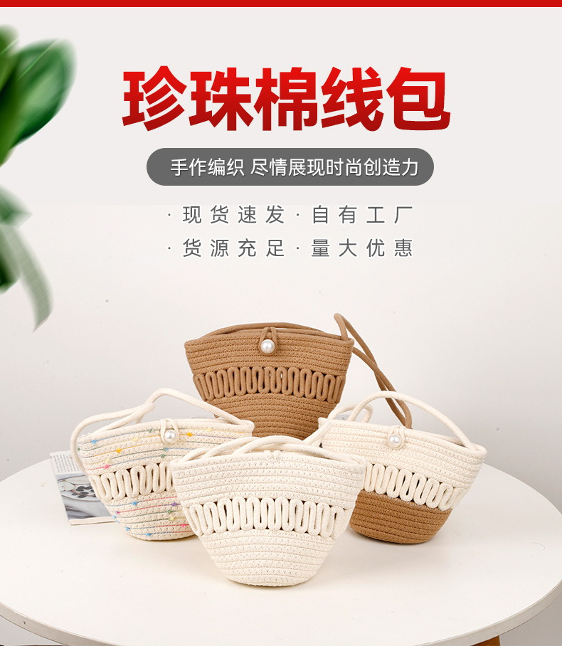 珍珠棉线包现货批发镂空棉线编织包新款夏天大容量法式草编包