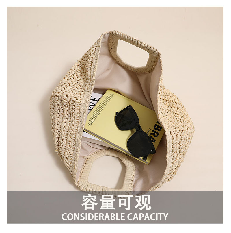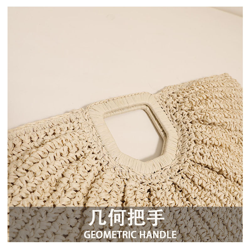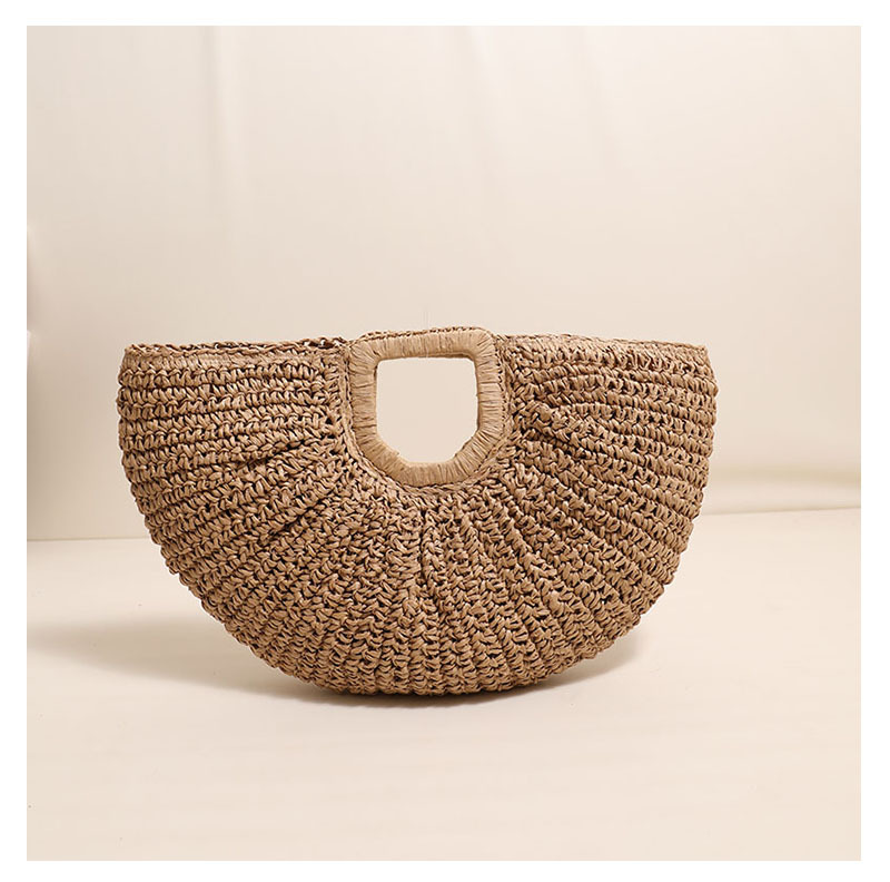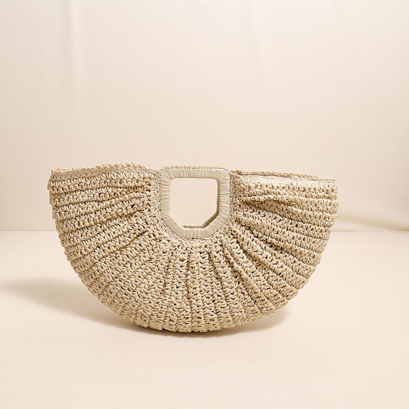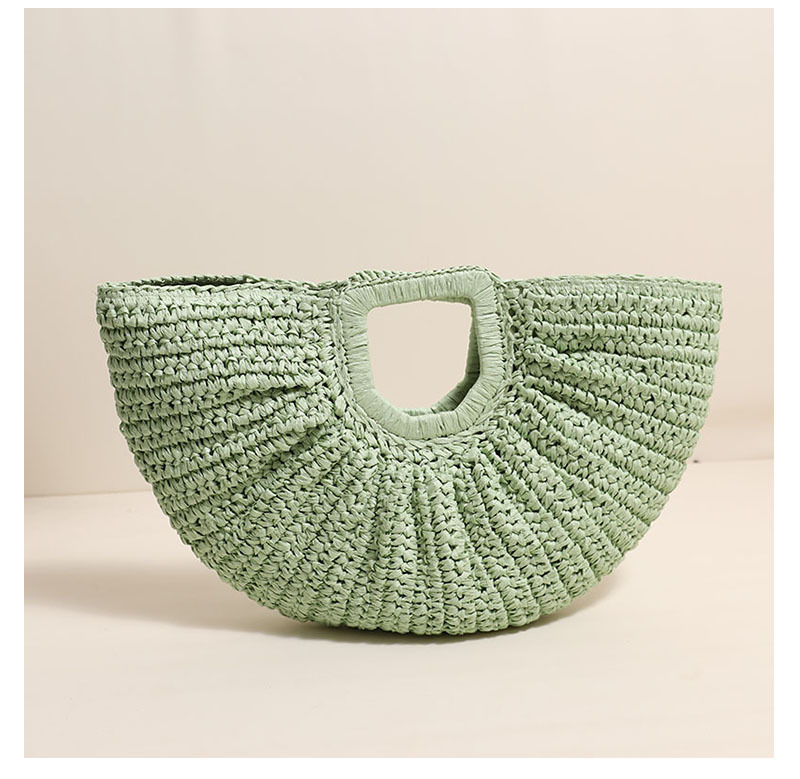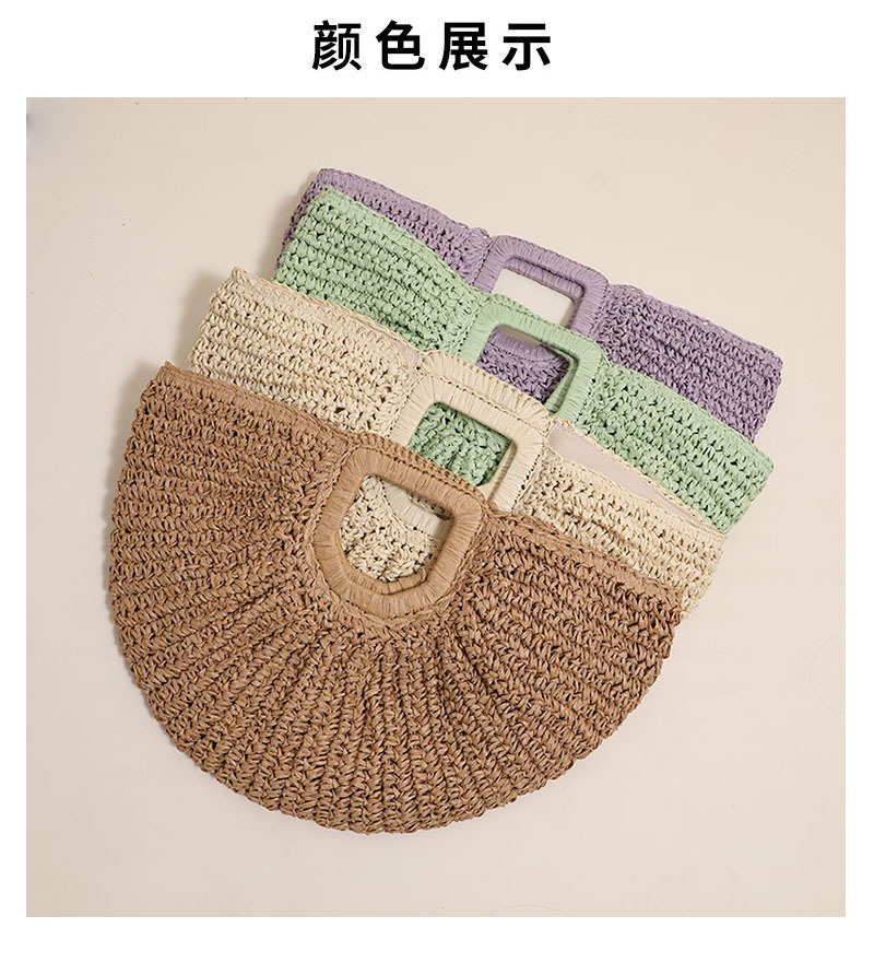 简约纯色手提草编包新款月亮手拿草包编织包度假风沙滩包百搭女包