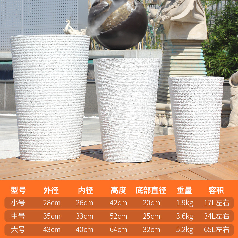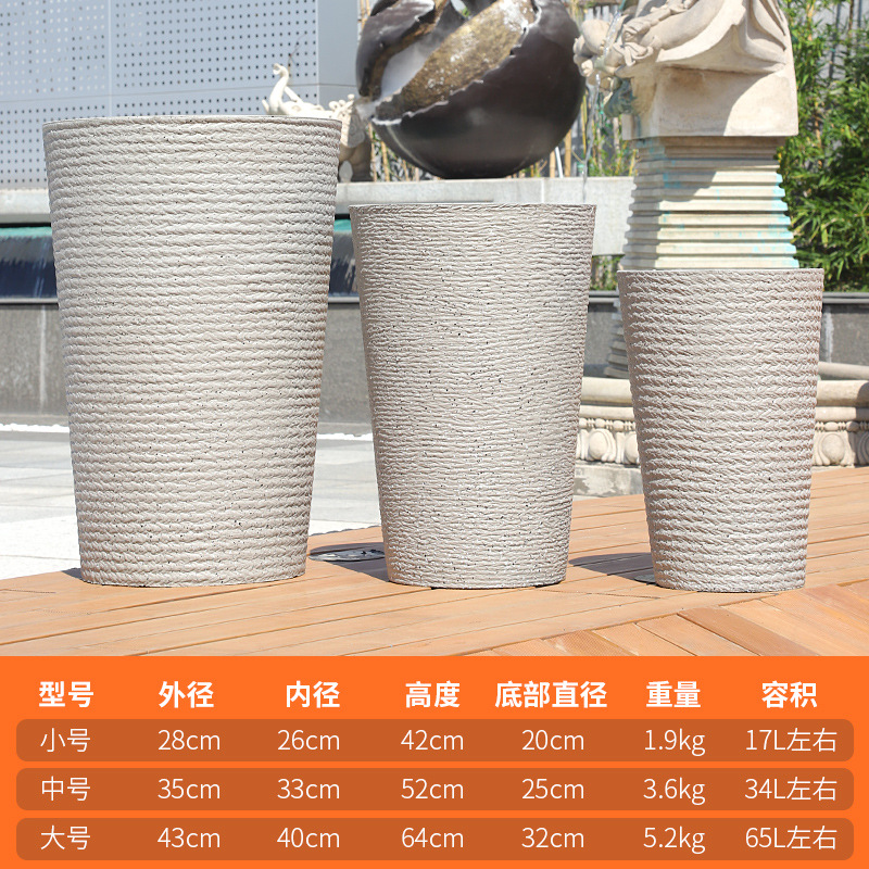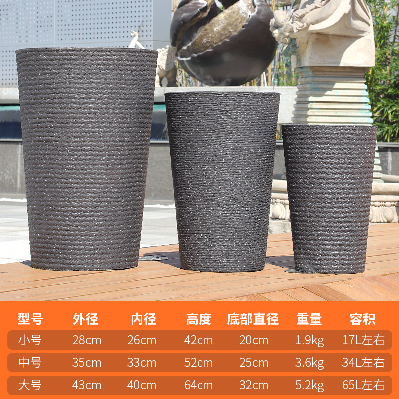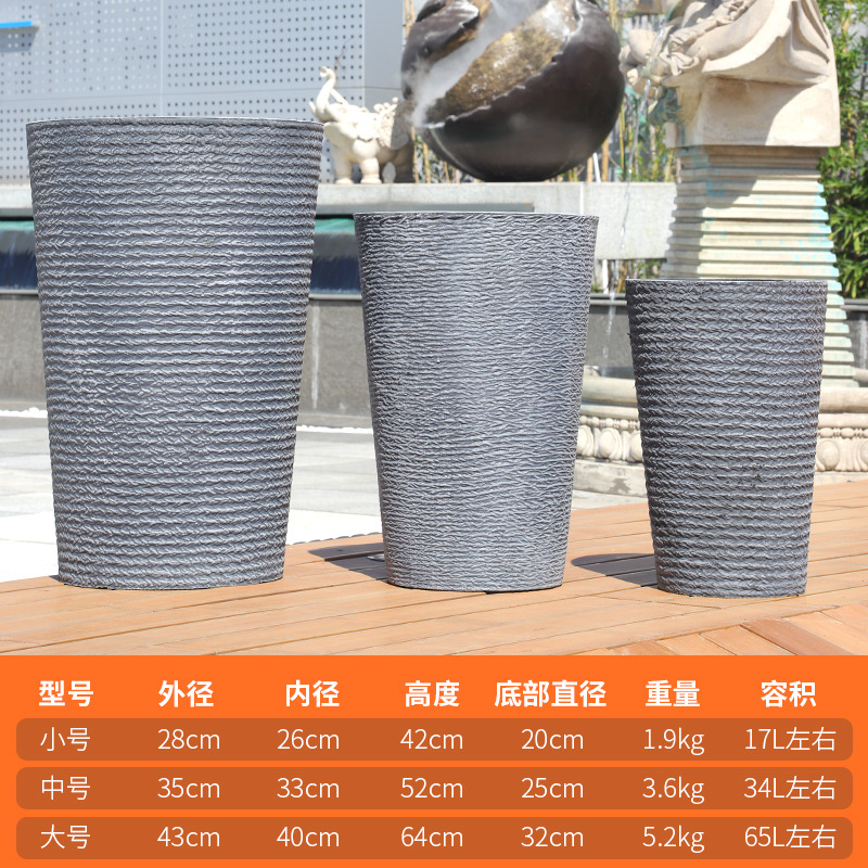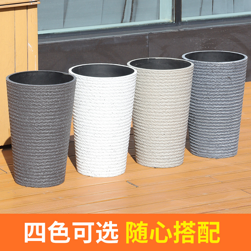 北欧仿水泥天堂鸟树脂塑料花盆幸福树大号客厅卧室落地深高筒花盆