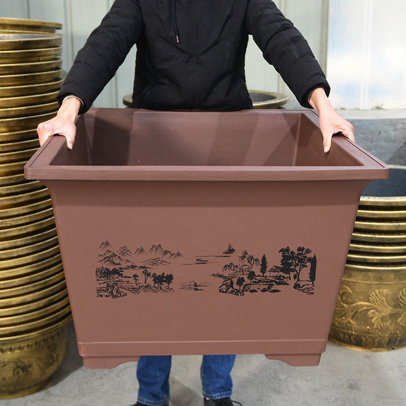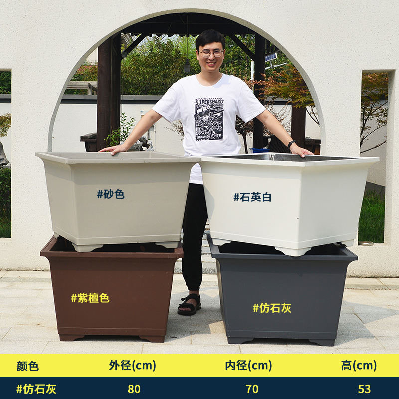 厂家批发特大正方形塑料花盆绿化带花箱加厚树脂户外种树无孔水槽