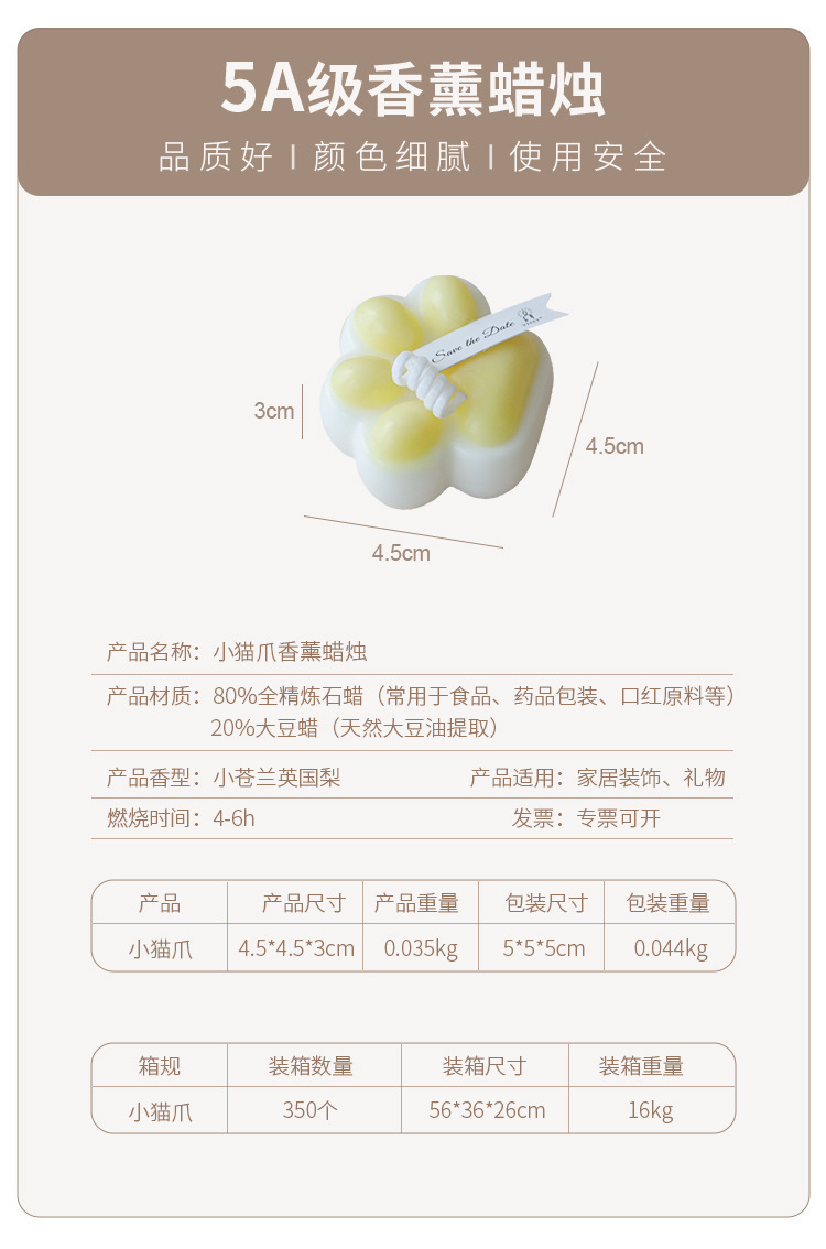 可爱小猫爪香薰蜡烛装饰网红卡通室内布置伴手礼情侣礼物生日浪漫