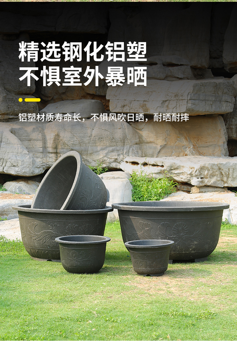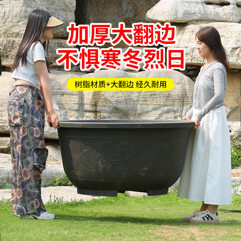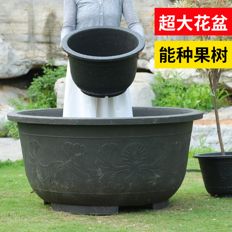 大口径塑料黑色花盆加厚特大号果树花盆户外园林种树养荷花睡莲盆