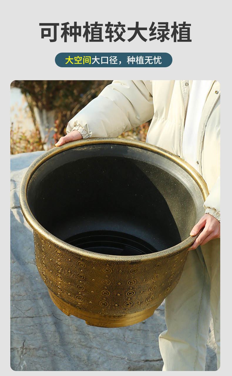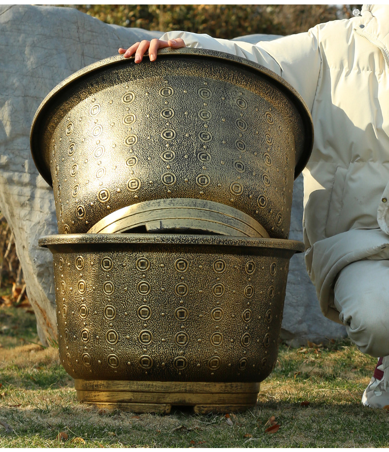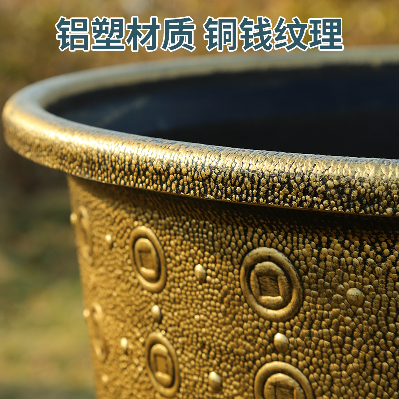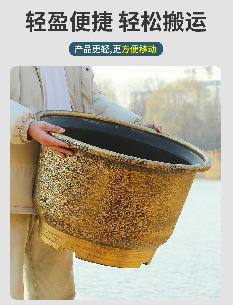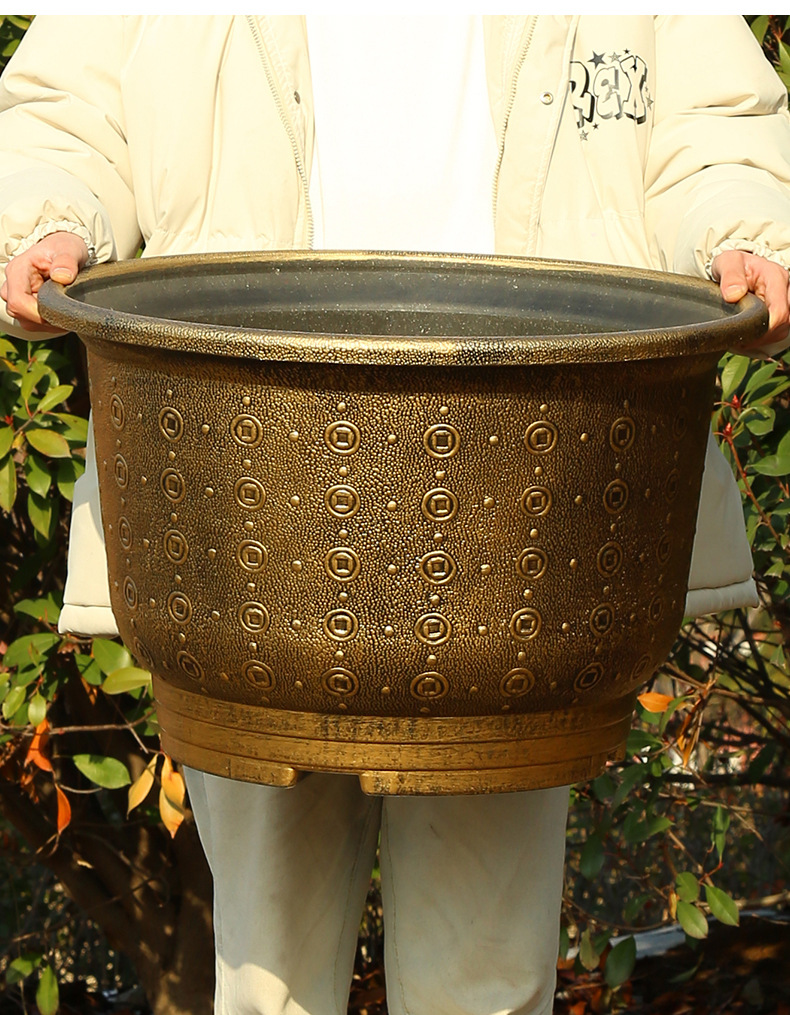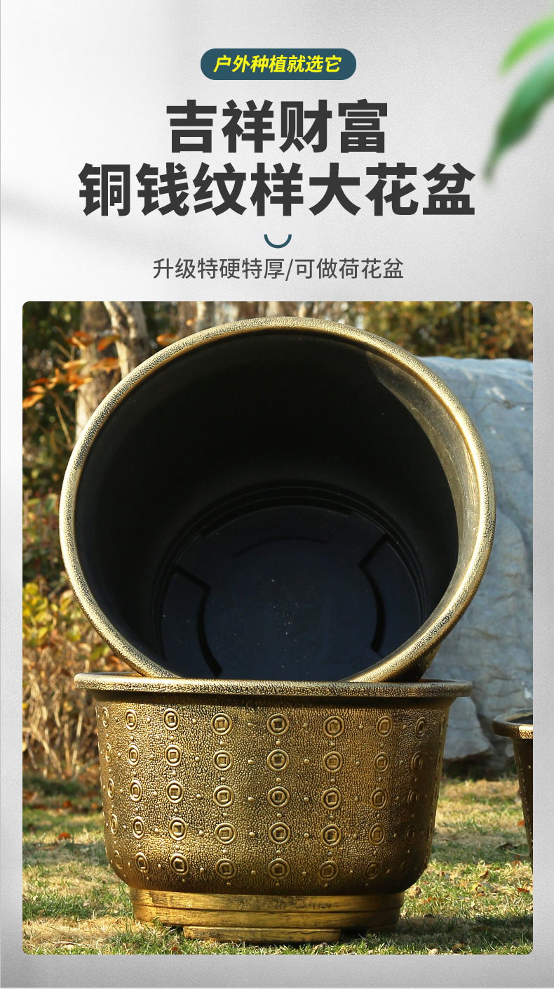 加厚塑料花盆新款铜钱纹大花盆户外铁树盆庭院养鱼荷花盆