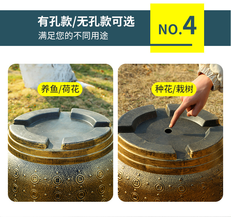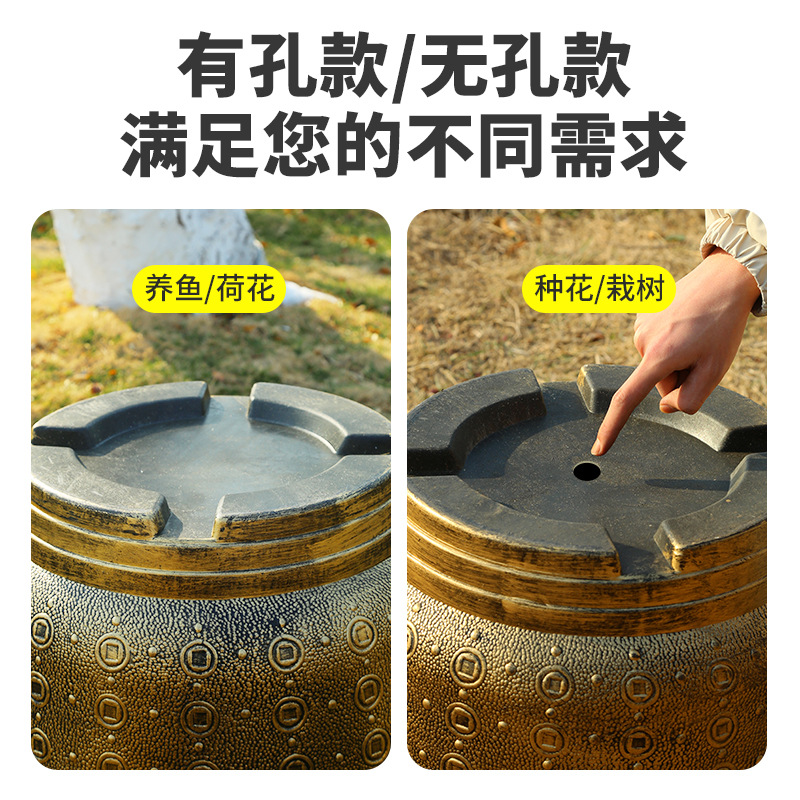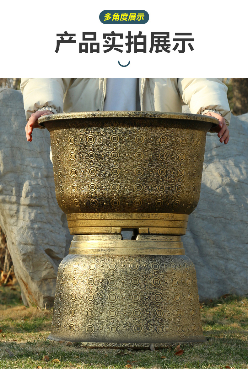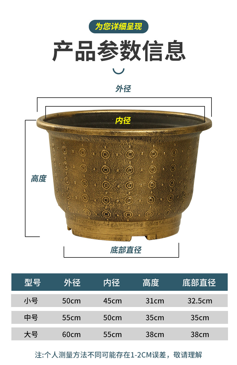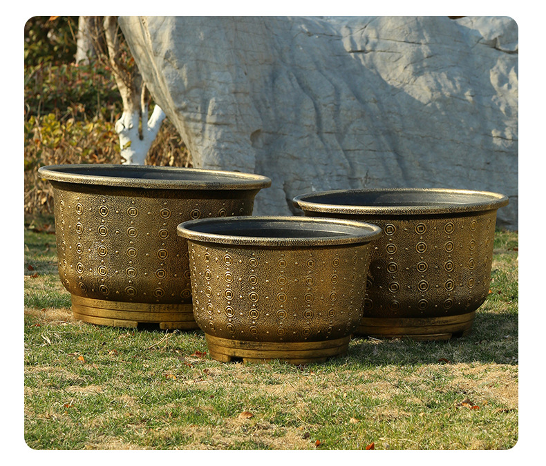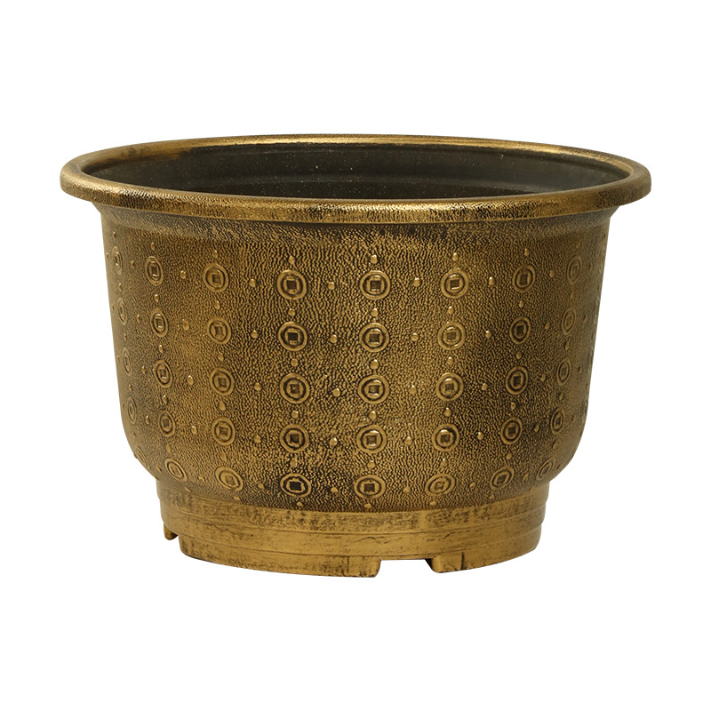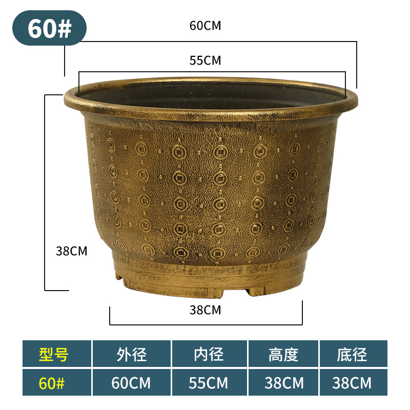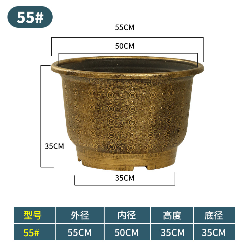 加厚塑料花盆新款铜钱纹大花盆户外铁树盆庭院养鱼荷花盆