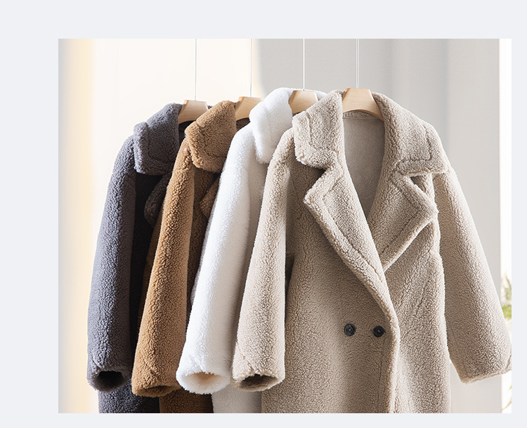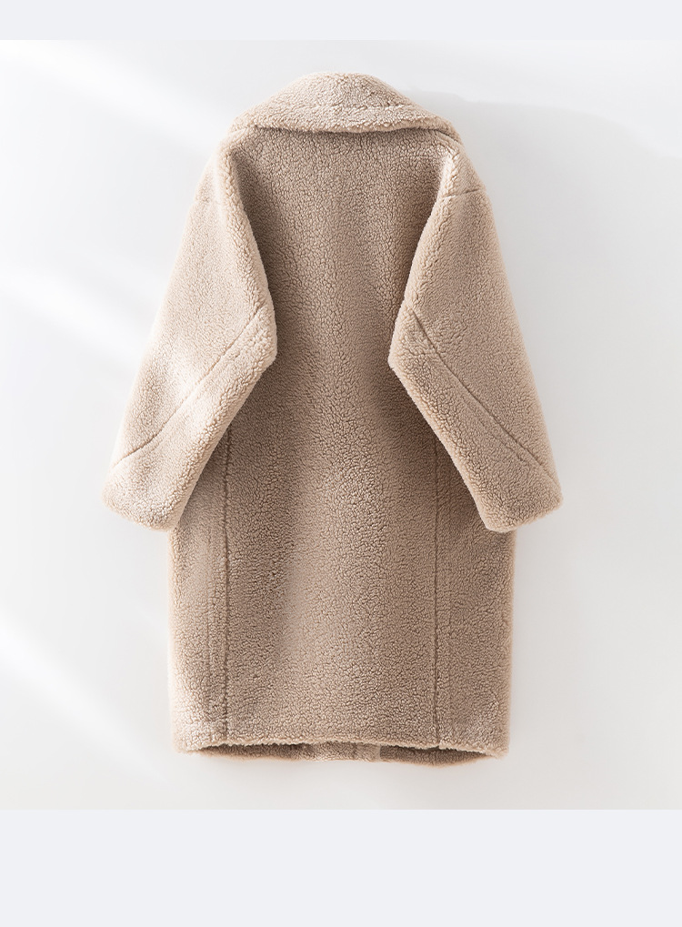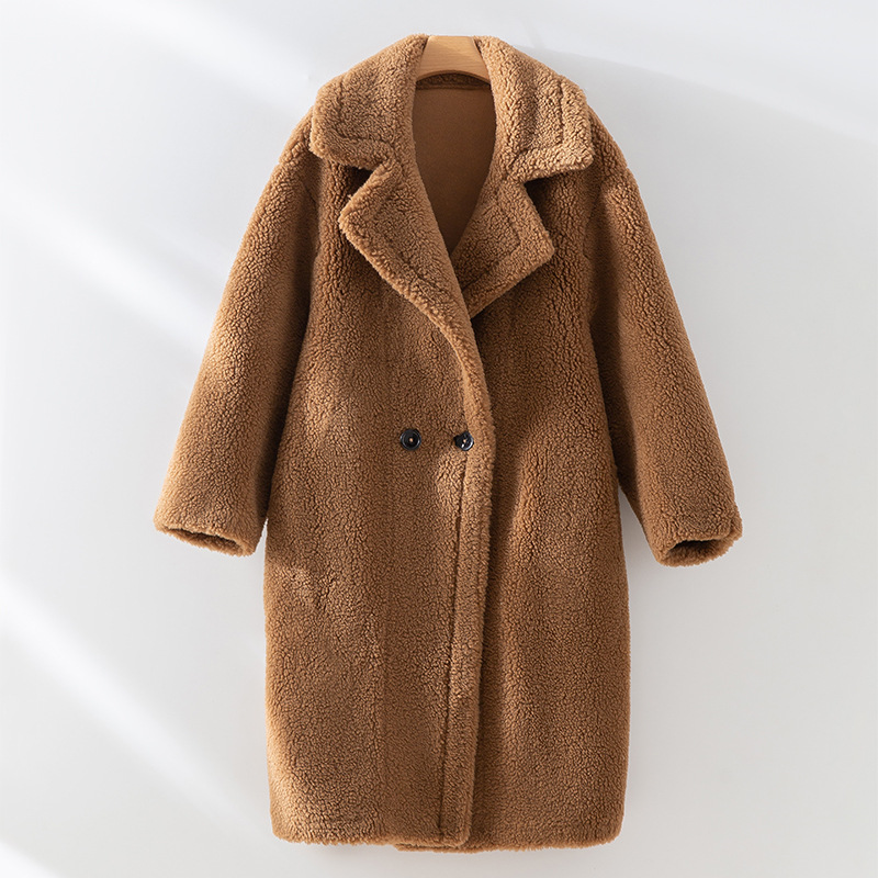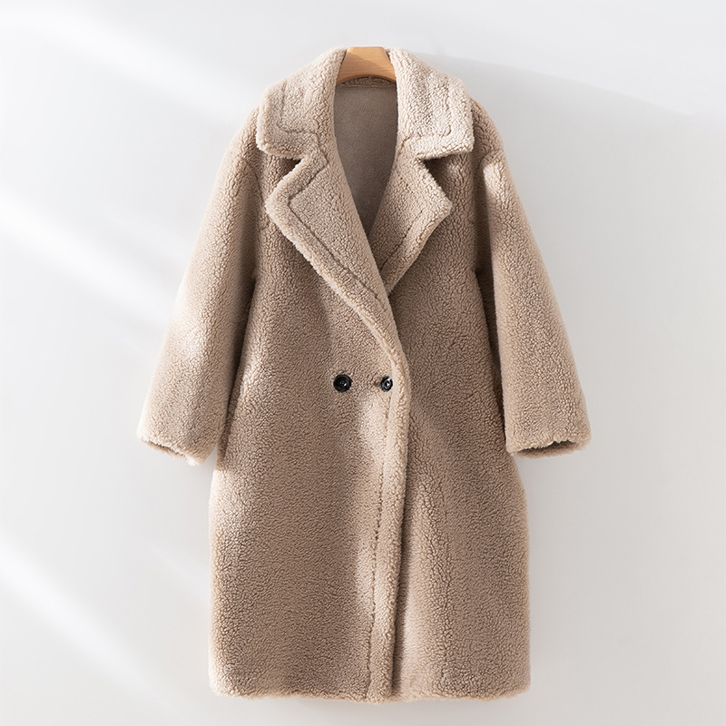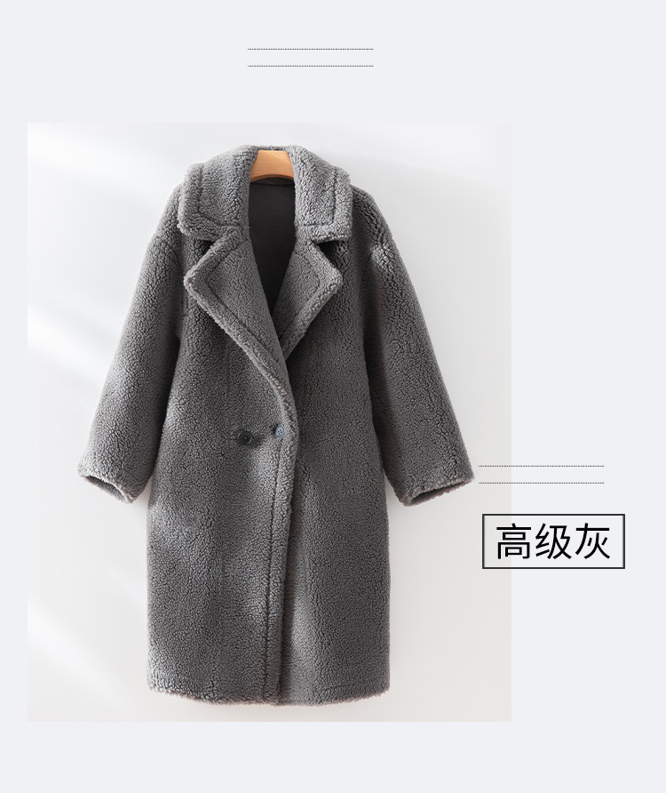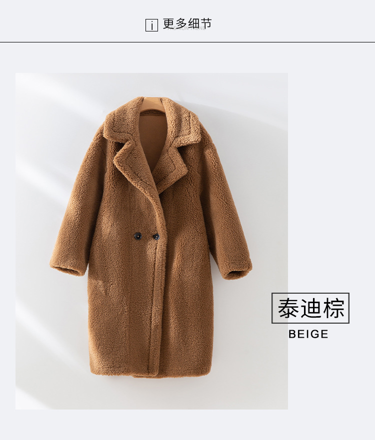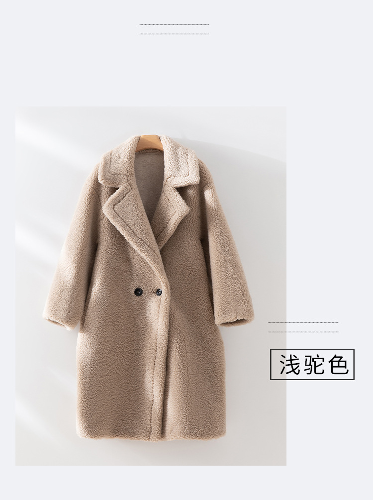 泰迪熊韩版羊毛复合皮毛一体皮草外套西装领过膝长款羊羔毛大衣女